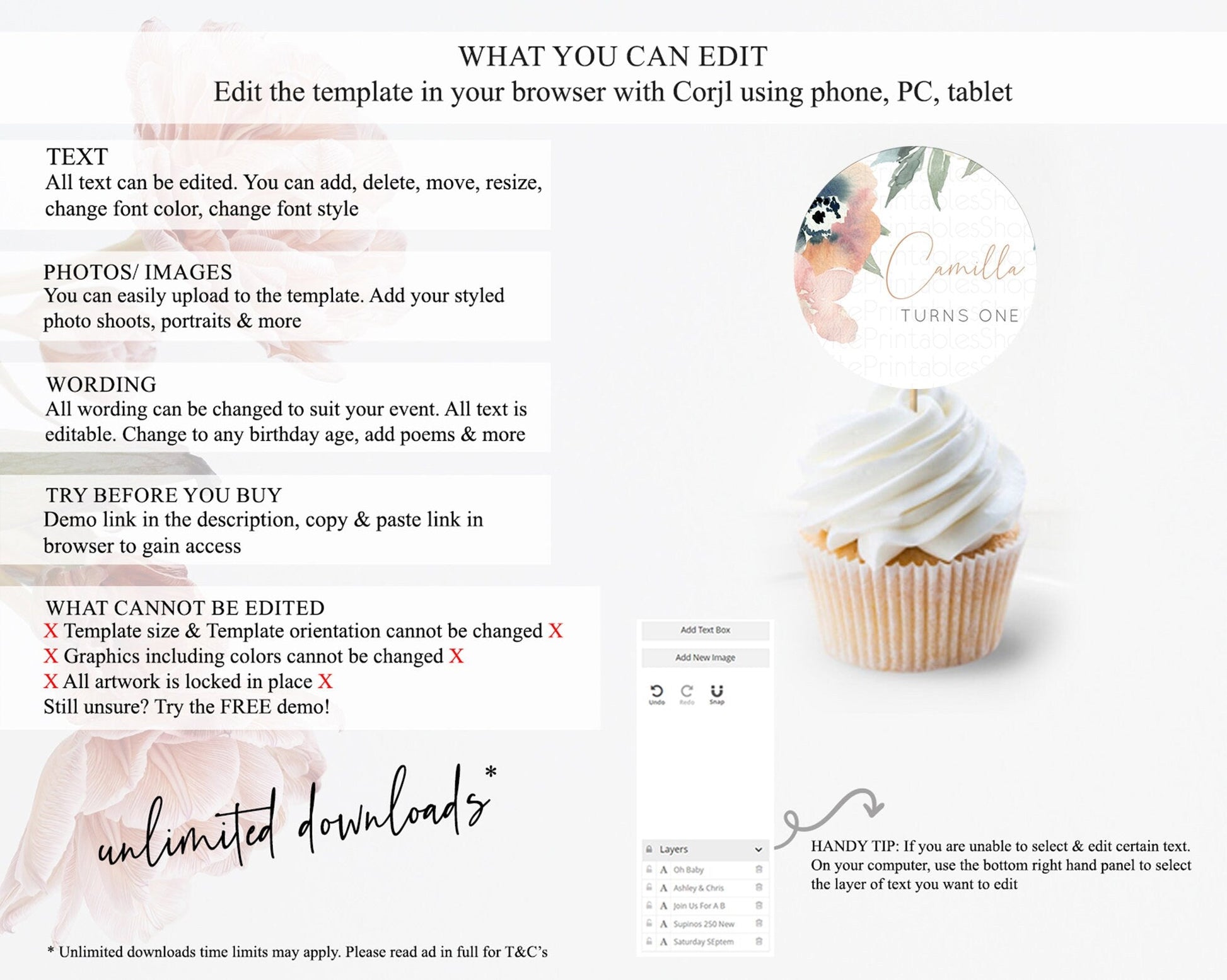 Secret Garden Cupcake Toppers Wildflower Cupcake Toppers Pastel Flowers Cupcake Toppers Enchanted Garden Boho Floral First Birthday D10787