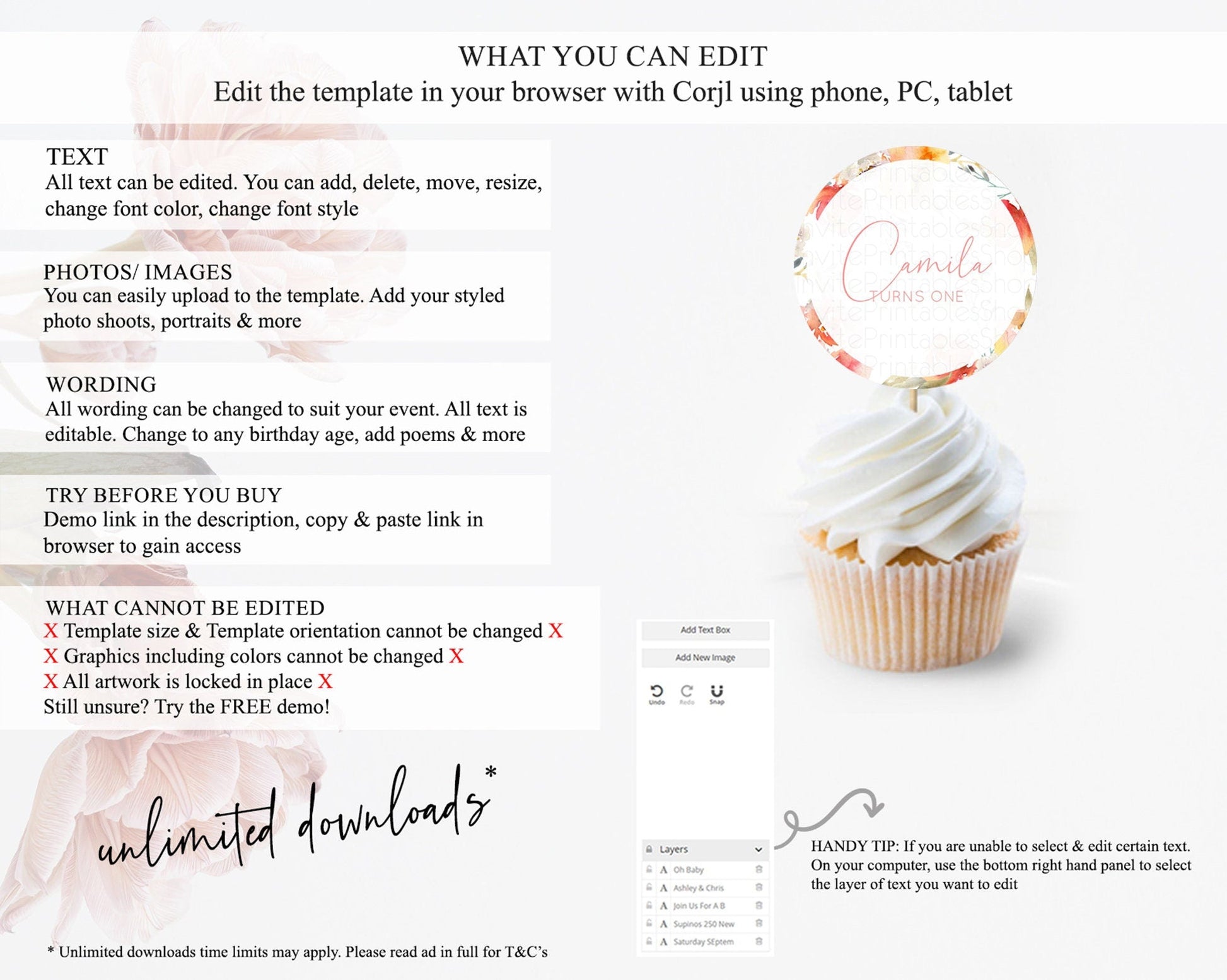 Secret Garden Cupcake Toppers Wildflower Cupcake Toppers Pastel Flowers Cupcake Toppers Enchanted Garden Boho Floral First Birthday D10791