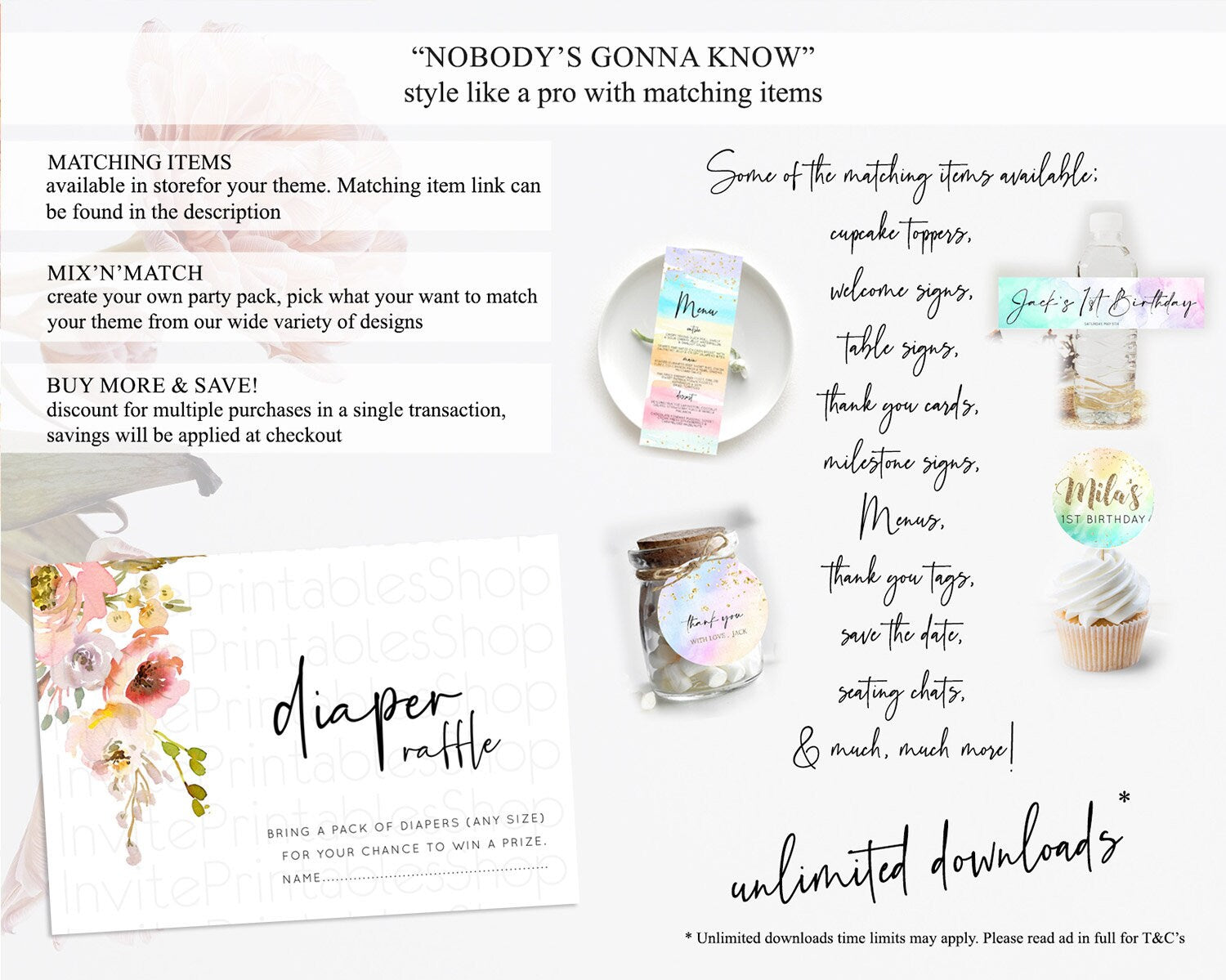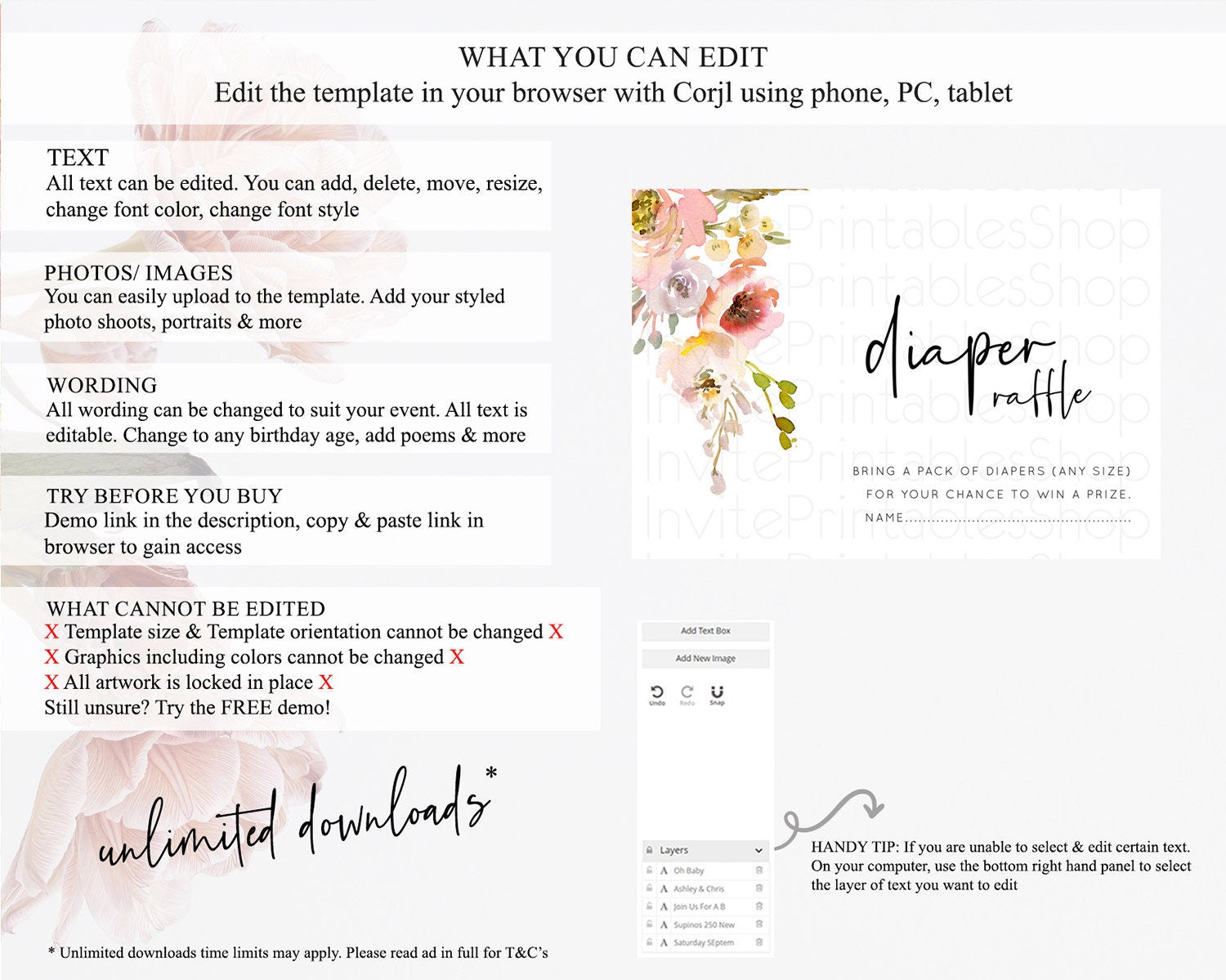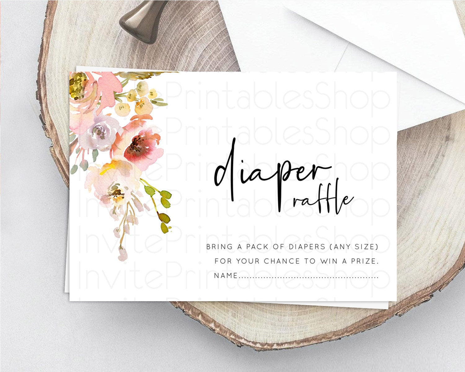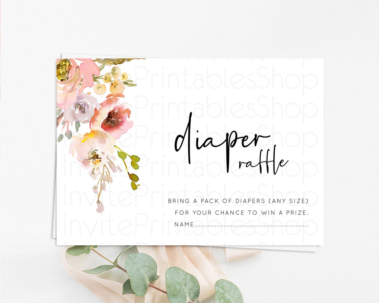 Secret Garden Diaper Raffle Card Boho Wildflower Diaper Raffle Insert Pastel Flower Garden Baby Shower Card Flower Raffle Game D10194