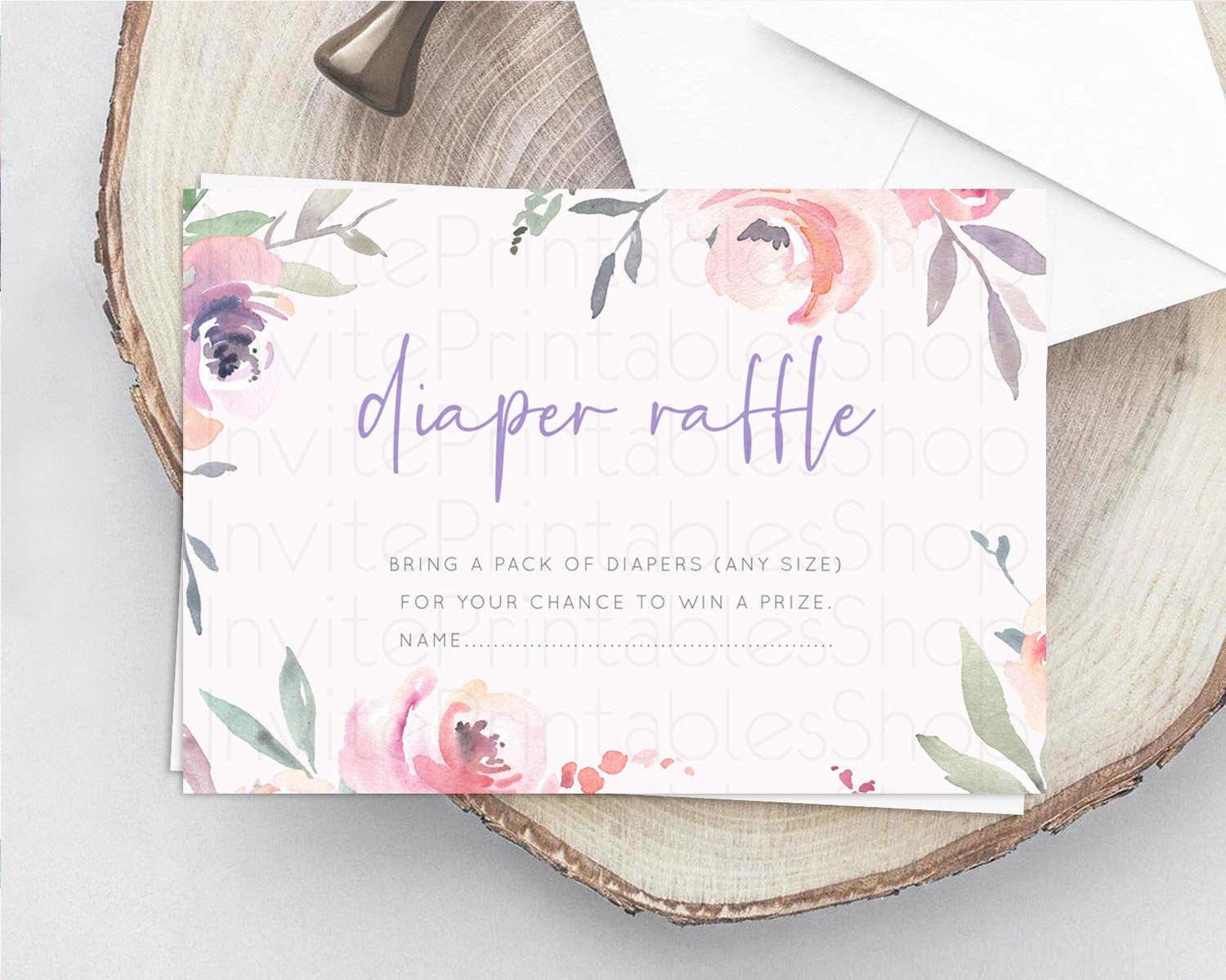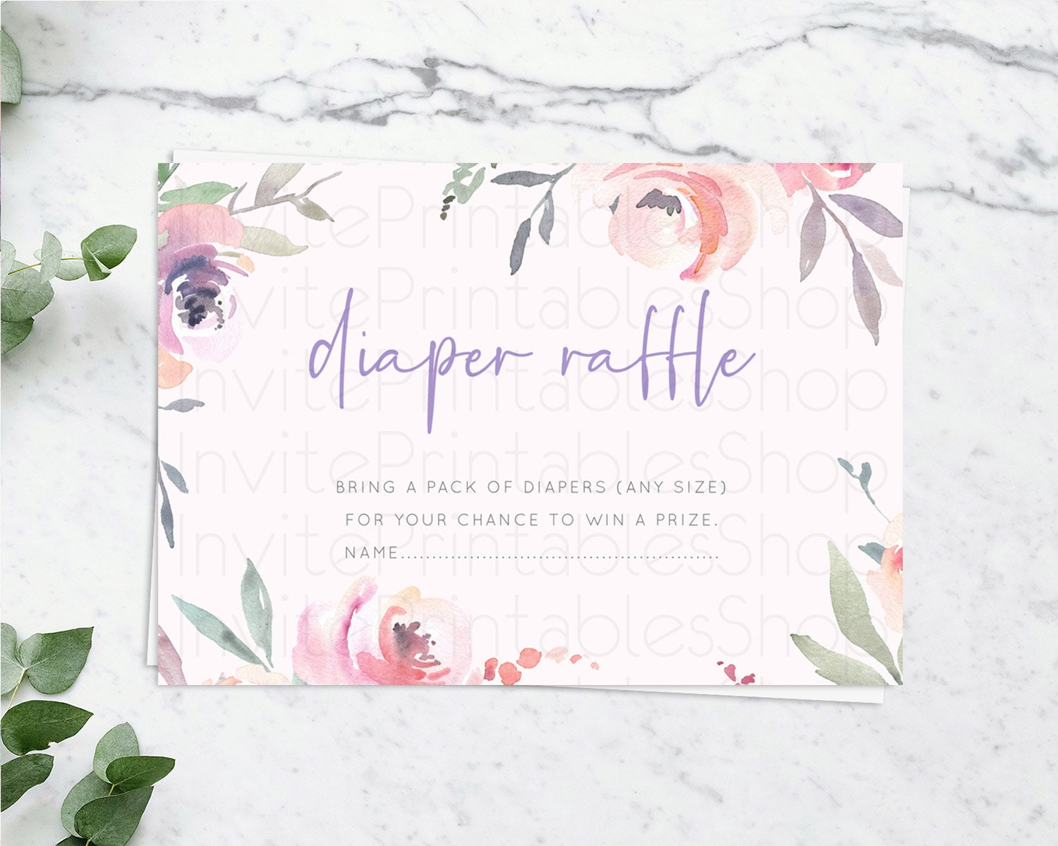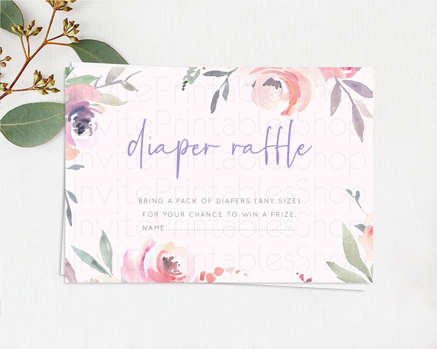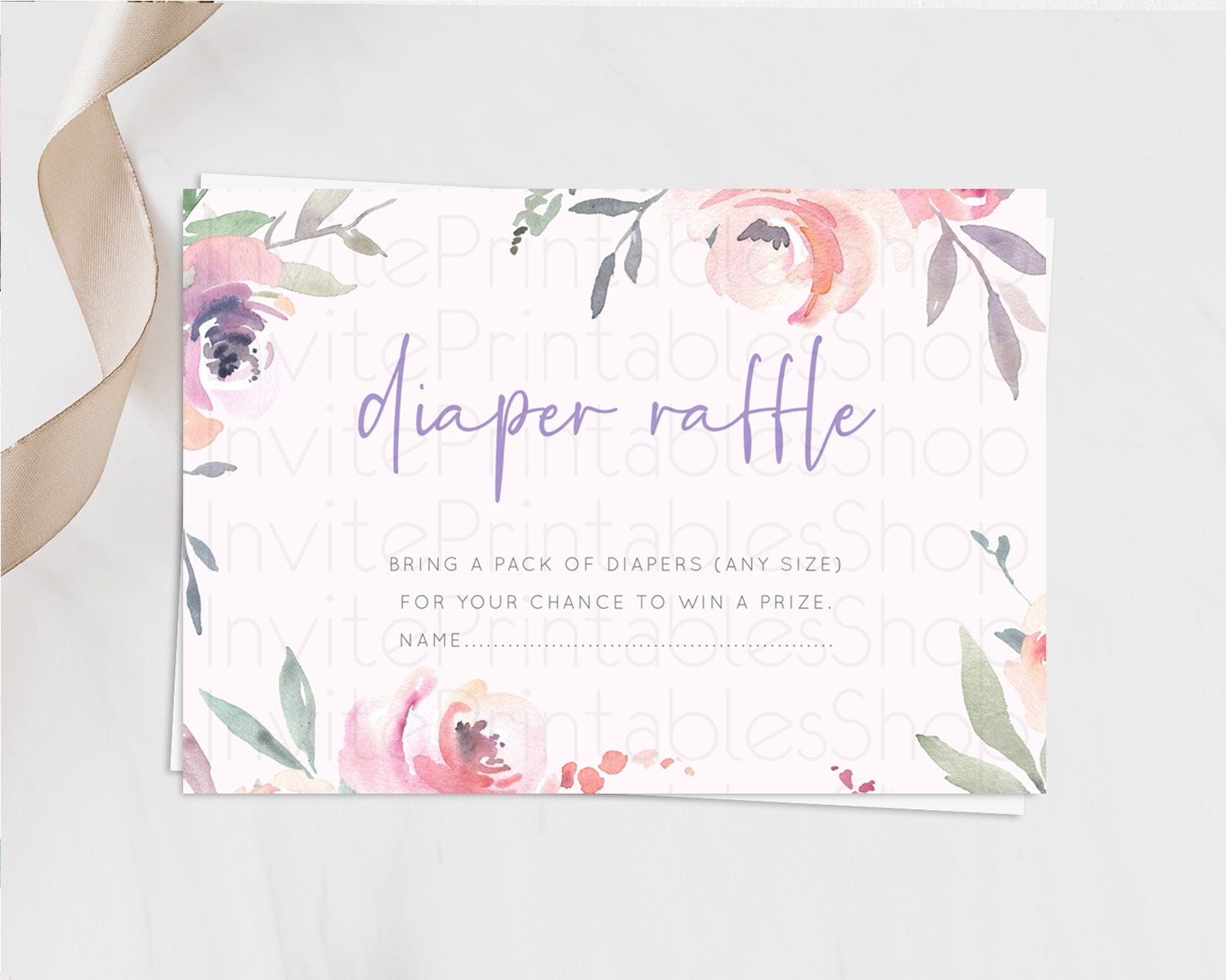 Secret Garden Diaper Raffle Card Boho Wildflower Diaper Raffle Insert Pastel Flower Garden Baby Shower Card Flower Raffle Game D10198