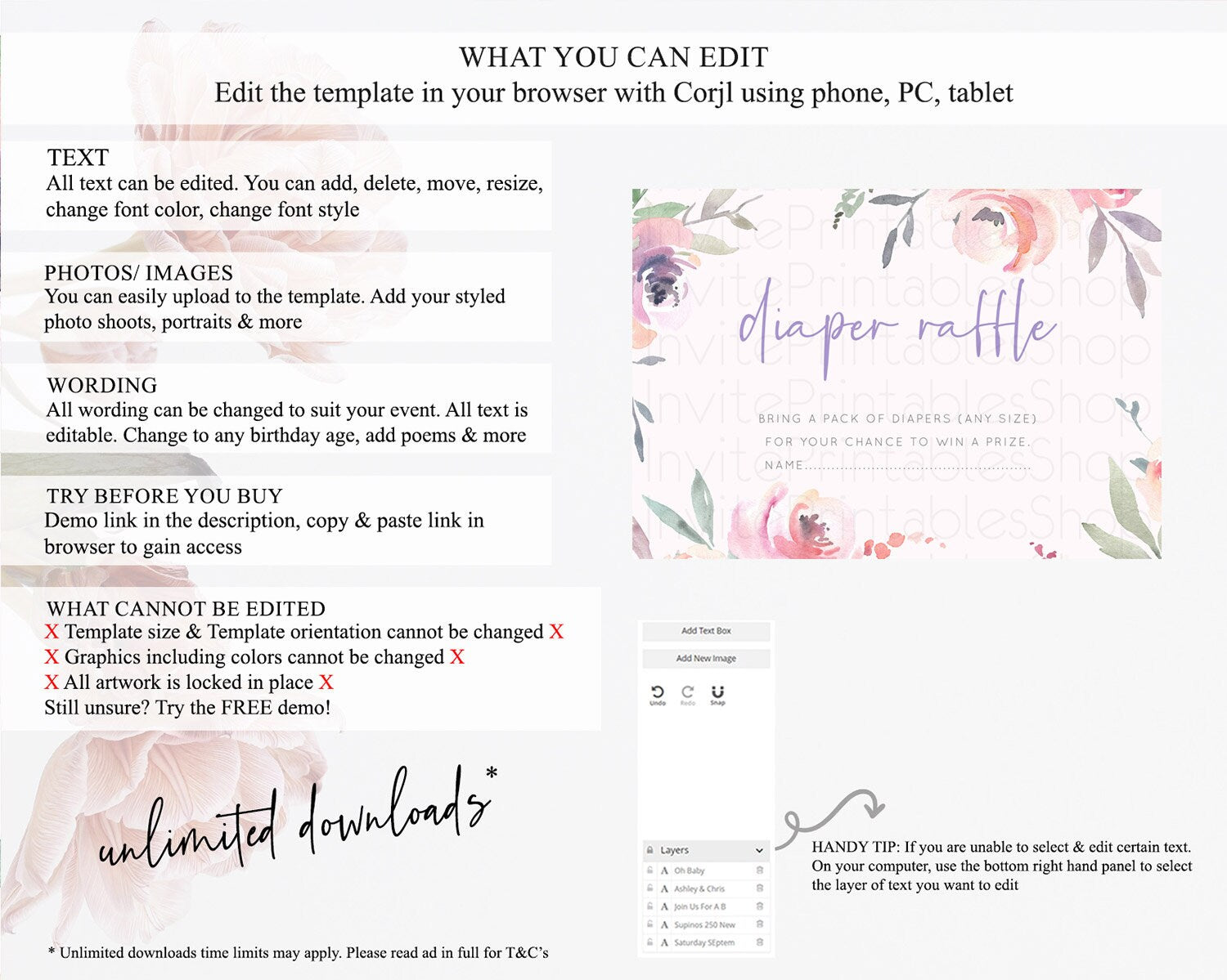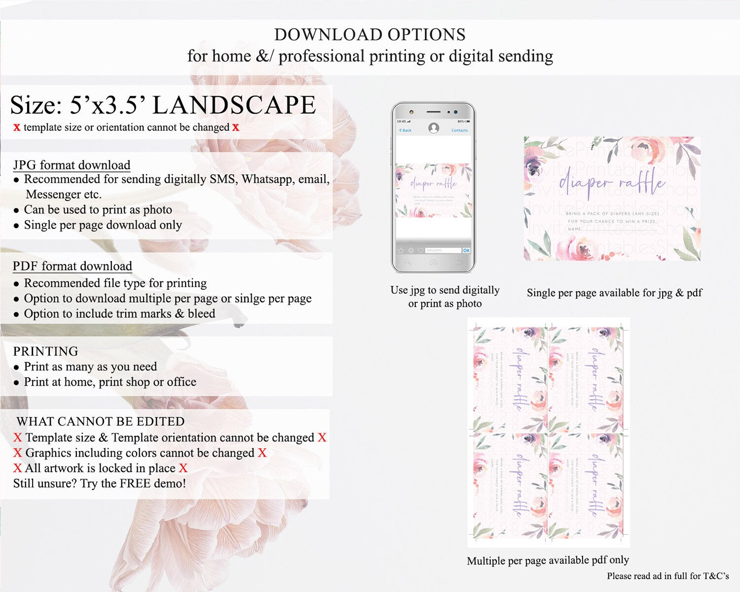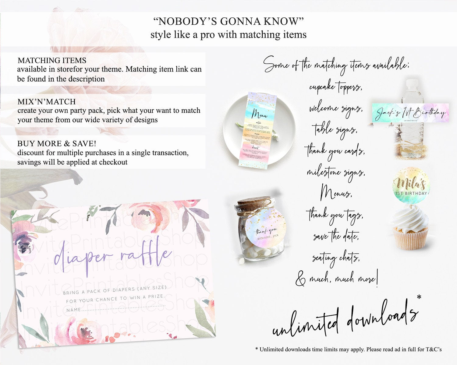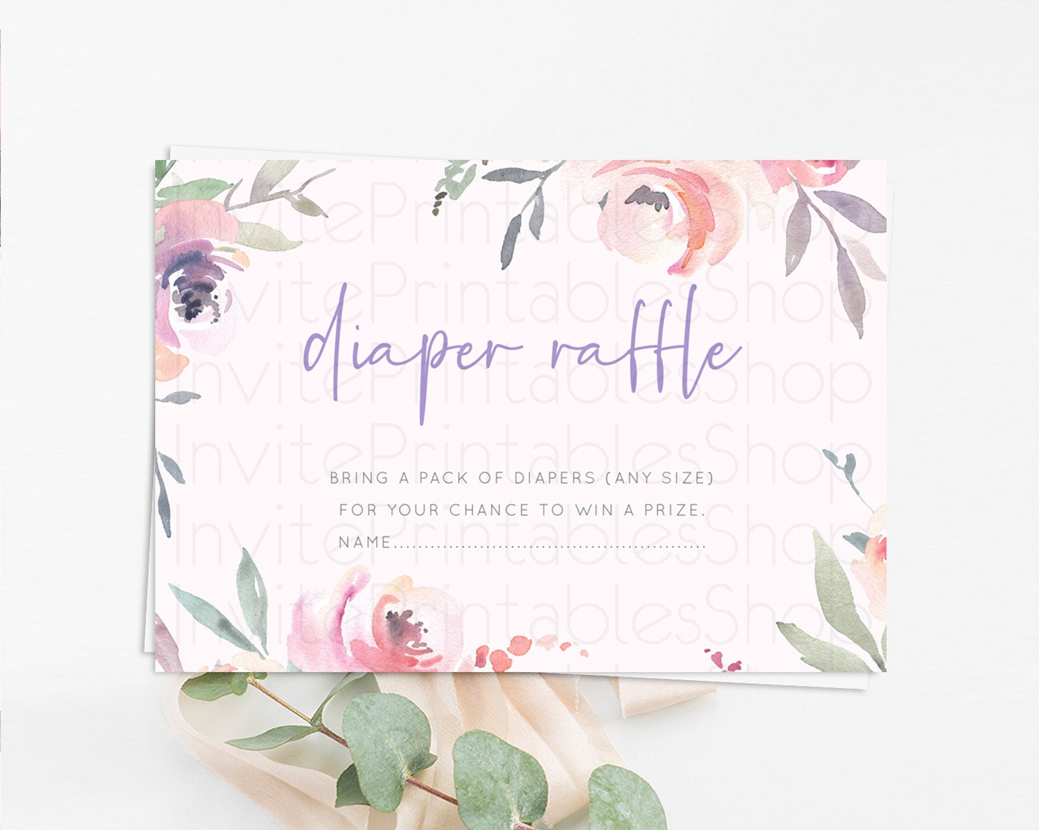 Secret Garden Diaper Raffle Card Boho Wildflower Diaper Raffle Insert Pastel Flower Garden Baby Shower Card Flower Raffle Game D10198
