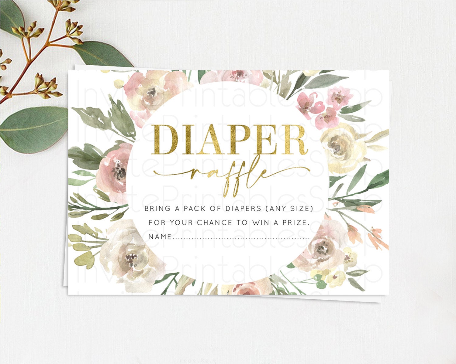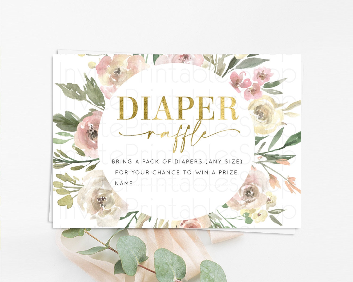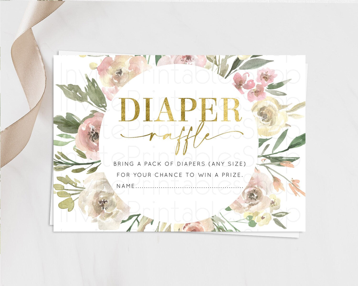 Secret Garden Diaper Raffle Card Boho Wildflower Diaper Raffle Insert Pastel Flower Garden Baby Shower Card Flower Raffle Game D10202