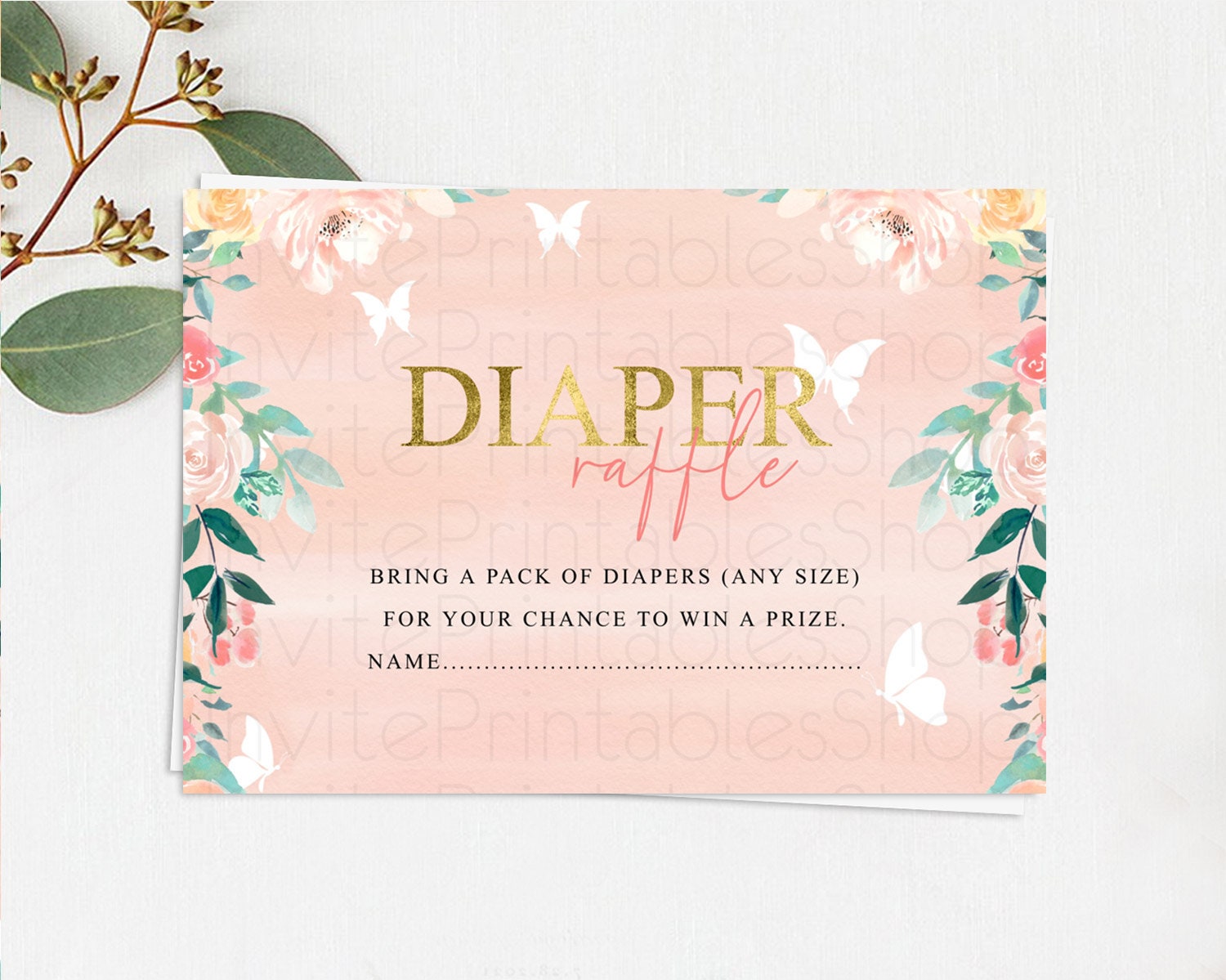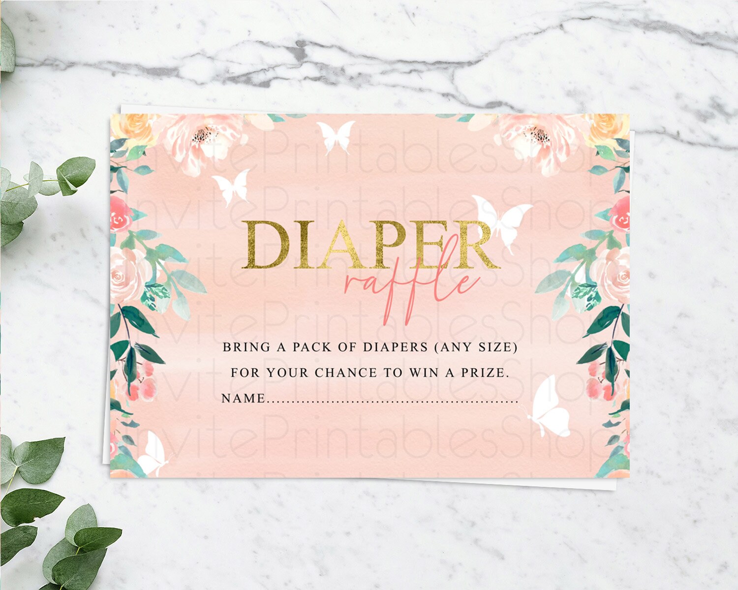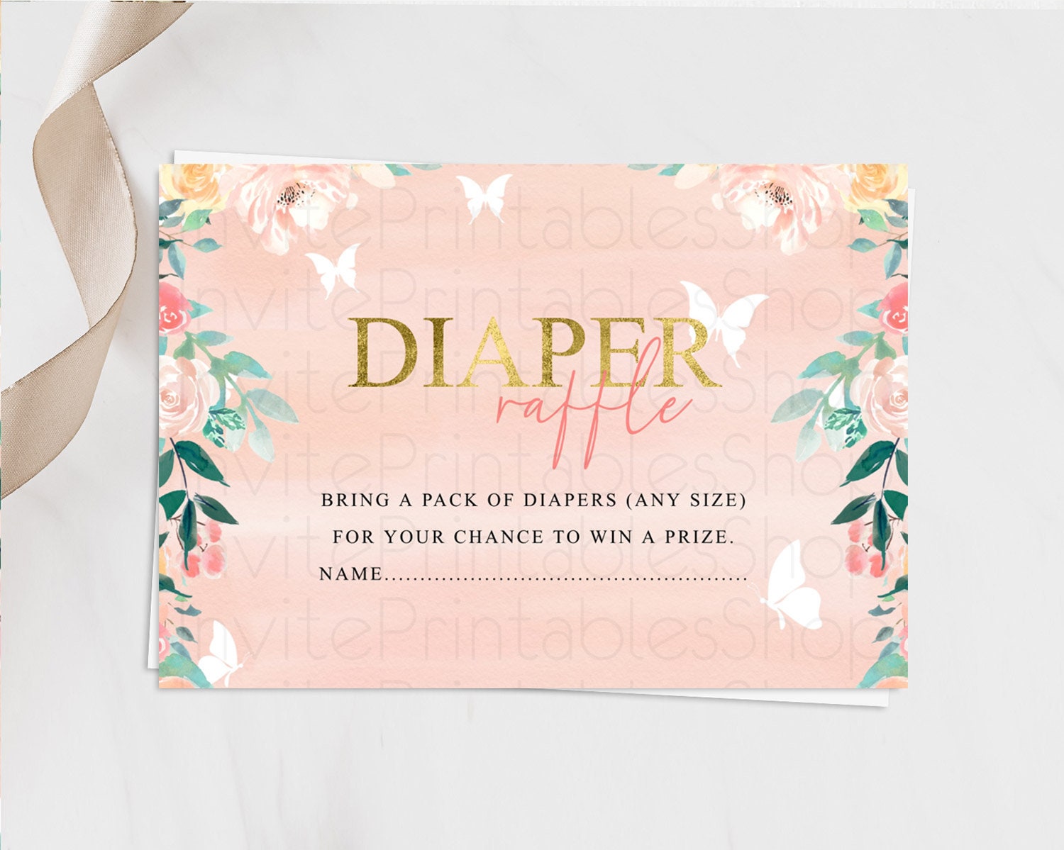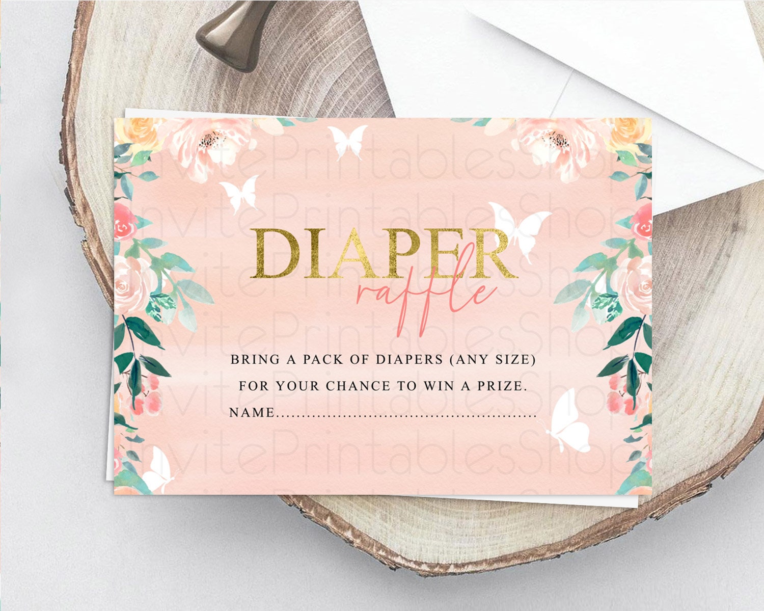 Secret Garden Diaper Raffle Card Boho Wildflower Diaper Raffle Insert Pastel Flower Garden Baby Shower Card Flower Raffle Game D10245