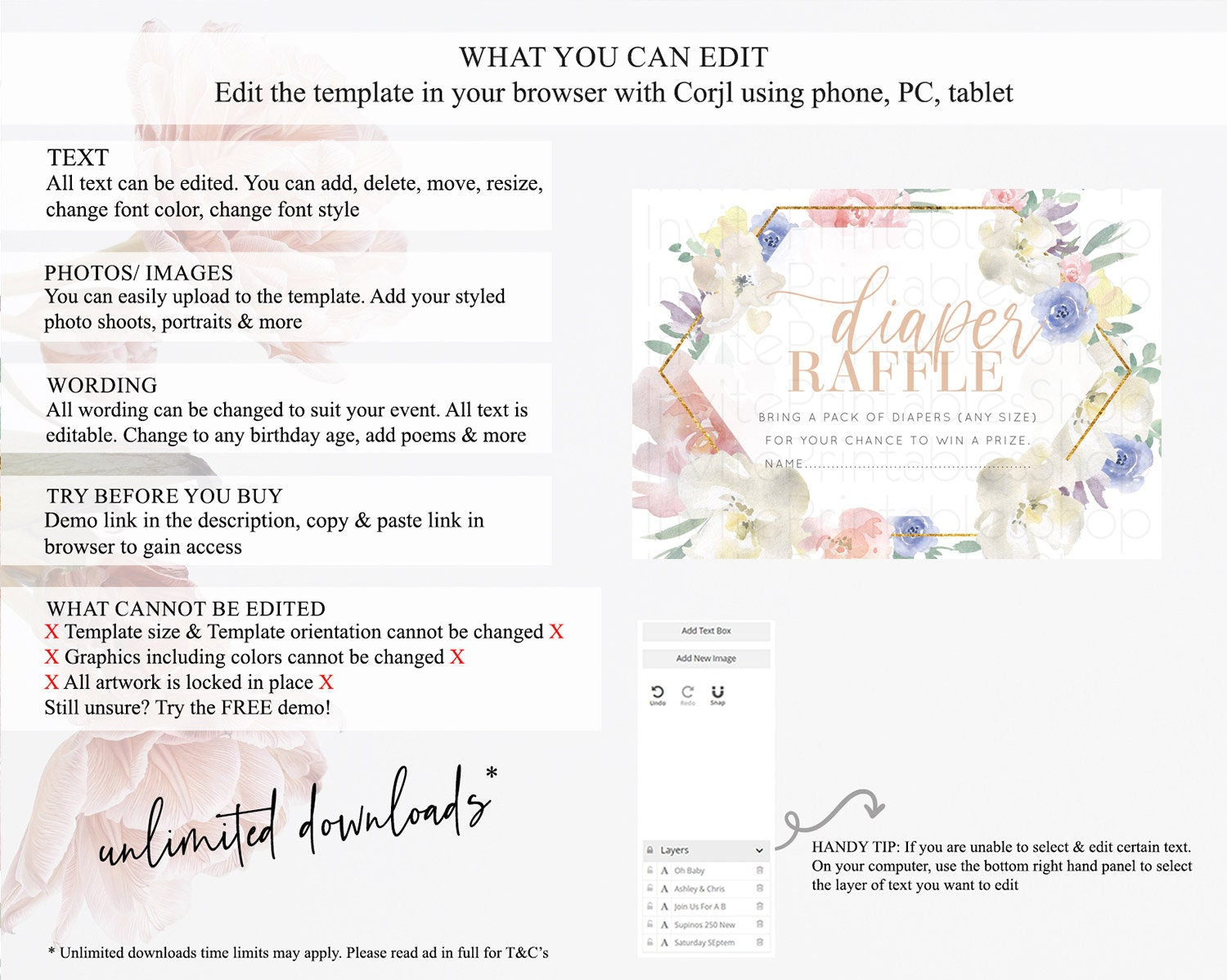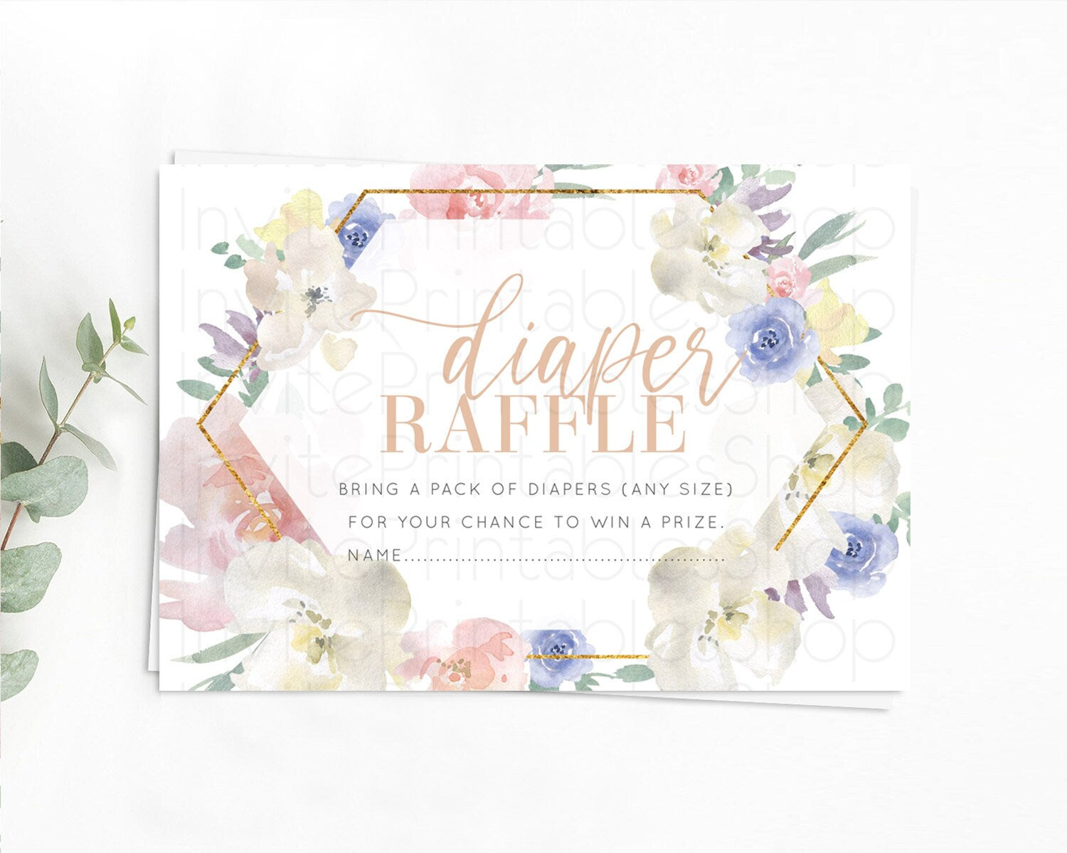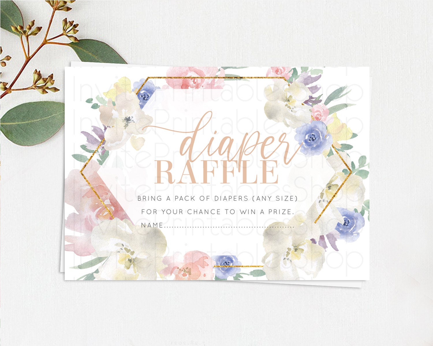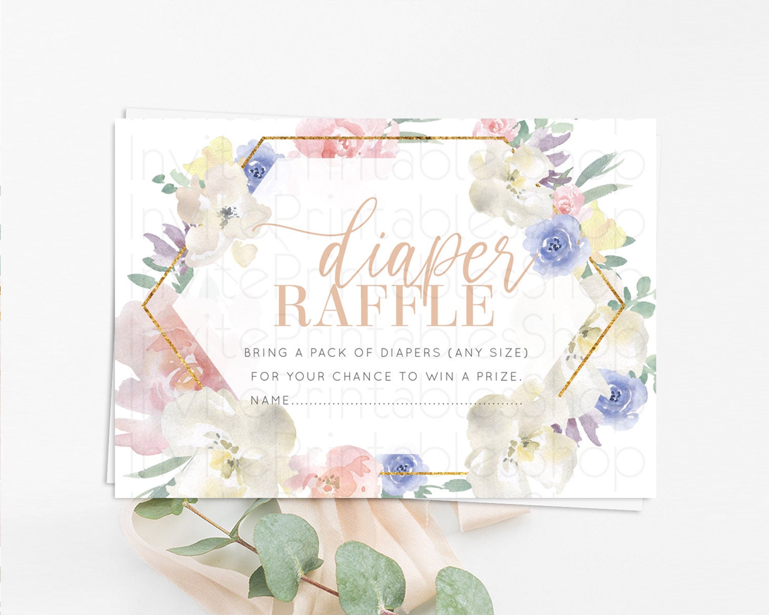 Secret Garden Diaper Raffle Card Boho Wildflower Diaper Raffle Insert Pastel Flower Garden Baby Shower Card Flower Raffle Game D10254