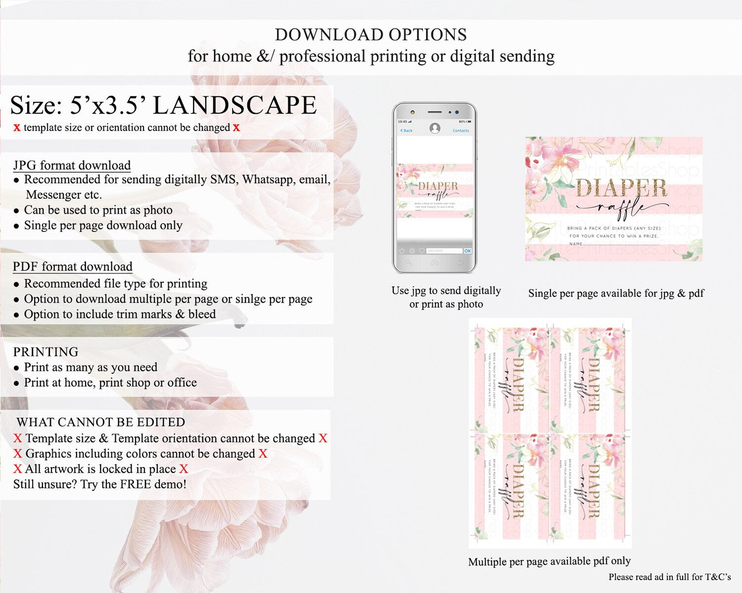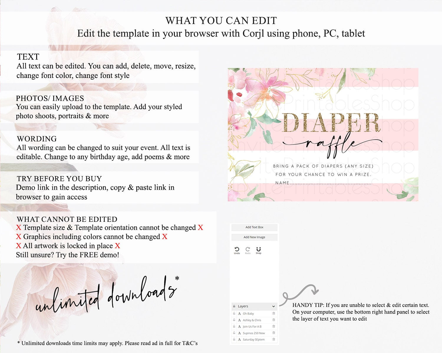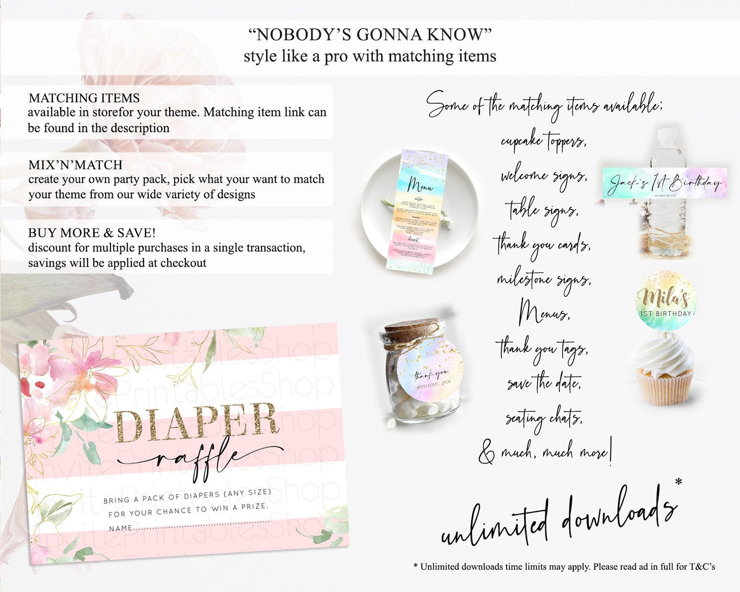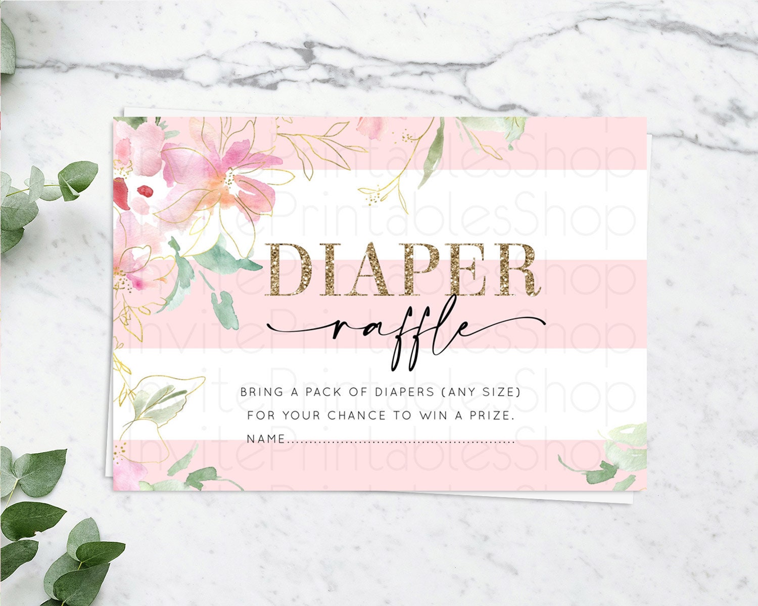 Secret Garden Diaper Raffle Card Boho Wildflower Diaper Raffle Insert Pastel Flower Garden Baby Shower Card Flower Raffle Game D10301