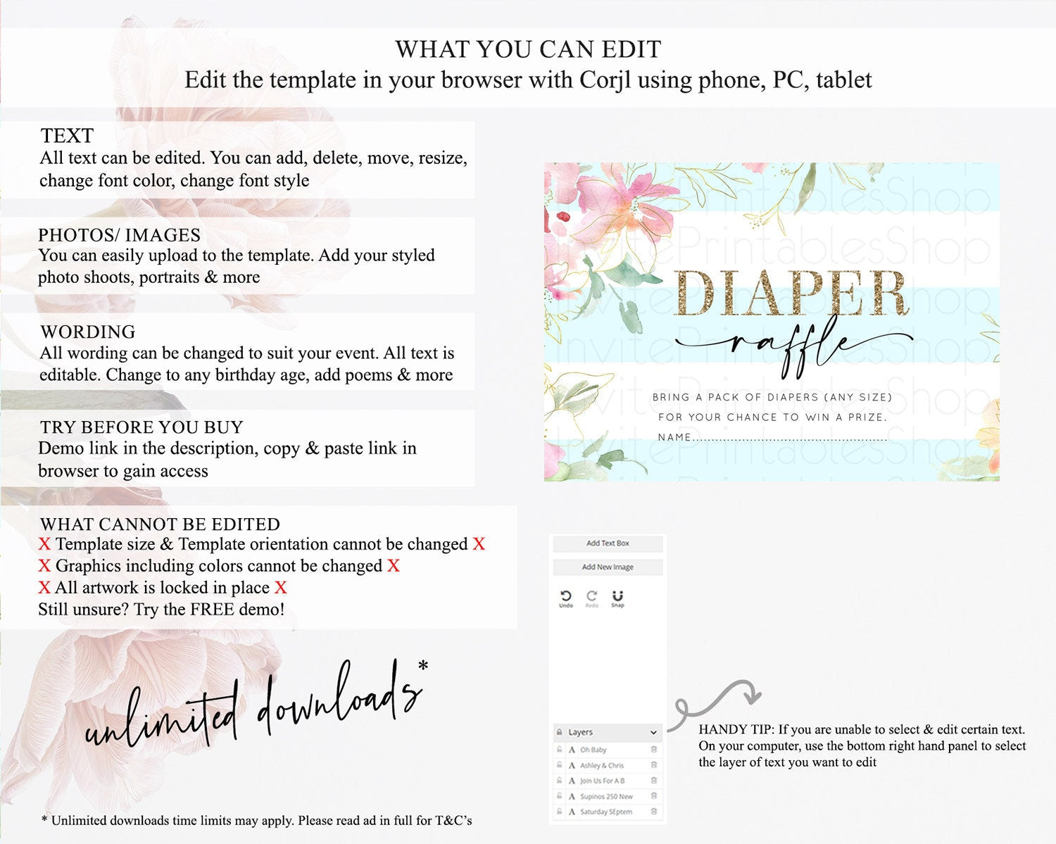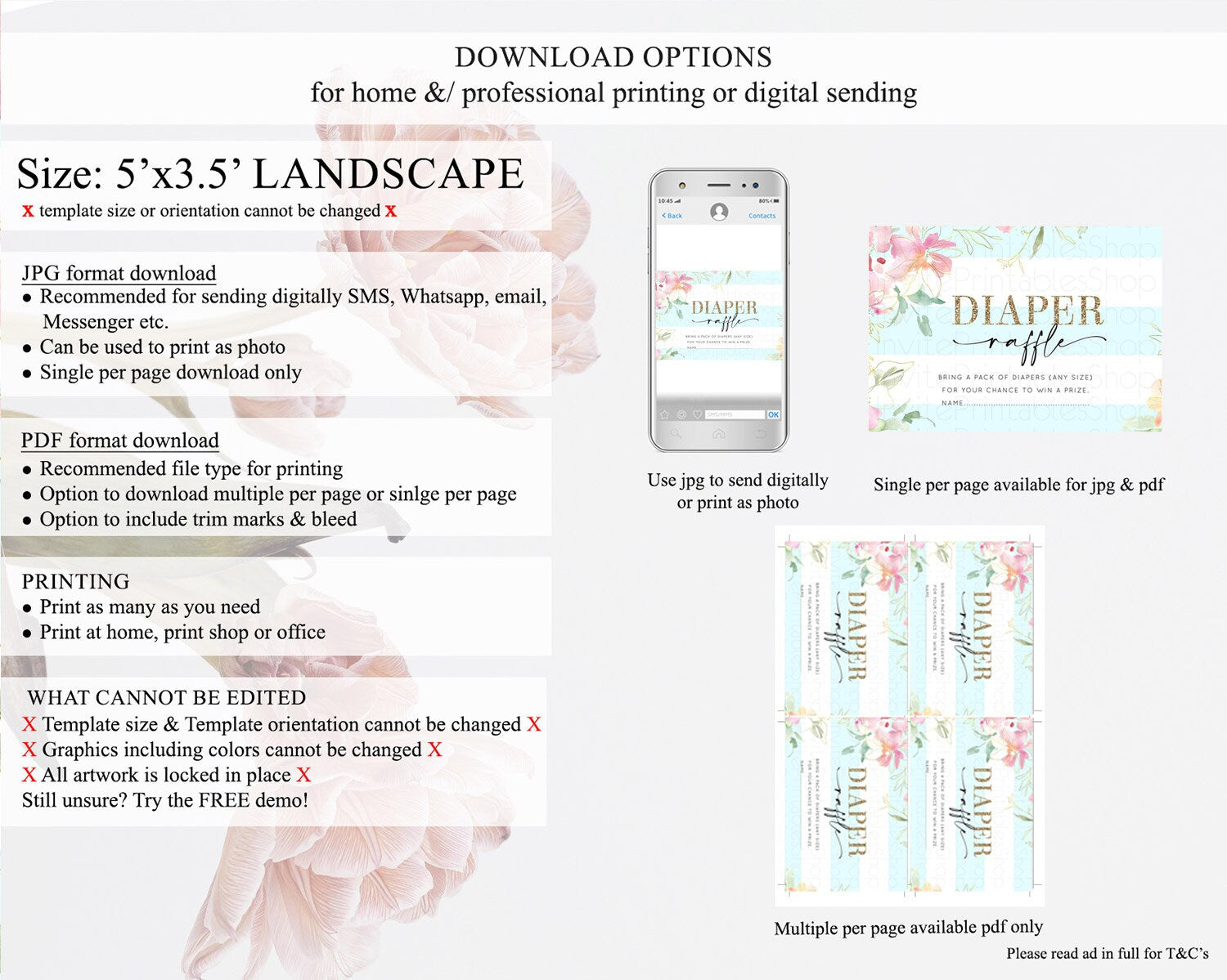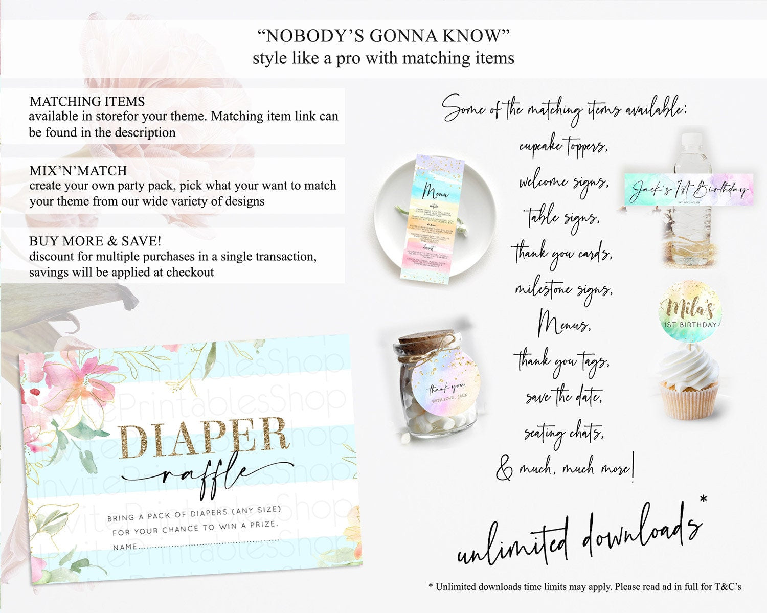 Secret Garden Diaper Raffle Card Boho Wildflower Diaper Raffle Insert Pastel Flower Garden Baby Shower Card Flower Raffle Game D10304