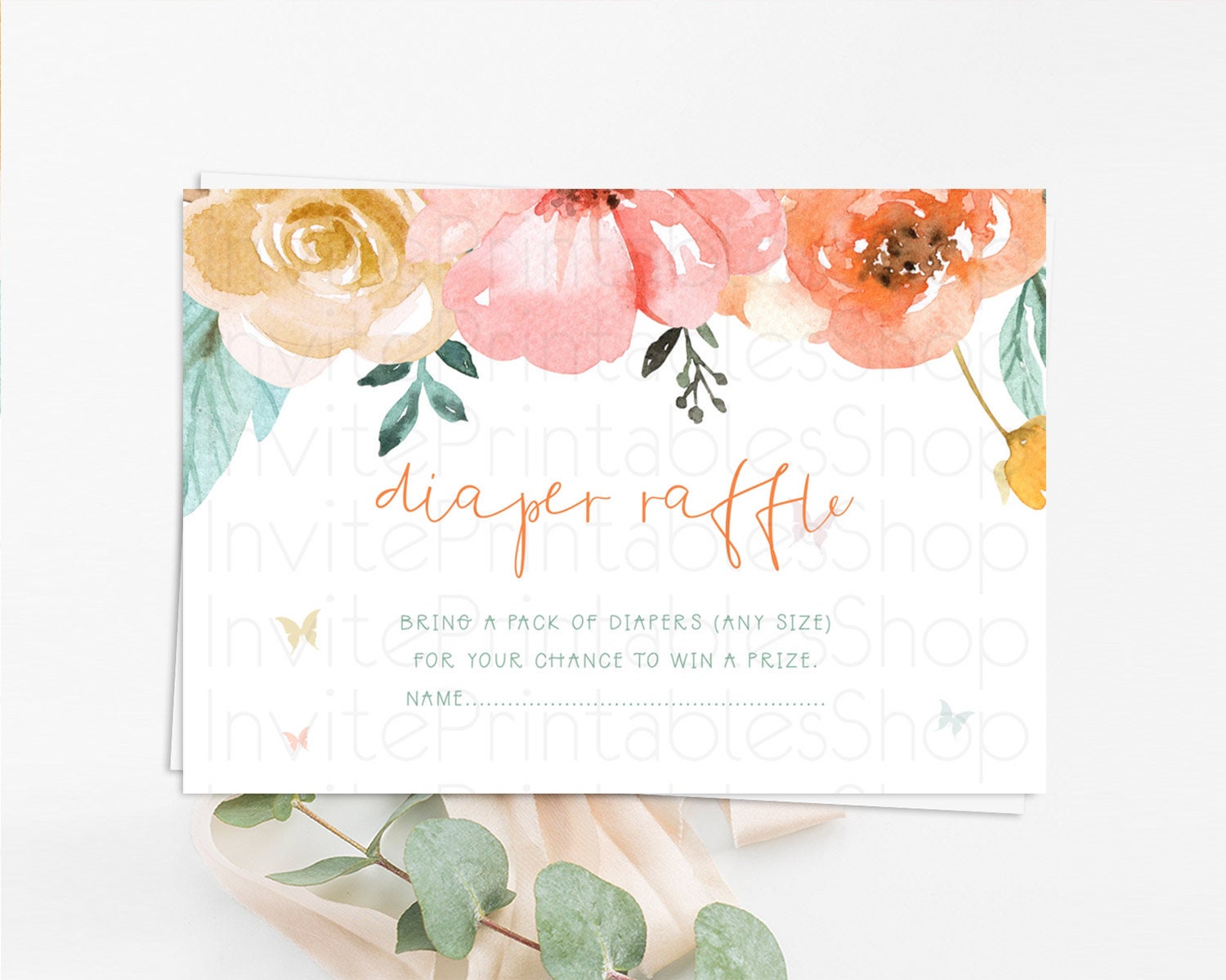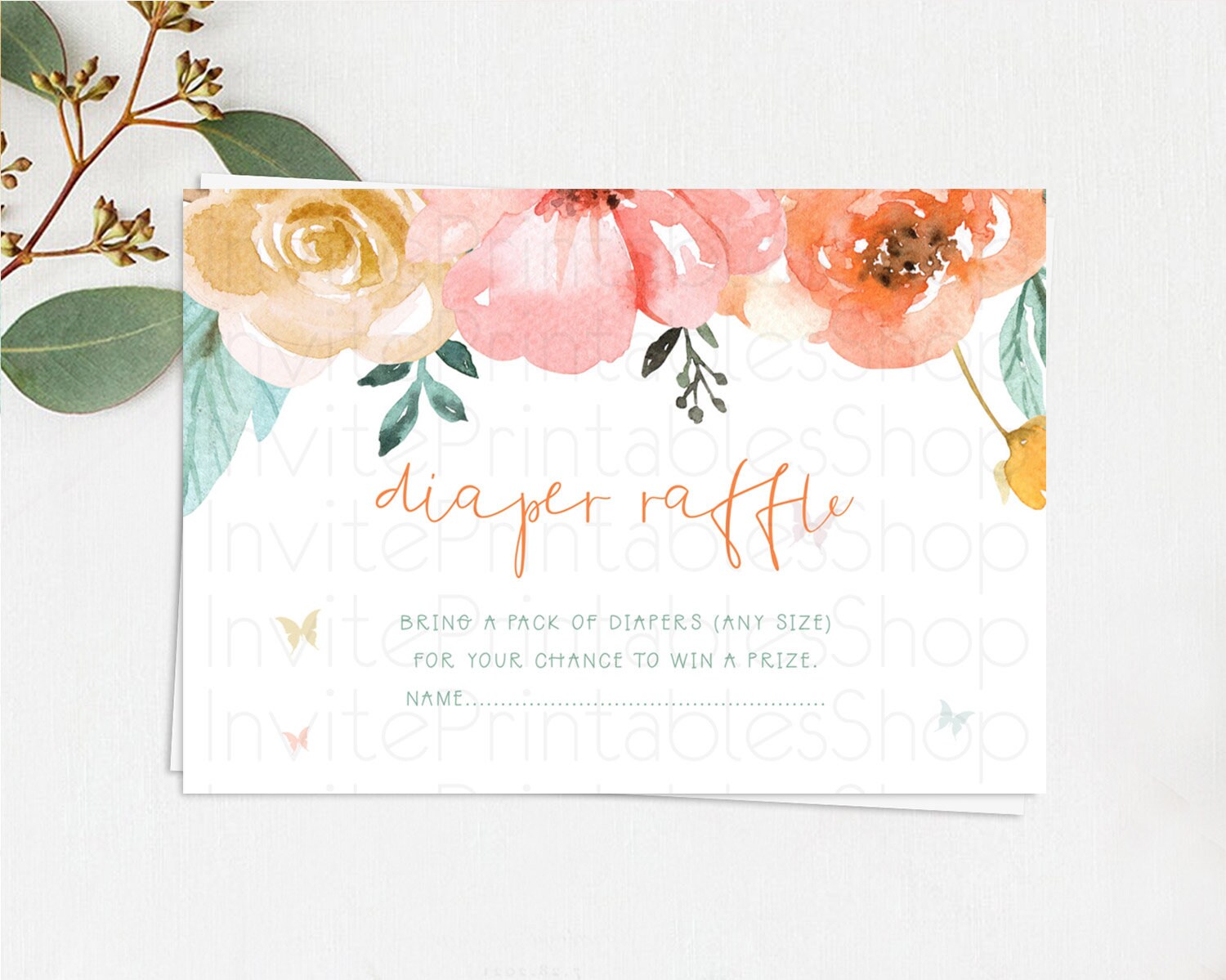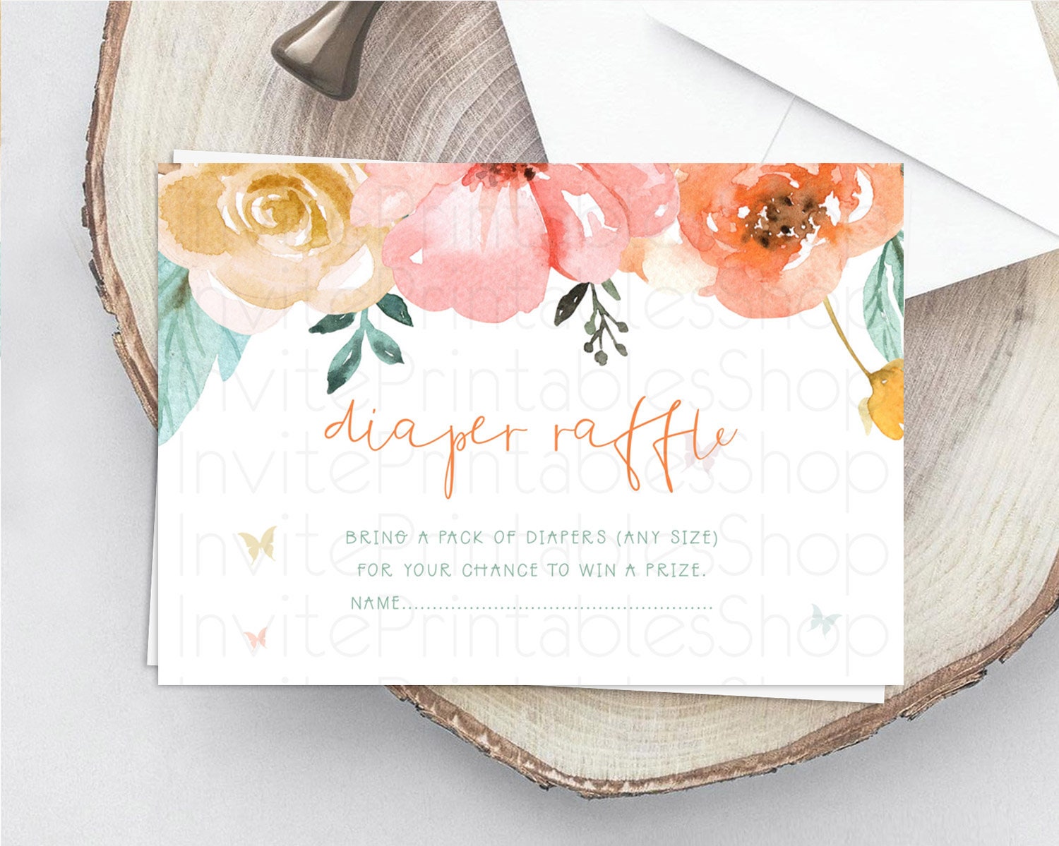 Secret Garden Diaper Raffle Card Boho Wildflower Diaper Raffle Insert Pastel Flower Garden Baby Shower Card Flower Raffle Game D10347