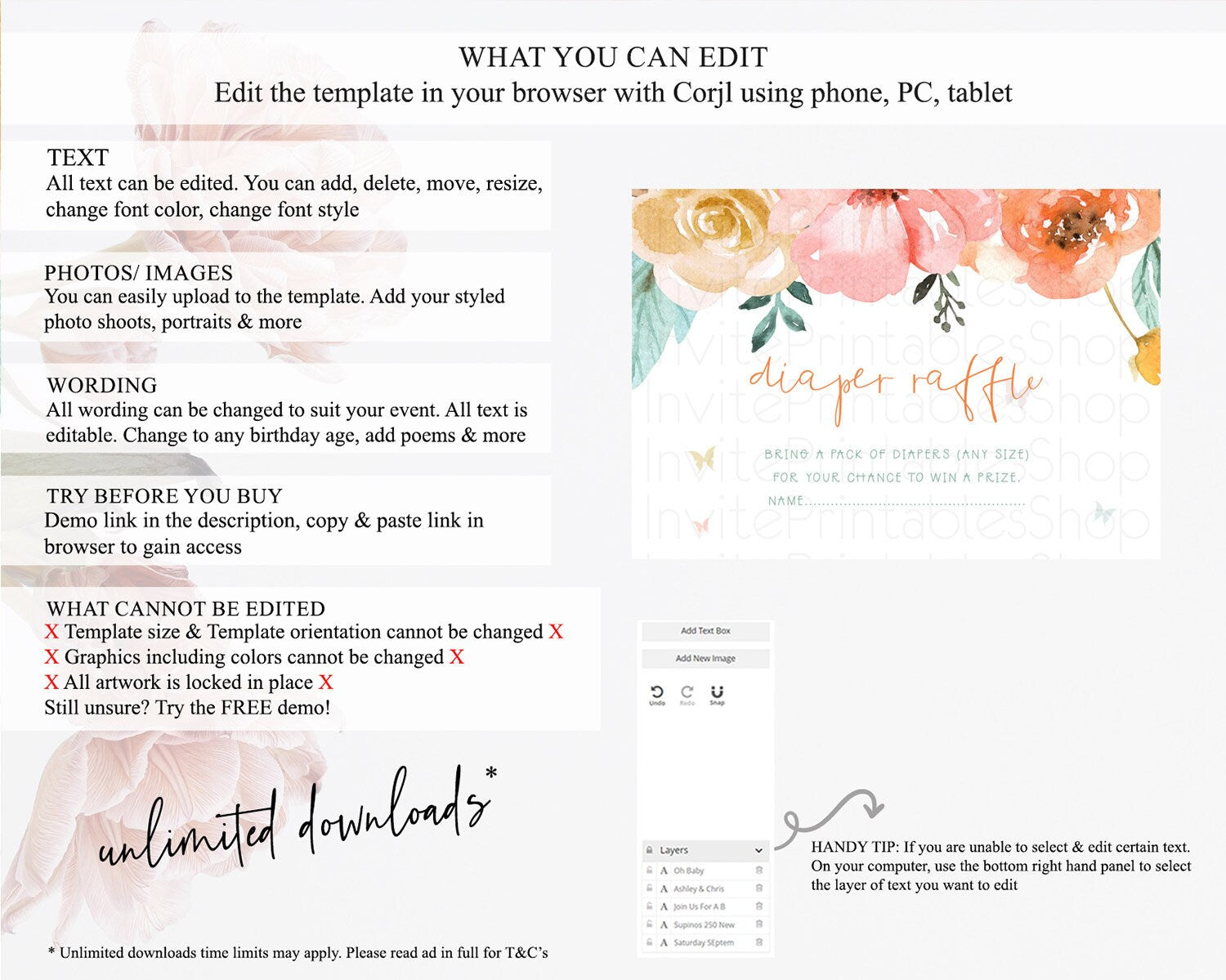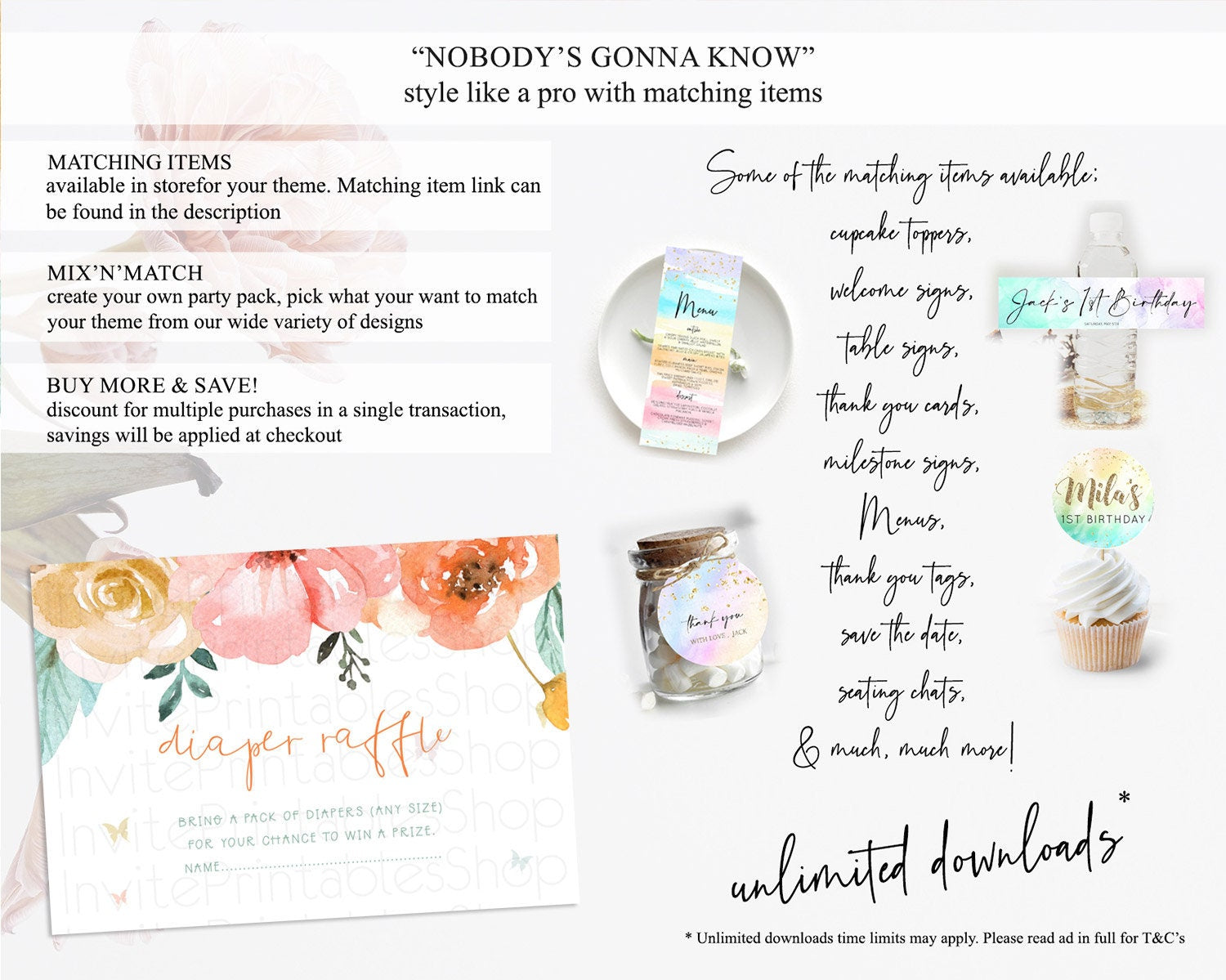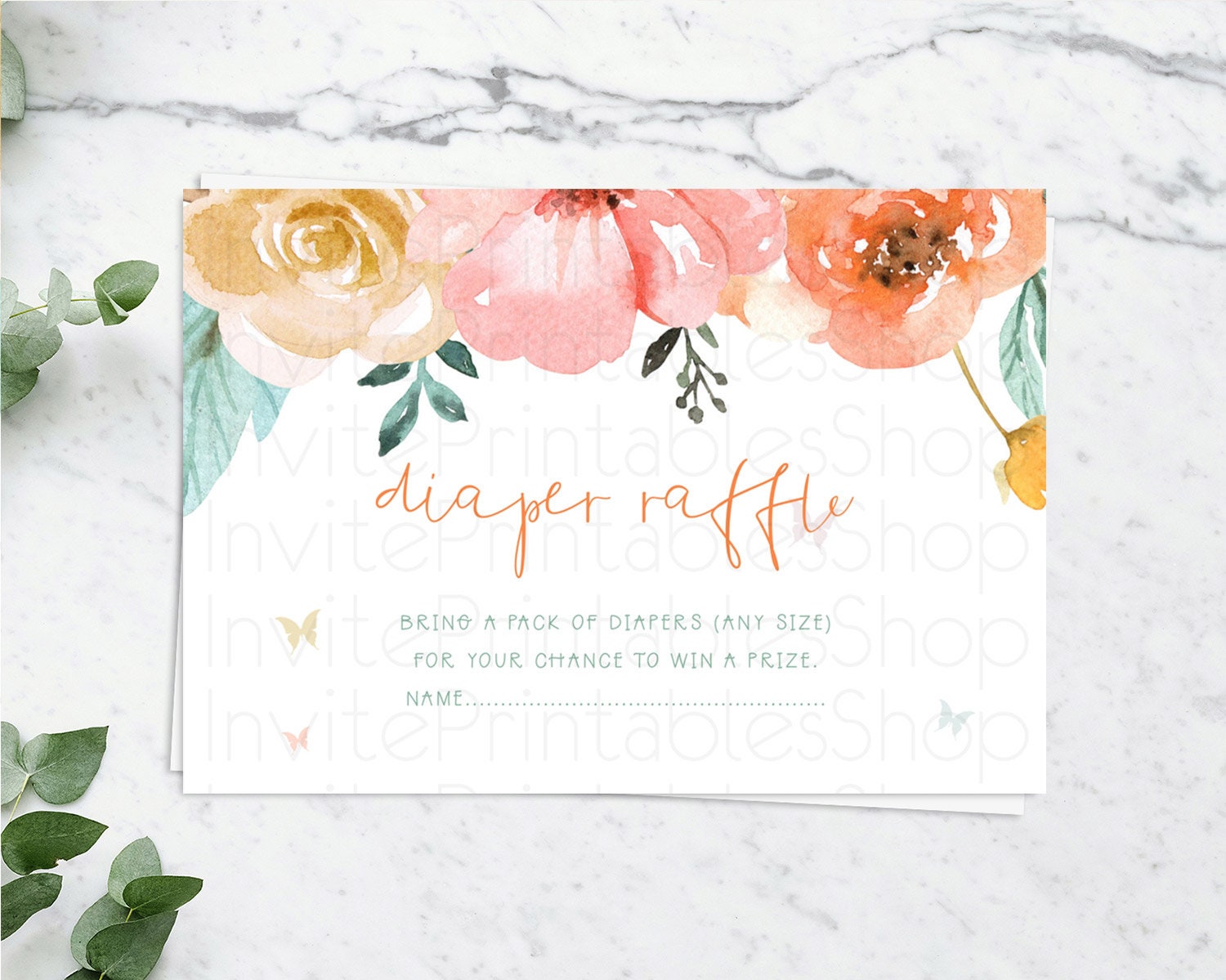 Secret Garden Diaper Raffle Card Boho Wildflower Diaper Raffle Insert Pastel Flower Garden Baby Shower Card Flower Raffle Game D10347