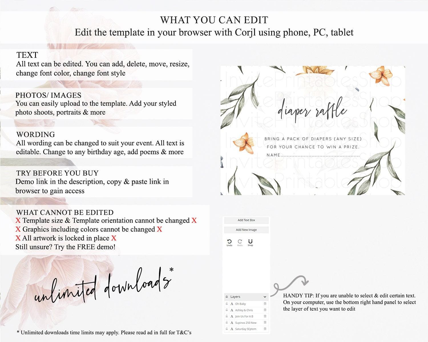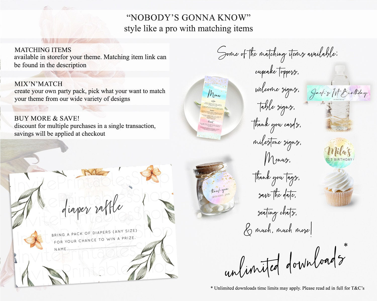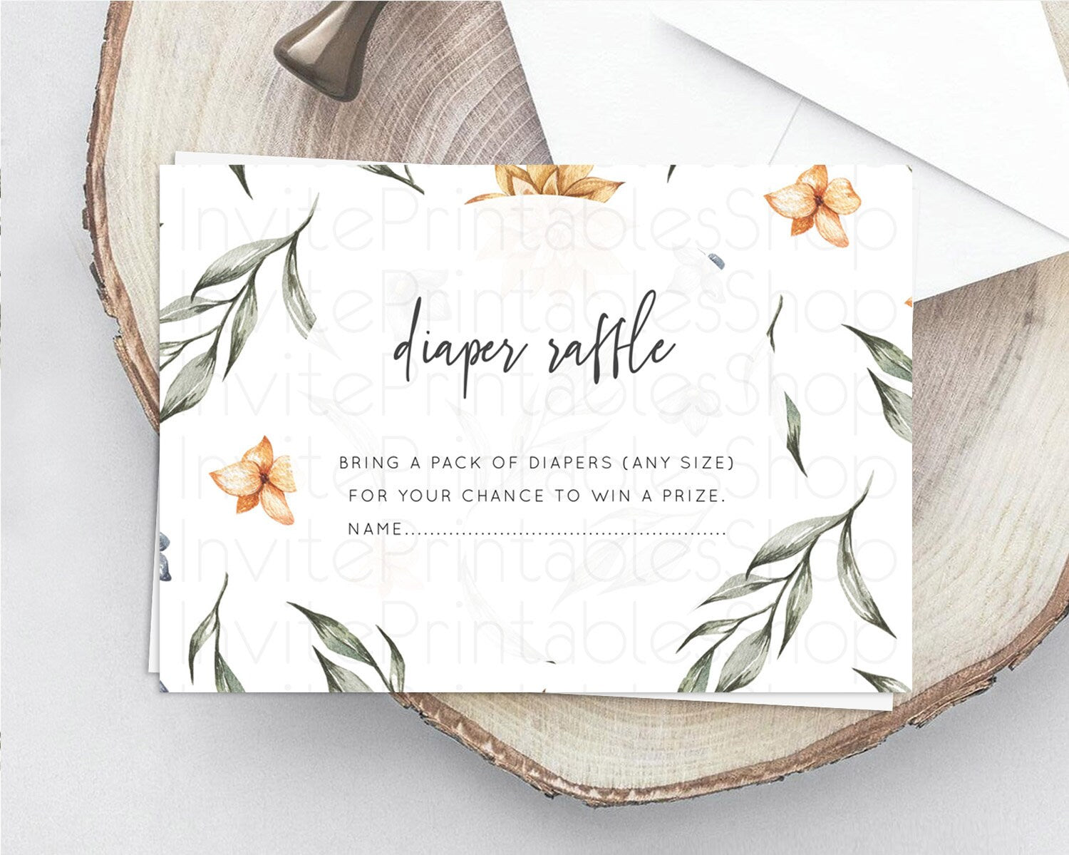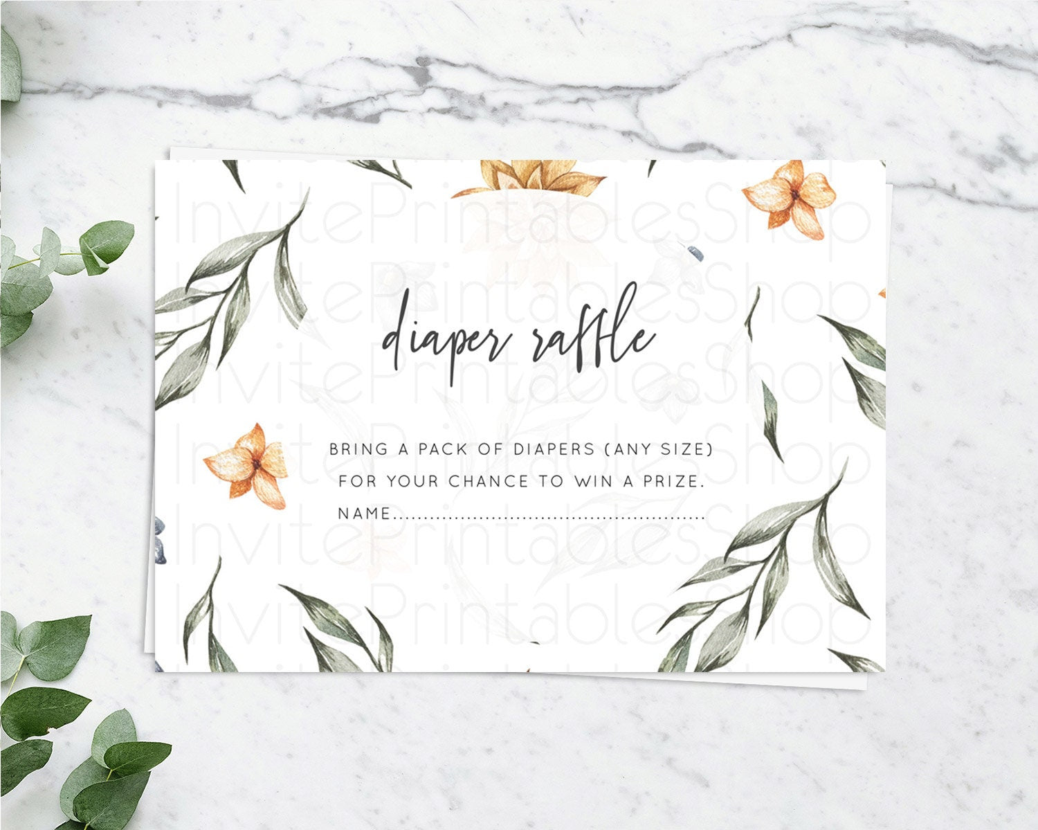 Secret Garden Diaper Raffle Card Boho Wildflower Diaper Raffle Insert Pastel Flower Garden Baby Shower Card Flower Raffle Game D10544