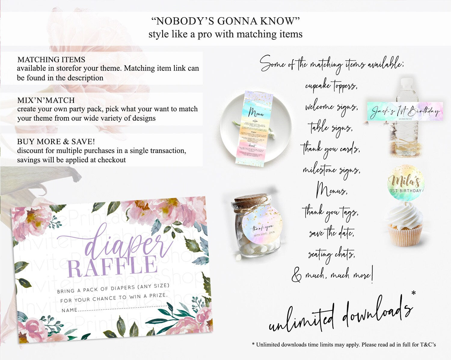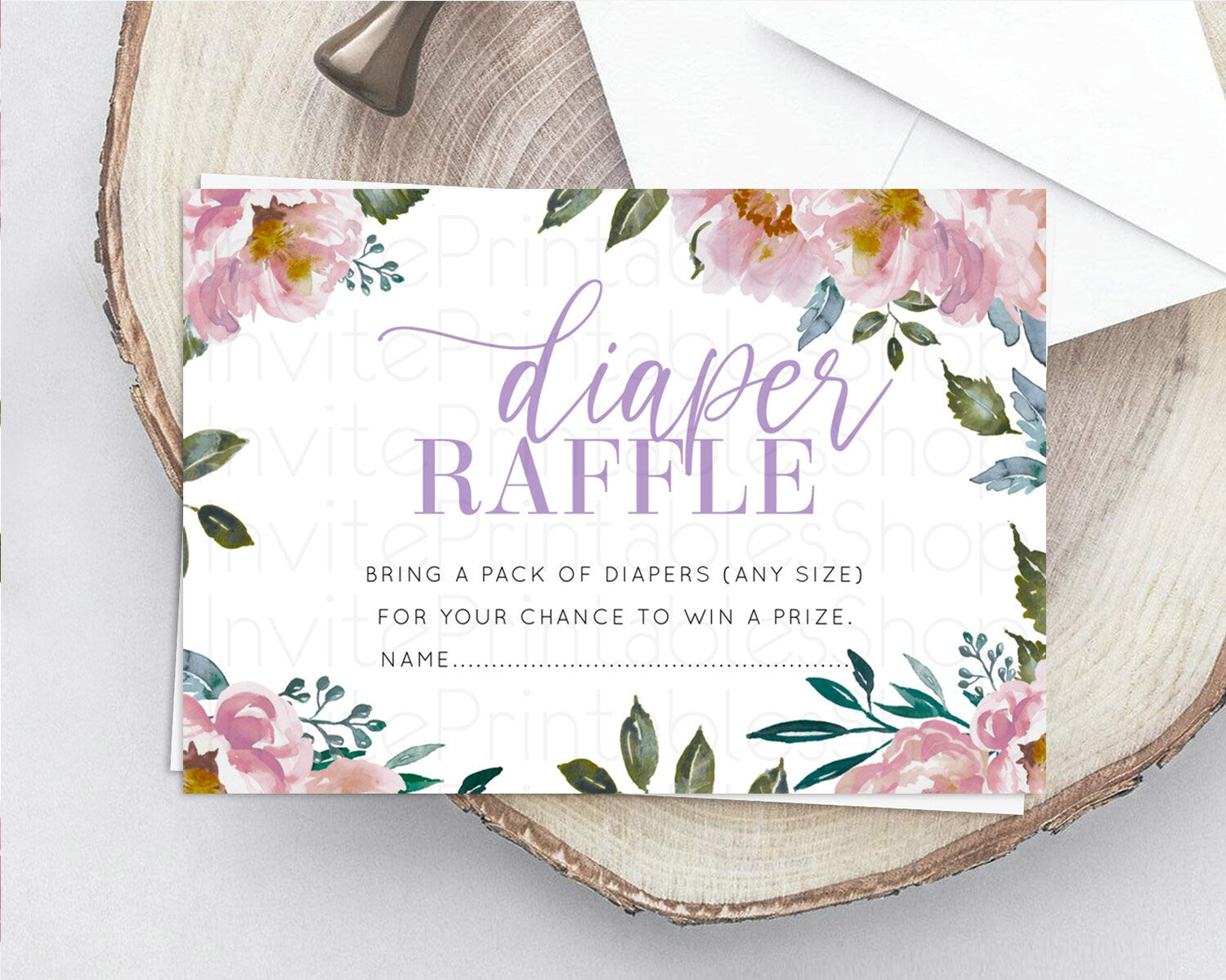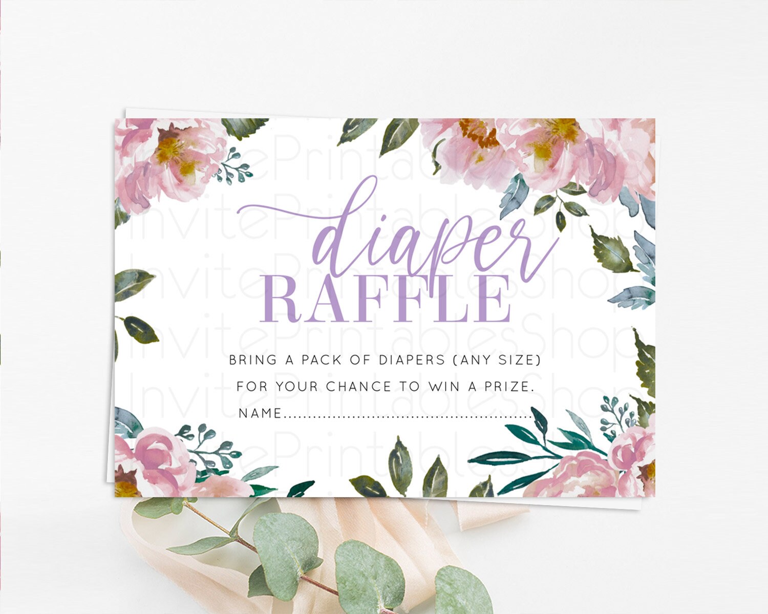 Secret Garden Diaper Raffle Card Boho Wildflower Diaper Raffle Insert Pastel Flower Garden Baby Shower Card Flower Raffle Game D10729