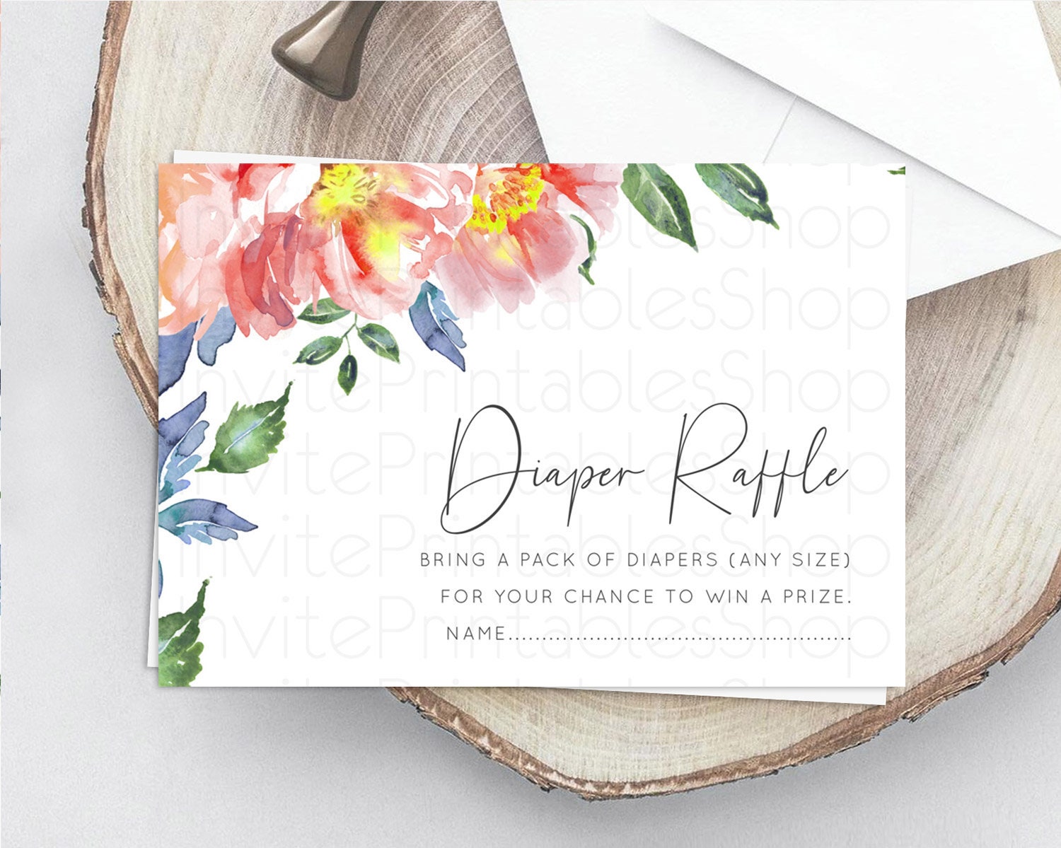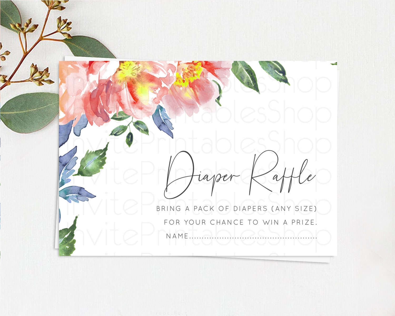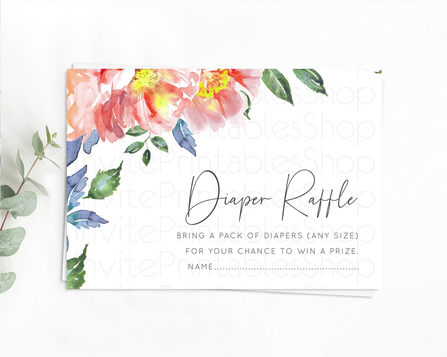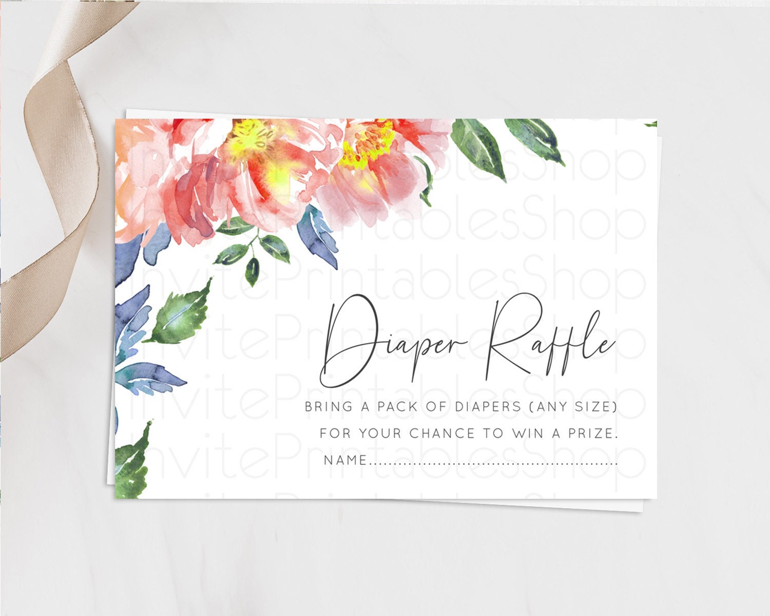 Secret Garden Diaper Raffle Card Boho Wildflower Diaper Raffle Insert Pastel Flower Garden Baby Shower Card Flower Raffle Game D10751
