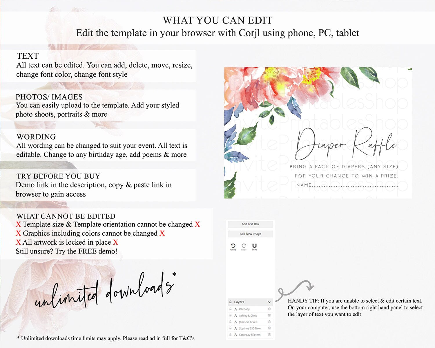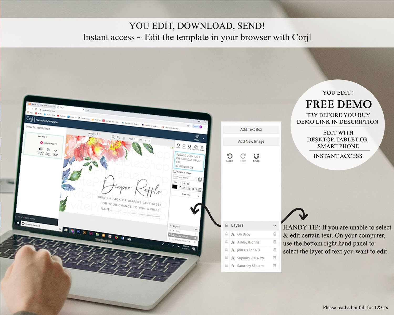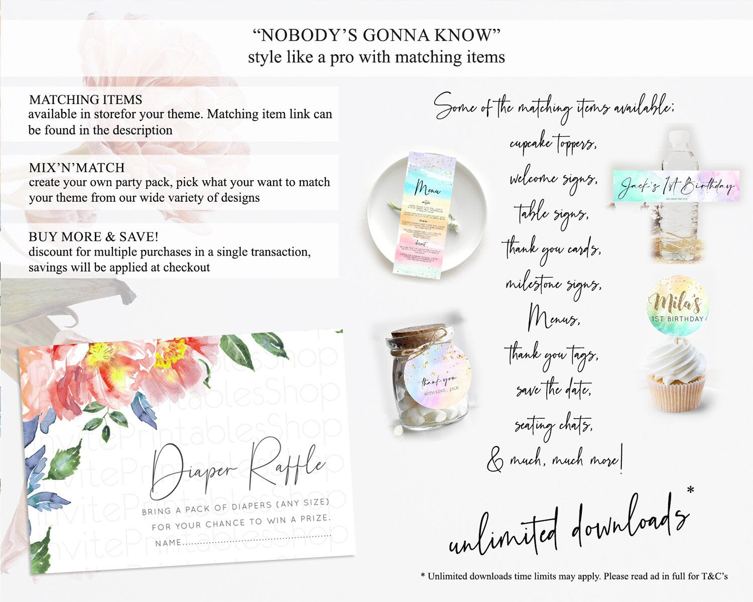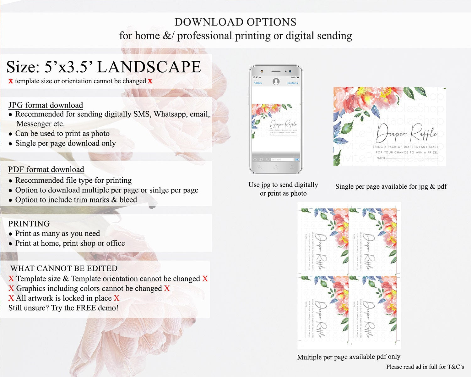 Secret Garden Diaper Raffle Card Boho Wildflower Diaper Raffle Insert Pastel Flower Garden Baby Shower Card Flower Raffle Game D10751