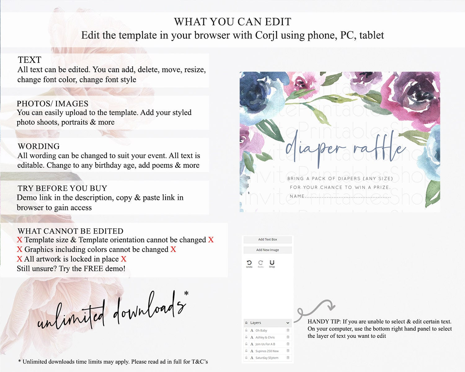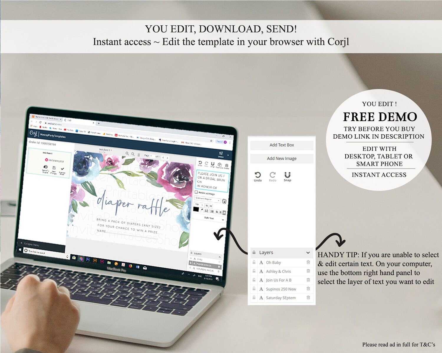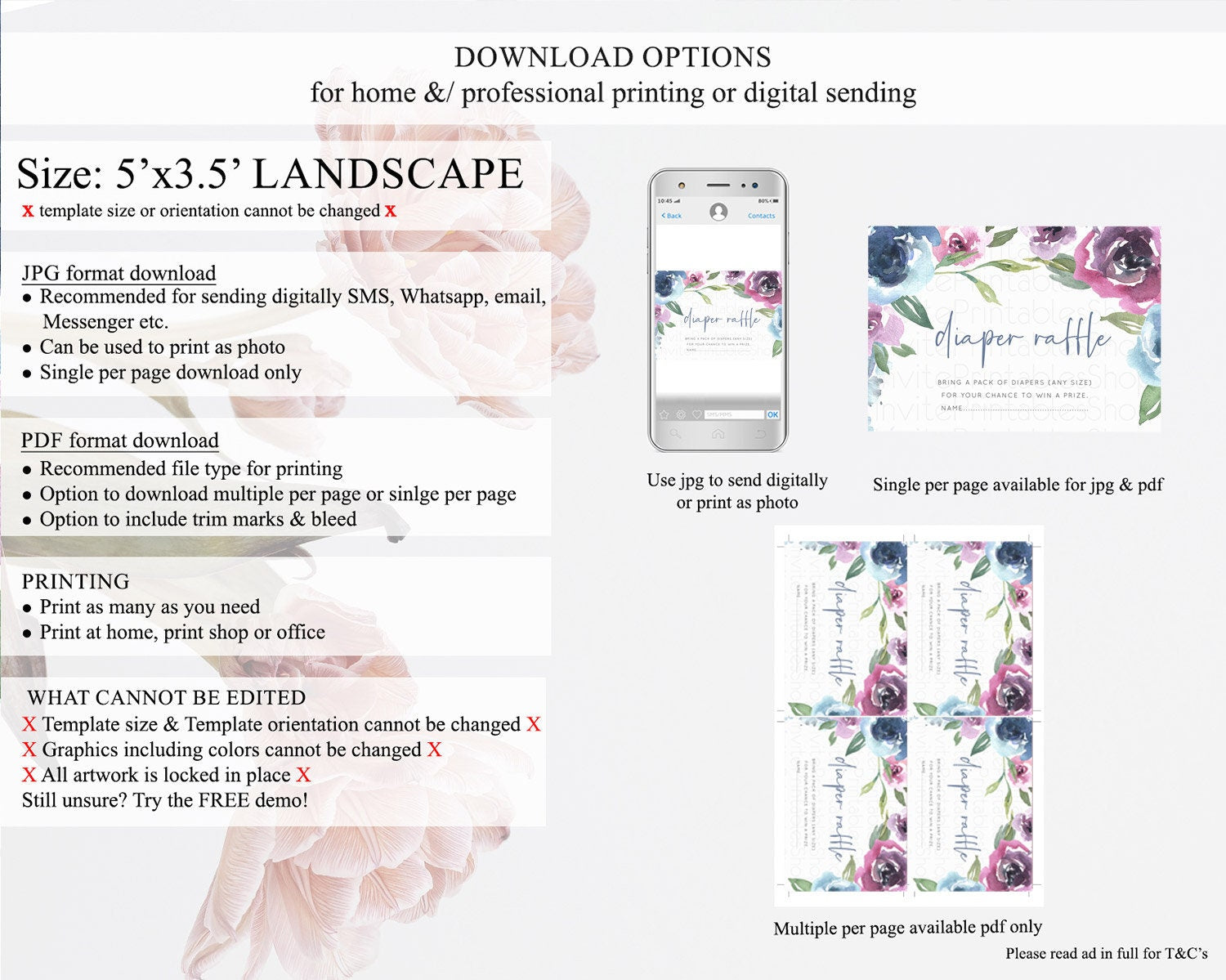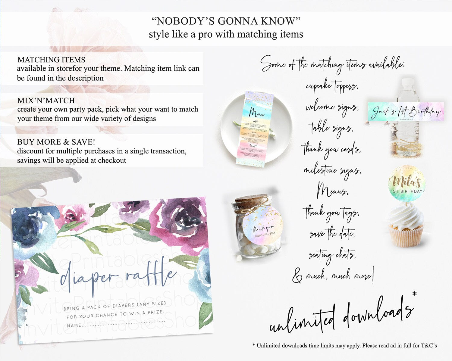 Secret Garden Diaper Raffle Card Boho Wildflower Diaper Raffle Insert Pastel Flower Garden Baby Shower Card Flower Raffle Game D10780