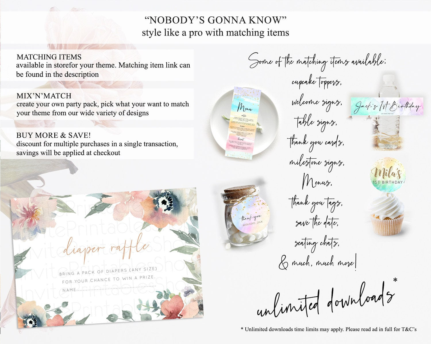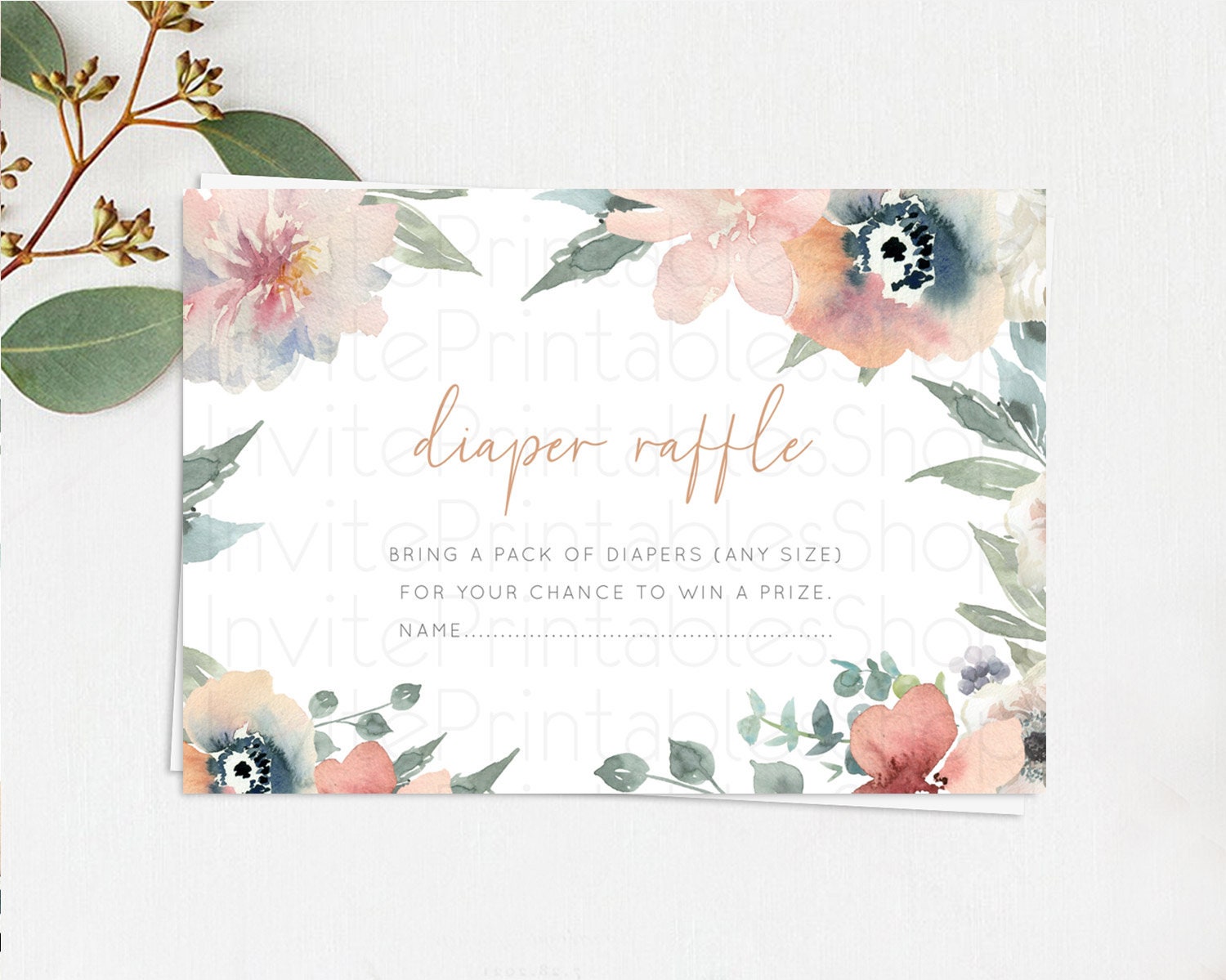 Secret Garden Diaper Raffle Card Boho Wildflower Diaper Raffle Insert Pastel Flower Garden Baby Shower Card Flower Raffle Game D10787