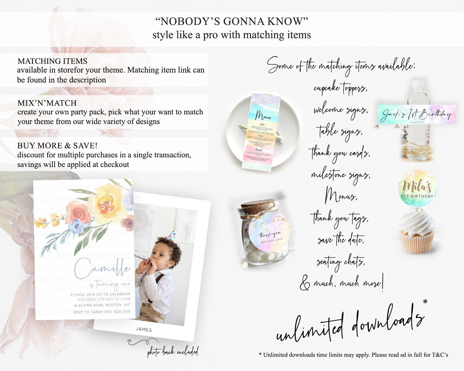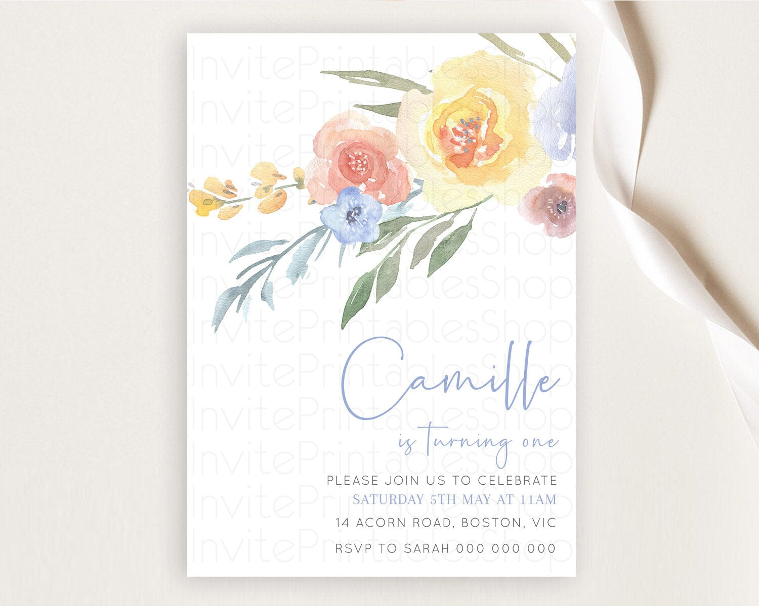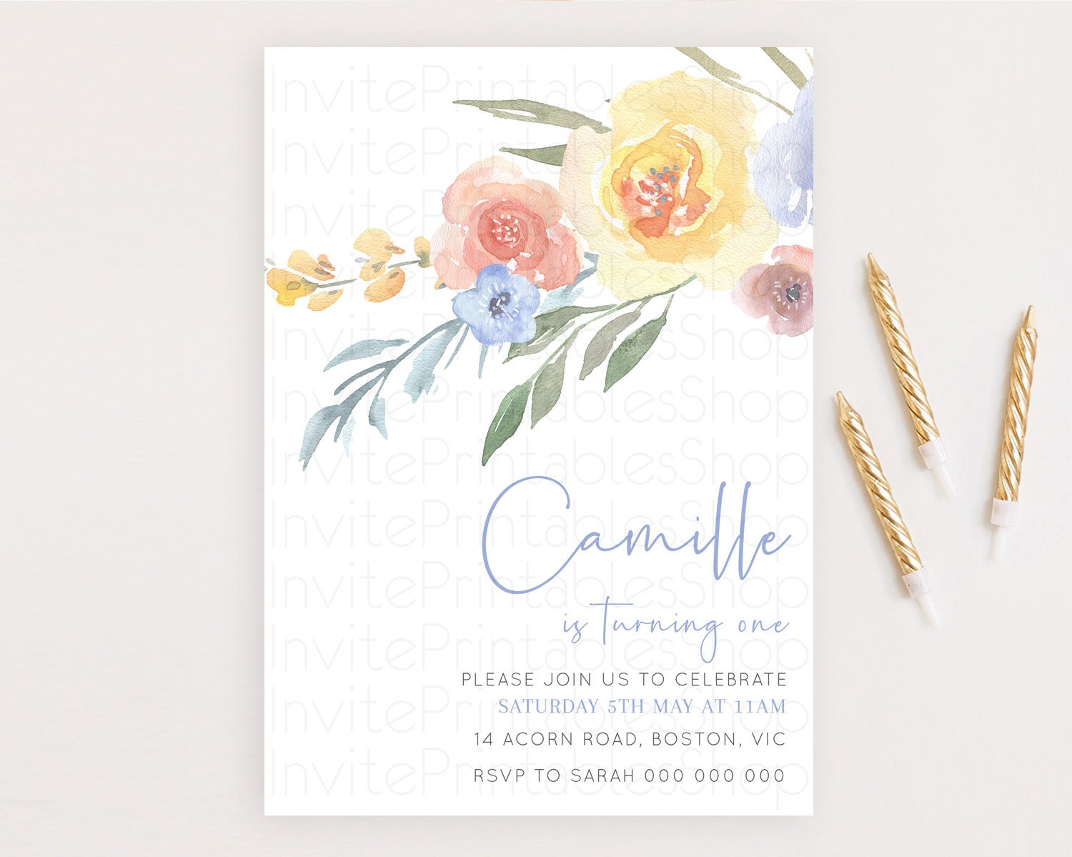 Secret Garden Invitation Wildflower Birthday Invitation Pastel Flowers Invite Enchanted Garden Boho Floral 3rd 2nd First Birthday D10186