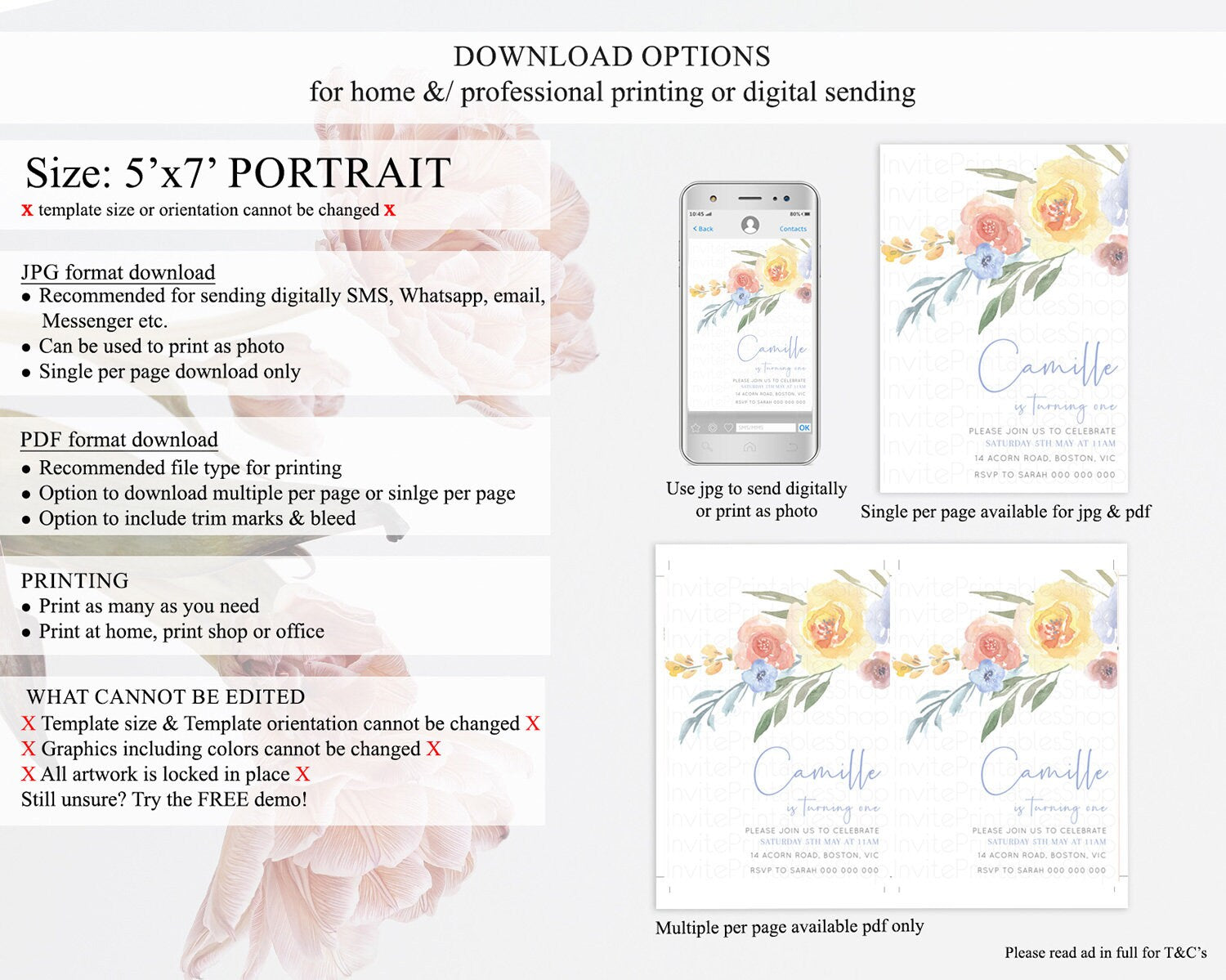 • Template size & orientation cannot be changed. Please use the demo link to confirm this product suits your needs.