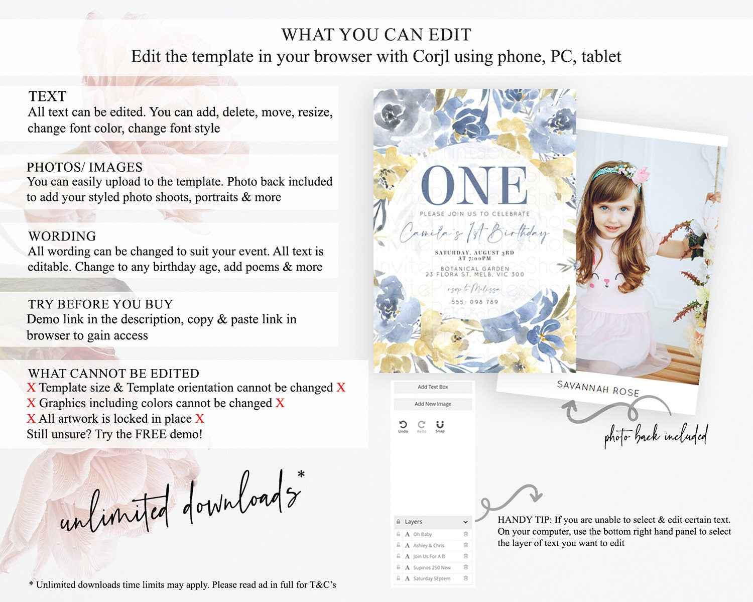 • Template size & orientation cannot be changed. Please use the demo link to confirm this product suits your needs.