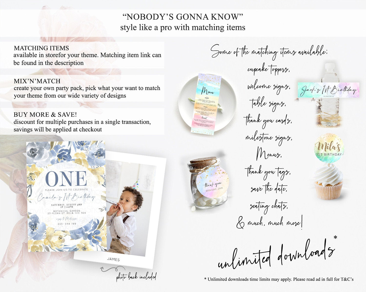 Secret Garden Invitation Wildflower Birthday Invitation Pastel Flowers Invite Enchanted Garden Boho Floral 3rd 2nd First Birthday D10189