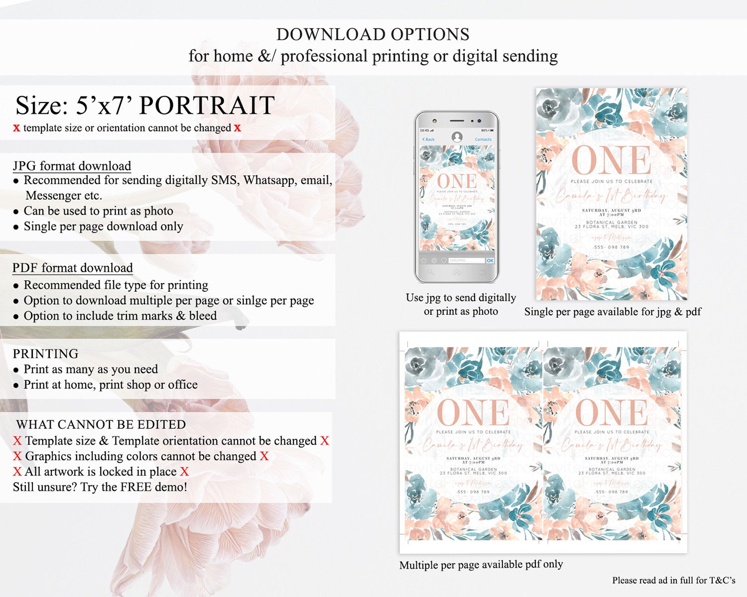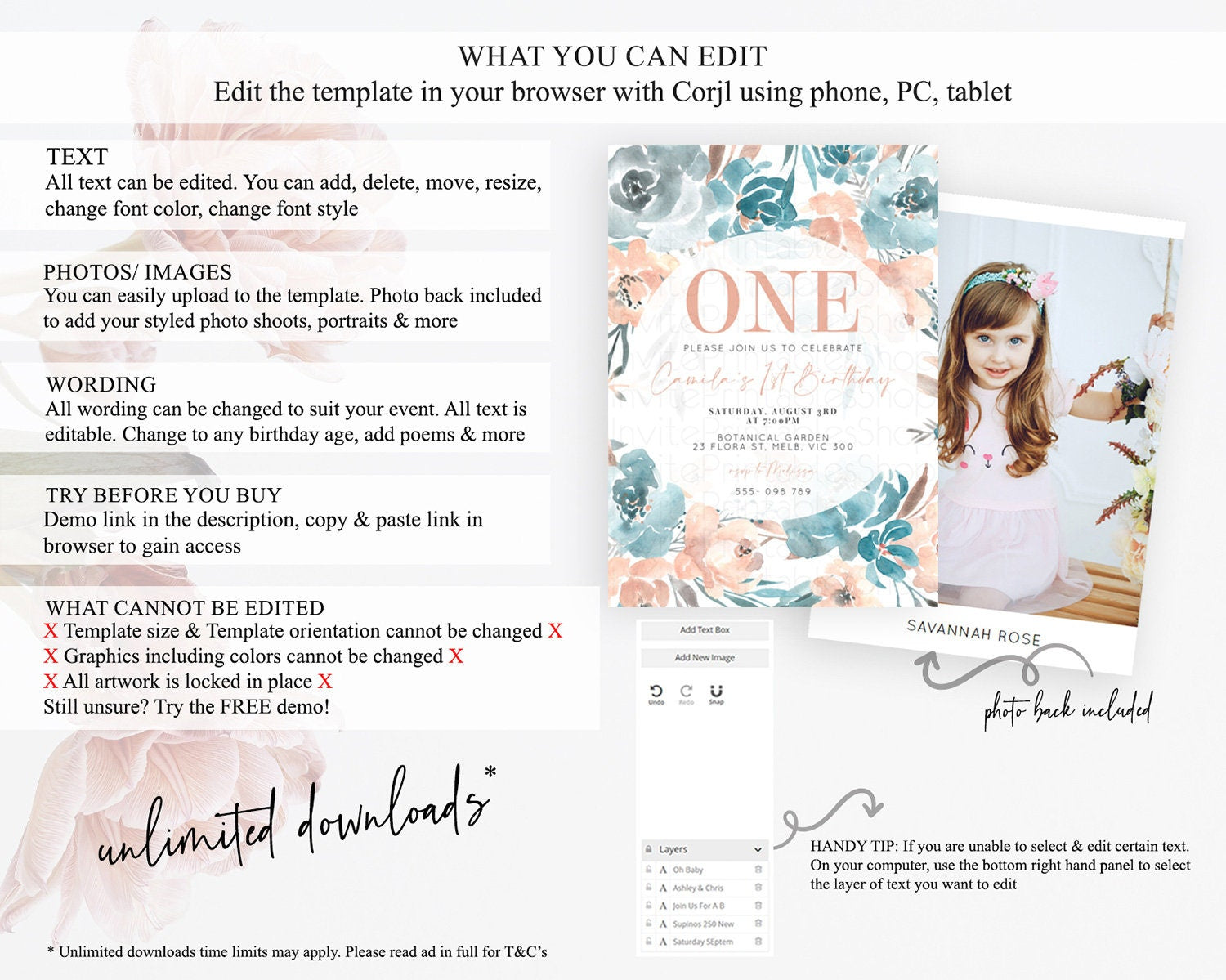 Secret Garden Invitation Wildflower Birthday Invitation Pastel Flowers Invite Enchanted Garden Boho Floral 3rd 2nd First Birthday D10190