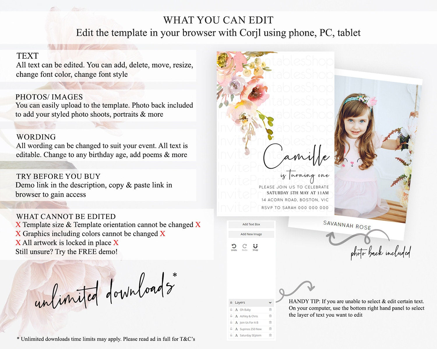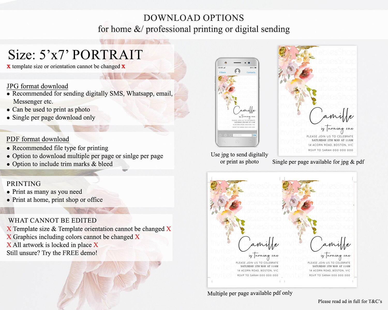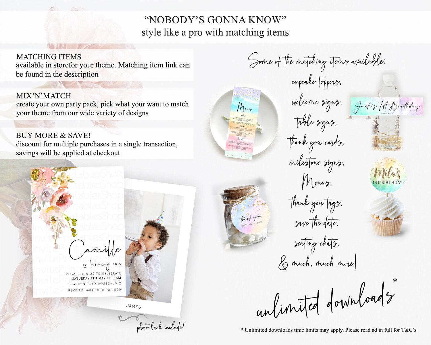 Secret Garden Invitation Wildflower Birthday Invitation Pastel Flowers Invite Enchanted Garden Boho Floral 3rd 2nd First Birthday D10194