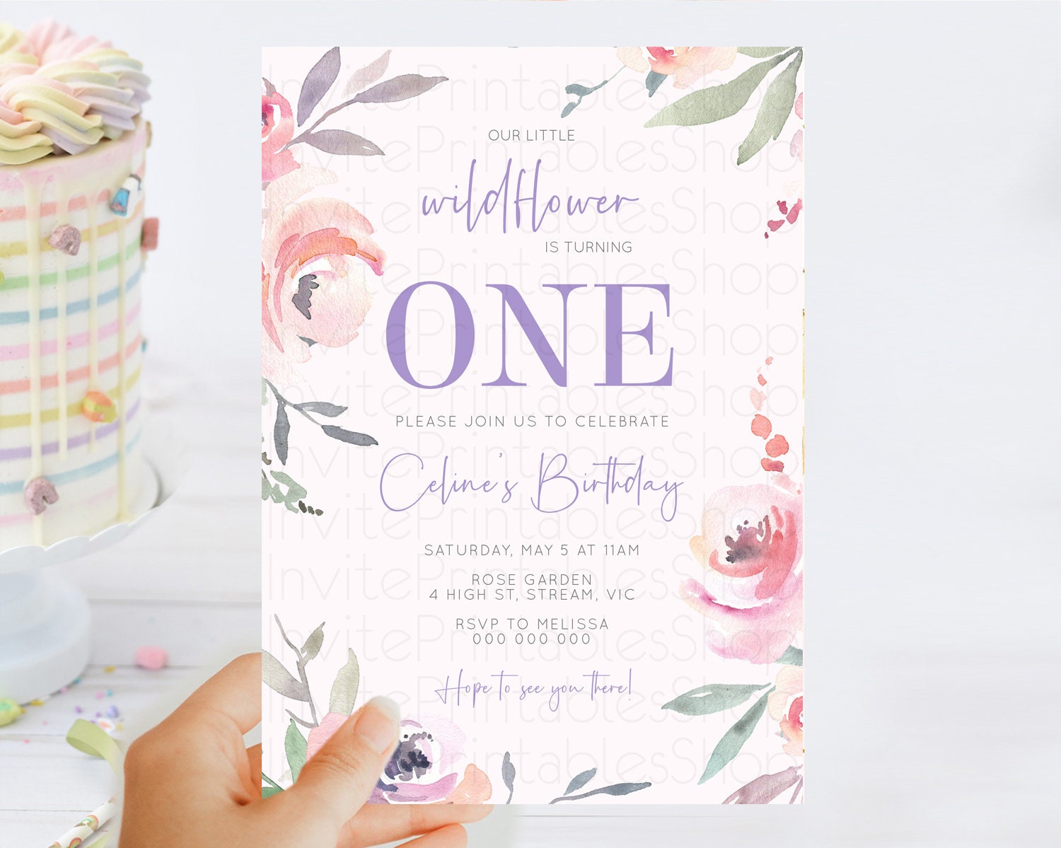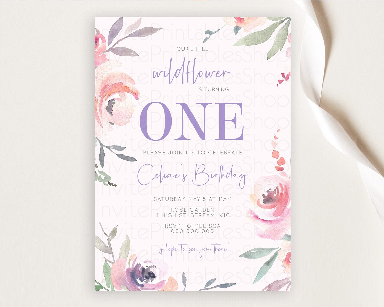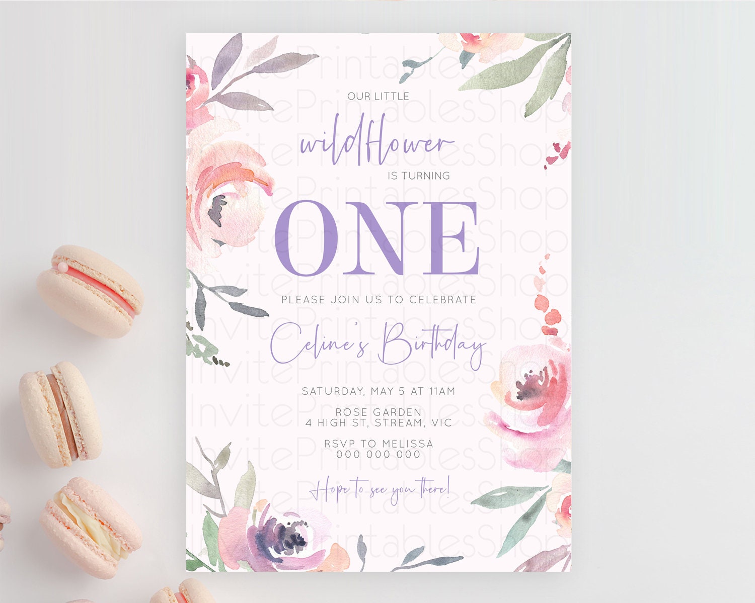 Secret Garden Invitation Wildflower Birthday Invitation Pastel Flowers Invite Enchanted Garden Boho Floral 3rd 2nd First Birthday D10198