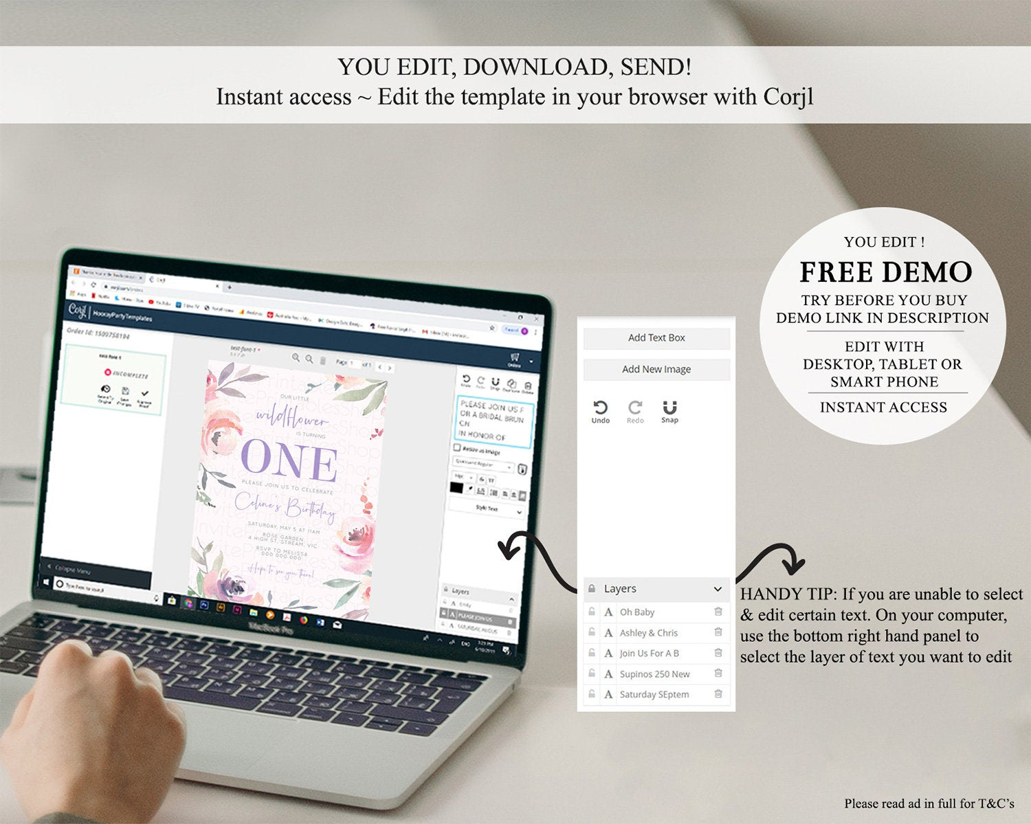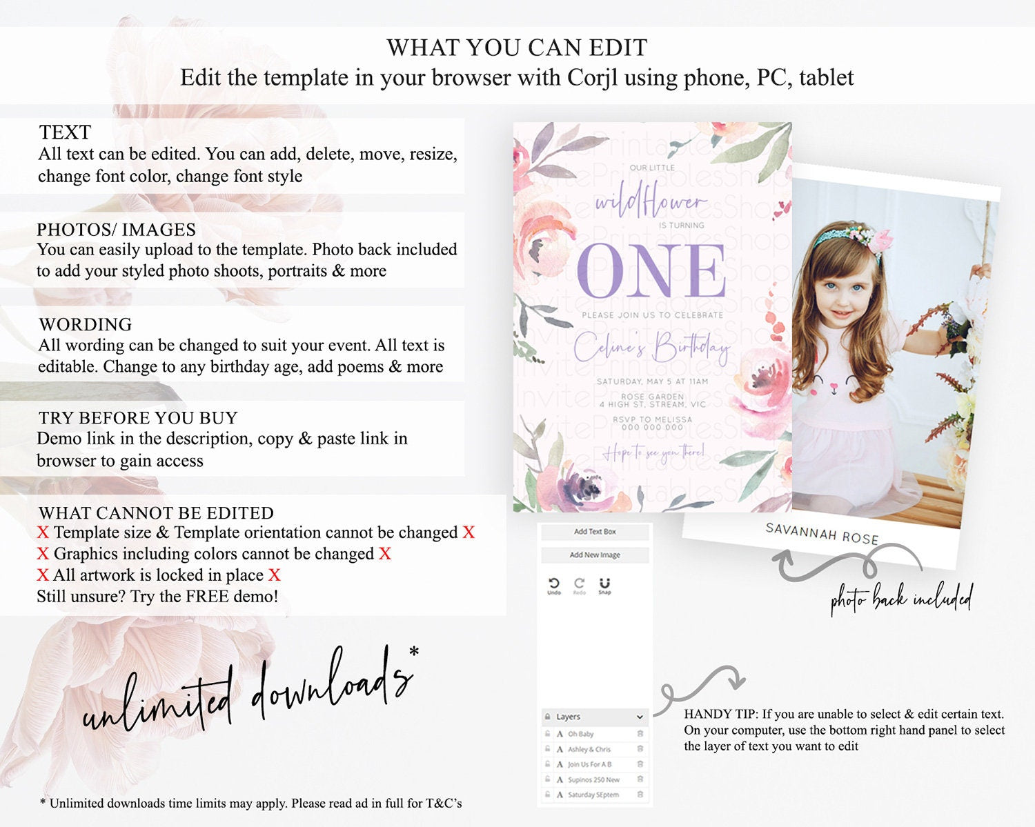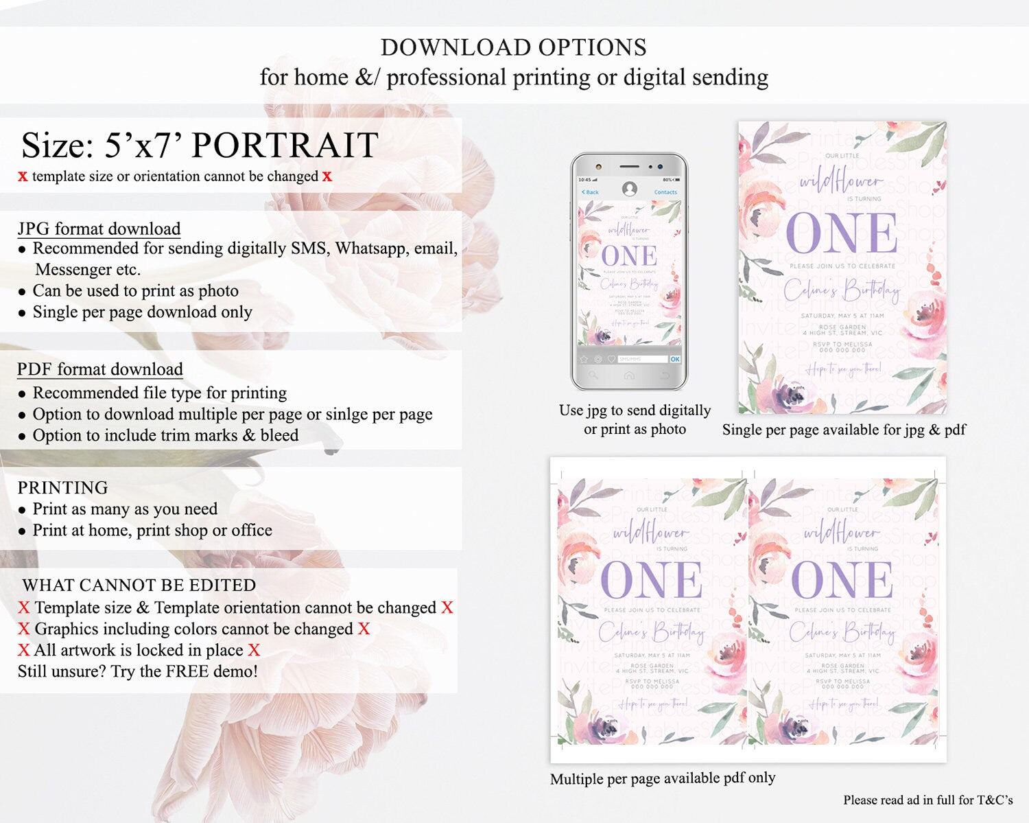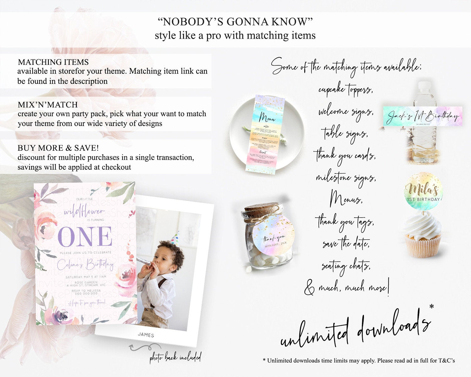 Secret Garden Invitation Wildflower Birthday Invitation Pastel Flowers Invite Enchanted Garden Boho Floral 3rd 2nd First Birthday D10198