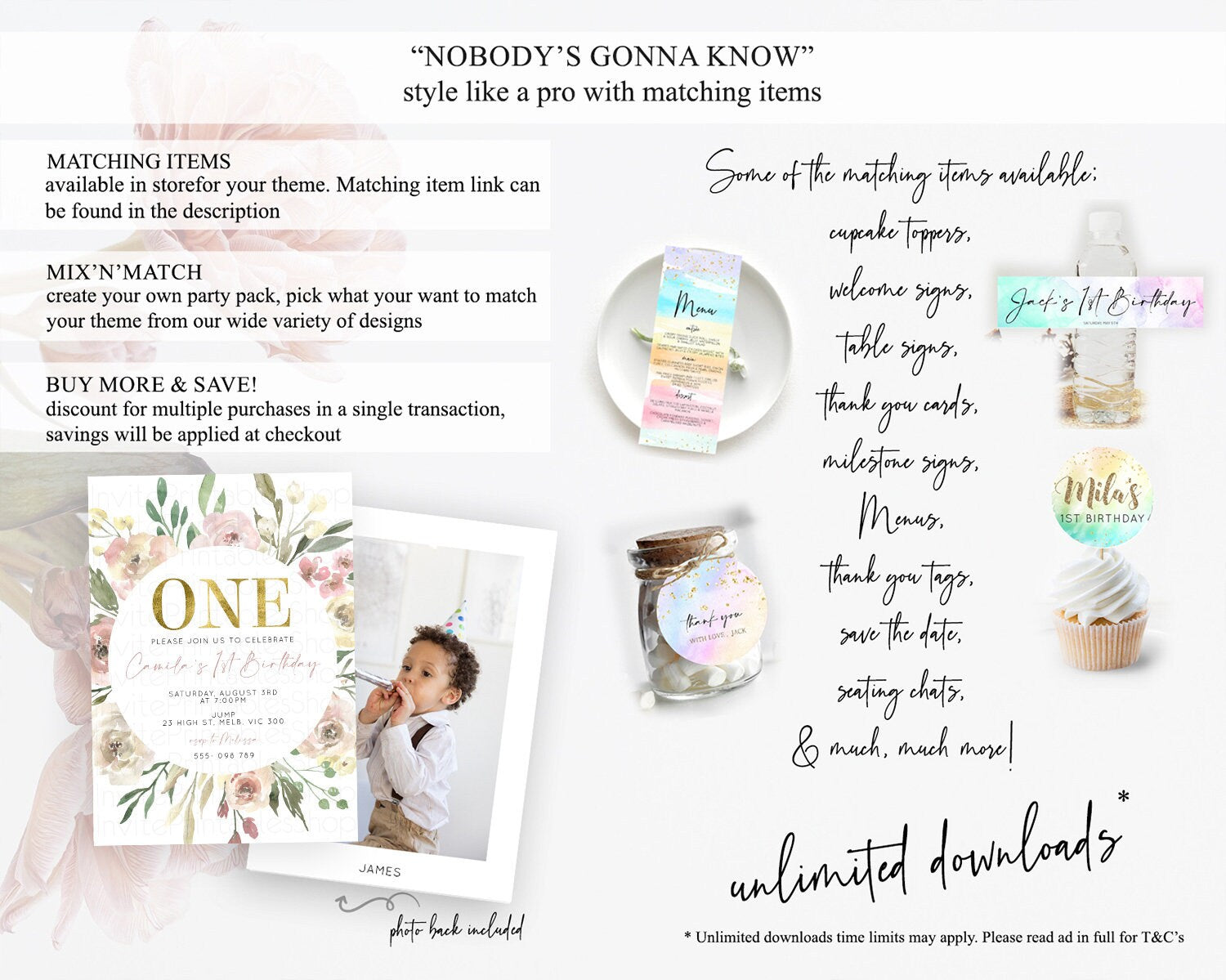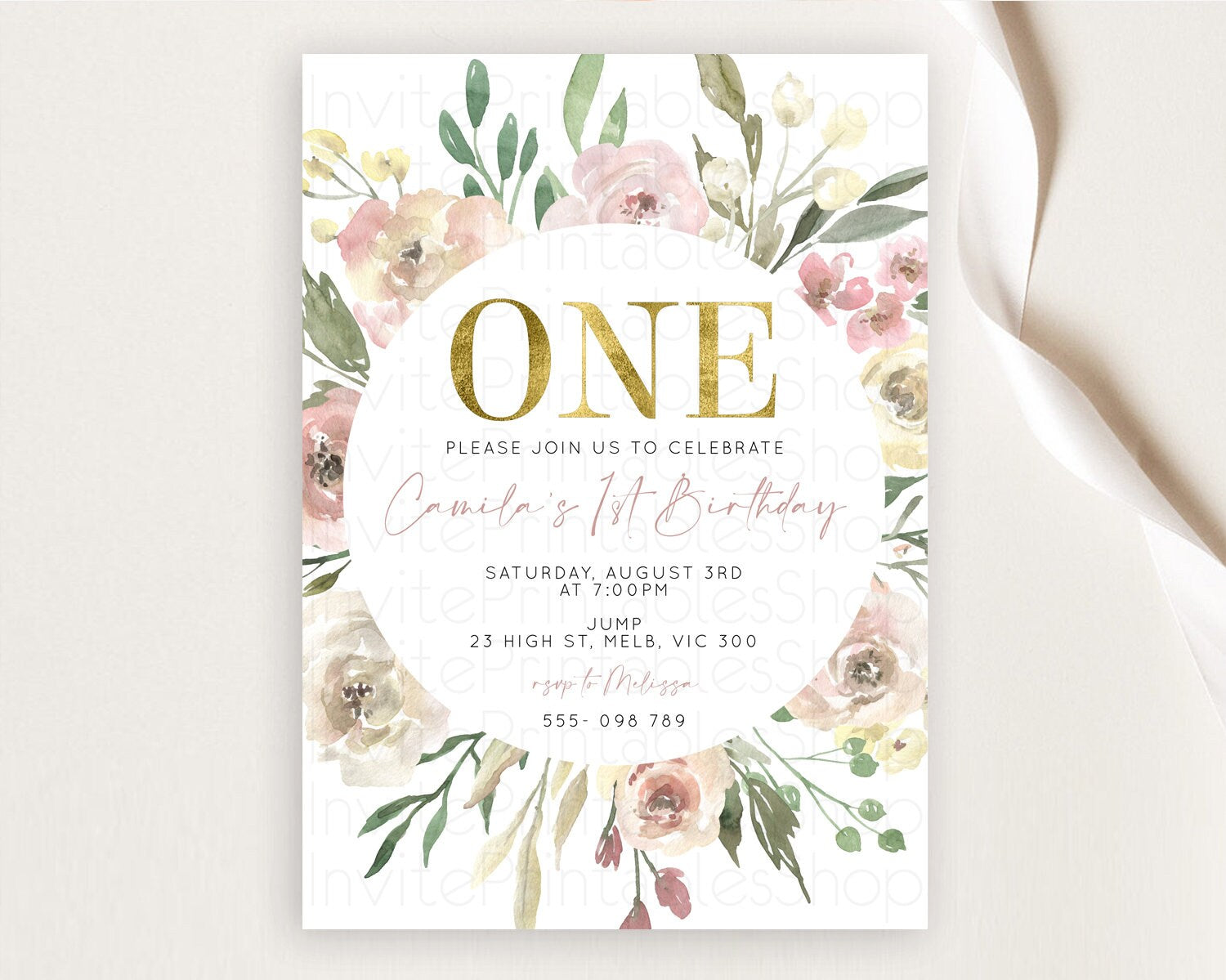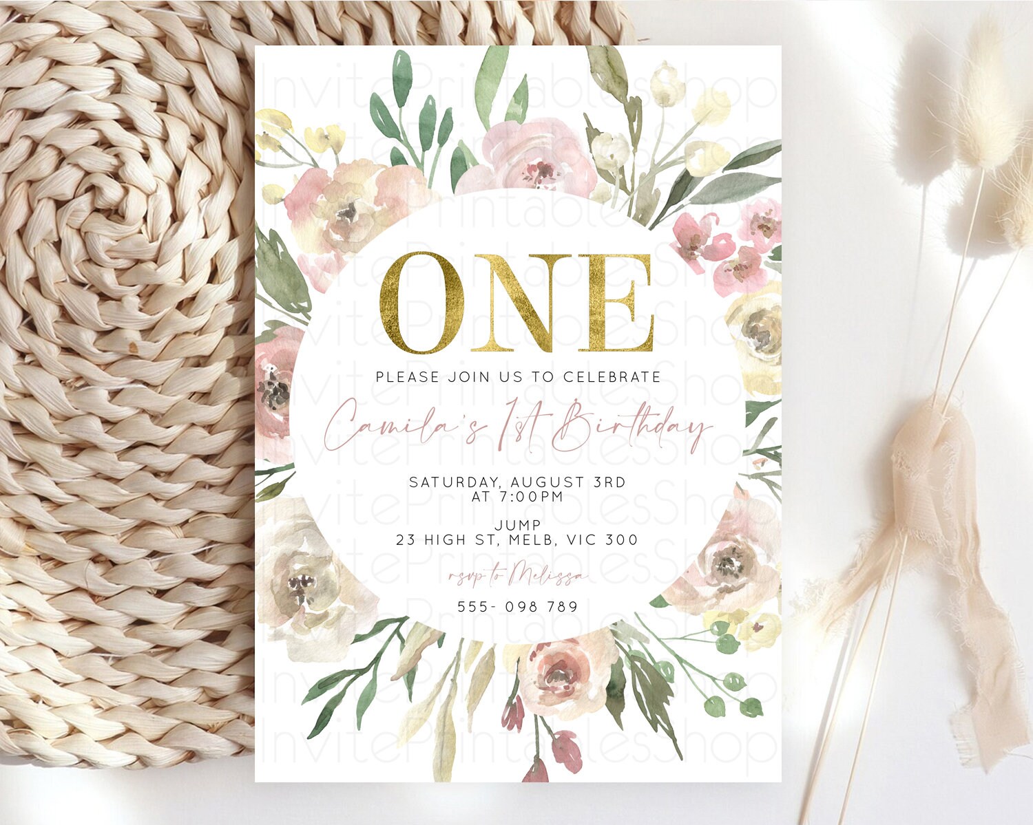 Secret Garden Invitation Wildflower Birthday Invitation Pastel Flowers Invite Enchanted Garden Boho Floral 3rd 2nd First Birthday D10202
