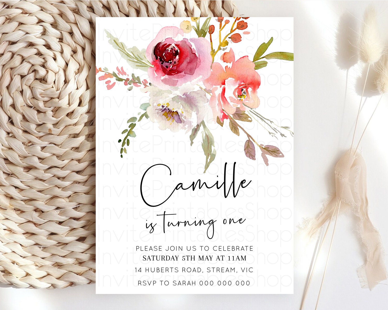 Secret Garden Invitation Wildflower Birthday Invitation Pastel Flowers Invite Enchanted Garden Boho Floral 3rd 2nd First Birthday D10243