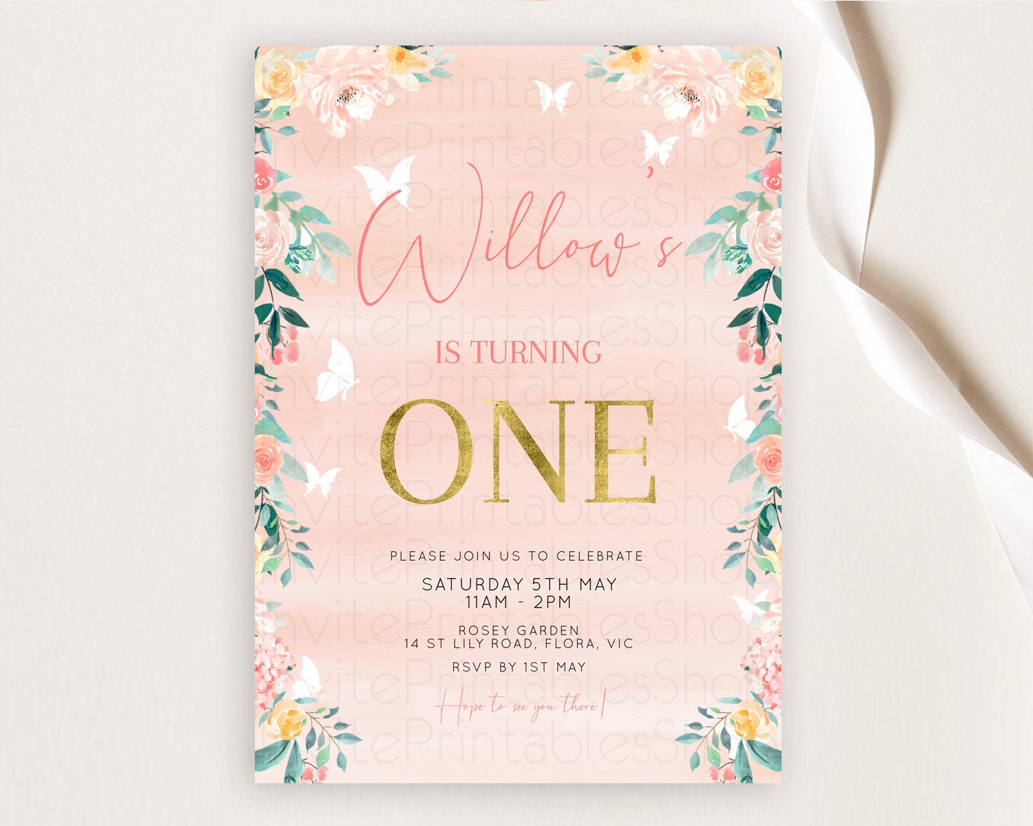 Secret Garden Invitation Wildflower Birthday Invitation Pastel Flowers Invite Enchanted Garden Boho Floral 3rd 2nd First Birthday D10245