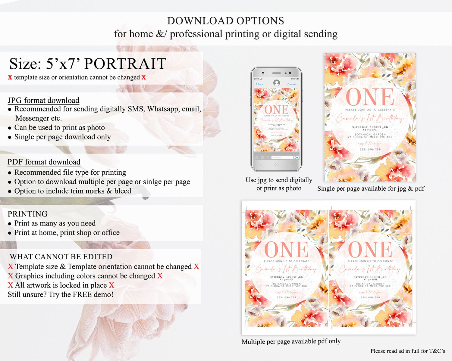 Secret Garden Invitation Wildflower Birthday Invitation Pastel Flowers Invite Enchanted Garden Boho Floral 3rd 2nd First Birthday D10280