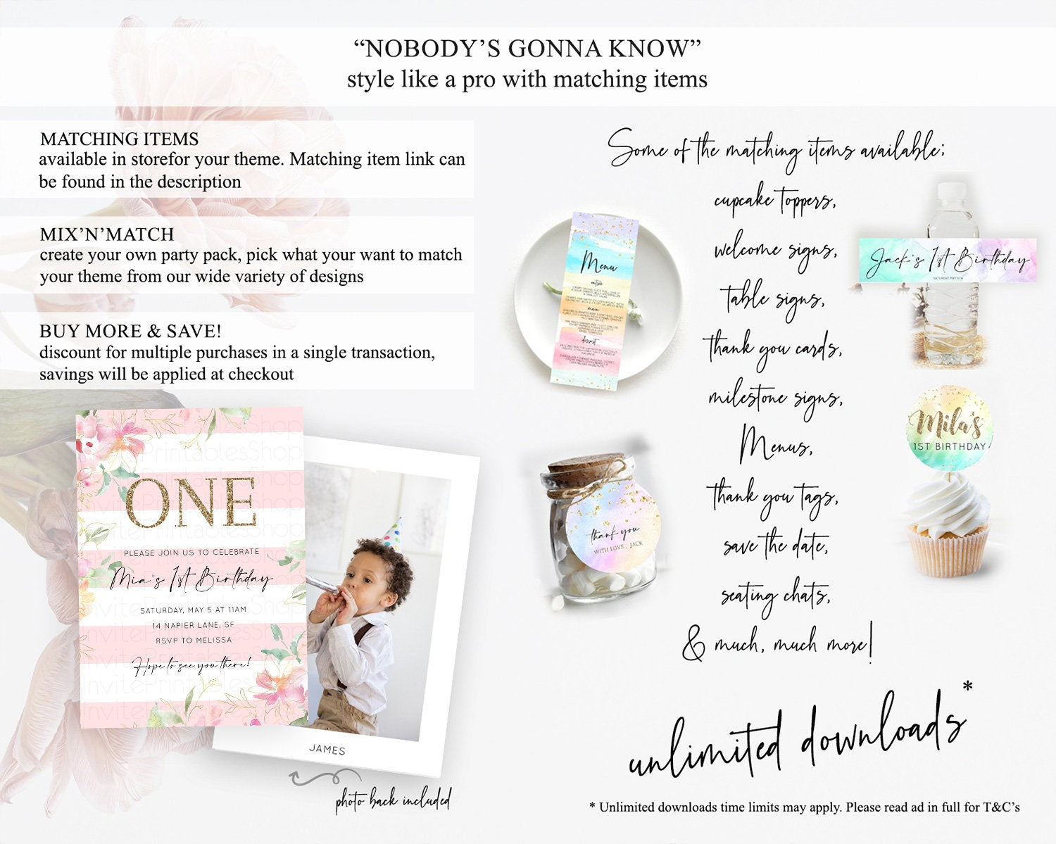 Secret Garden Invitation Wildflower Birthday Invitation Pastel Flowers Invite Enchanted Garden Boho Floral 3rd 2nd First Birthday D10301