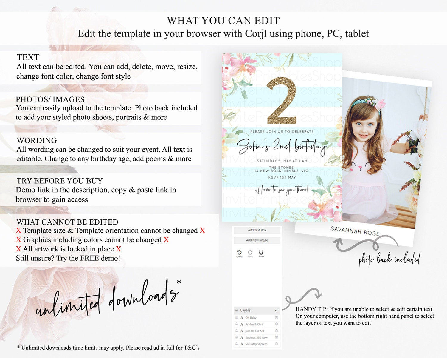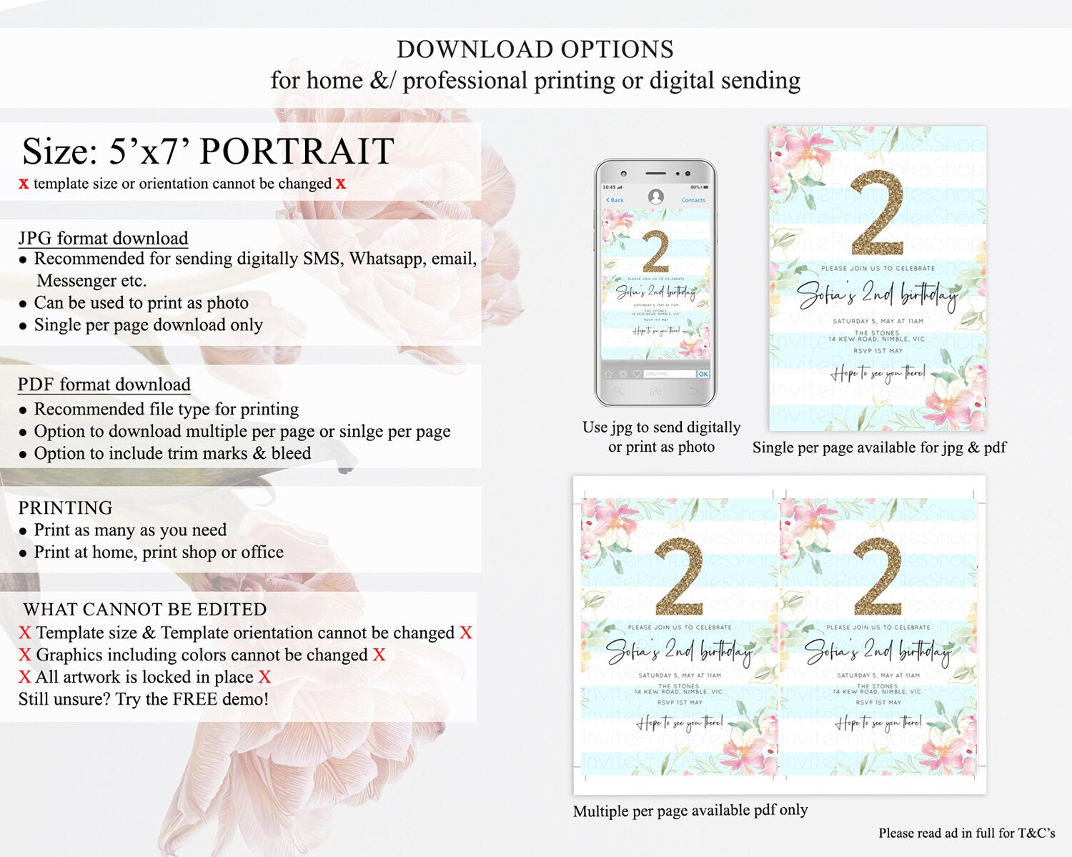 • Template size & orientation cannot be changed. Please use the demo link to confirm this product suits your needs.
