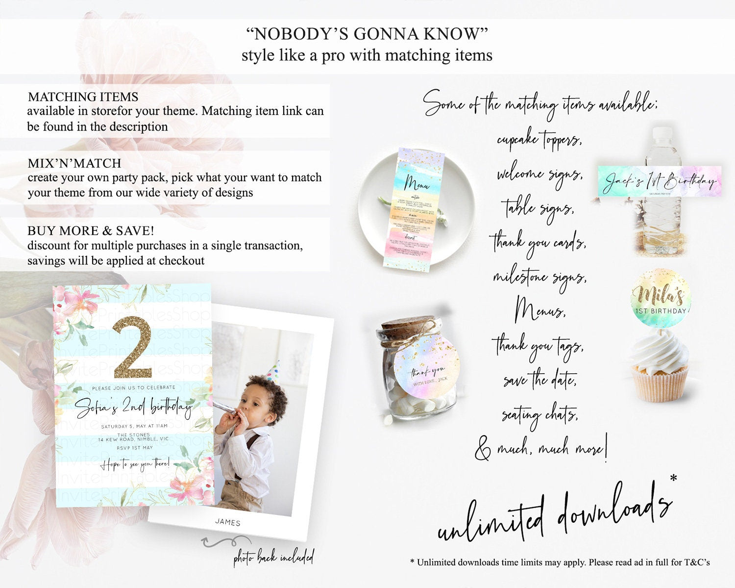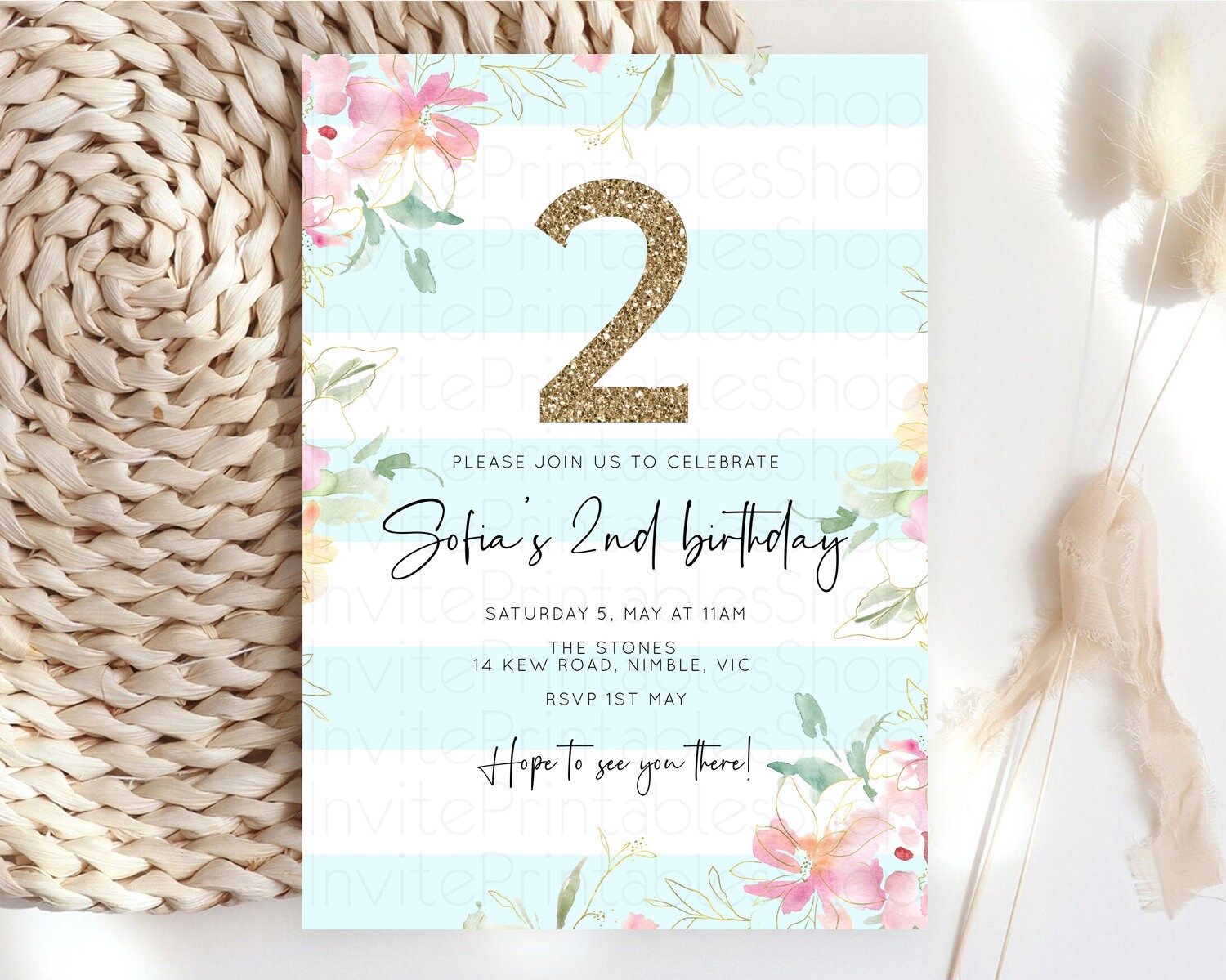 Secret Garden Invitation Wildflower Birthday Invitation Pastel Flowers Invite Enchanted Garden Boho Floral 3rd 2nd First Birthday D10303