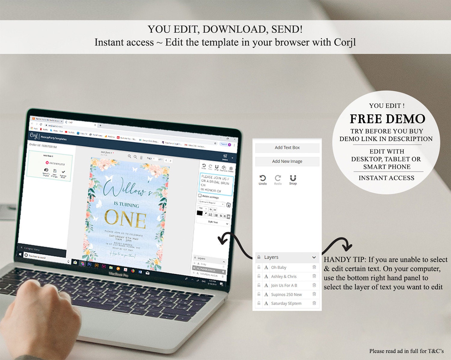 Secret Garden Invitation Wildflower Birthday Invitation Pastel Flowers Invite Enchanted Garden Boho Floral 3rd 2nd First Birthday D10337
