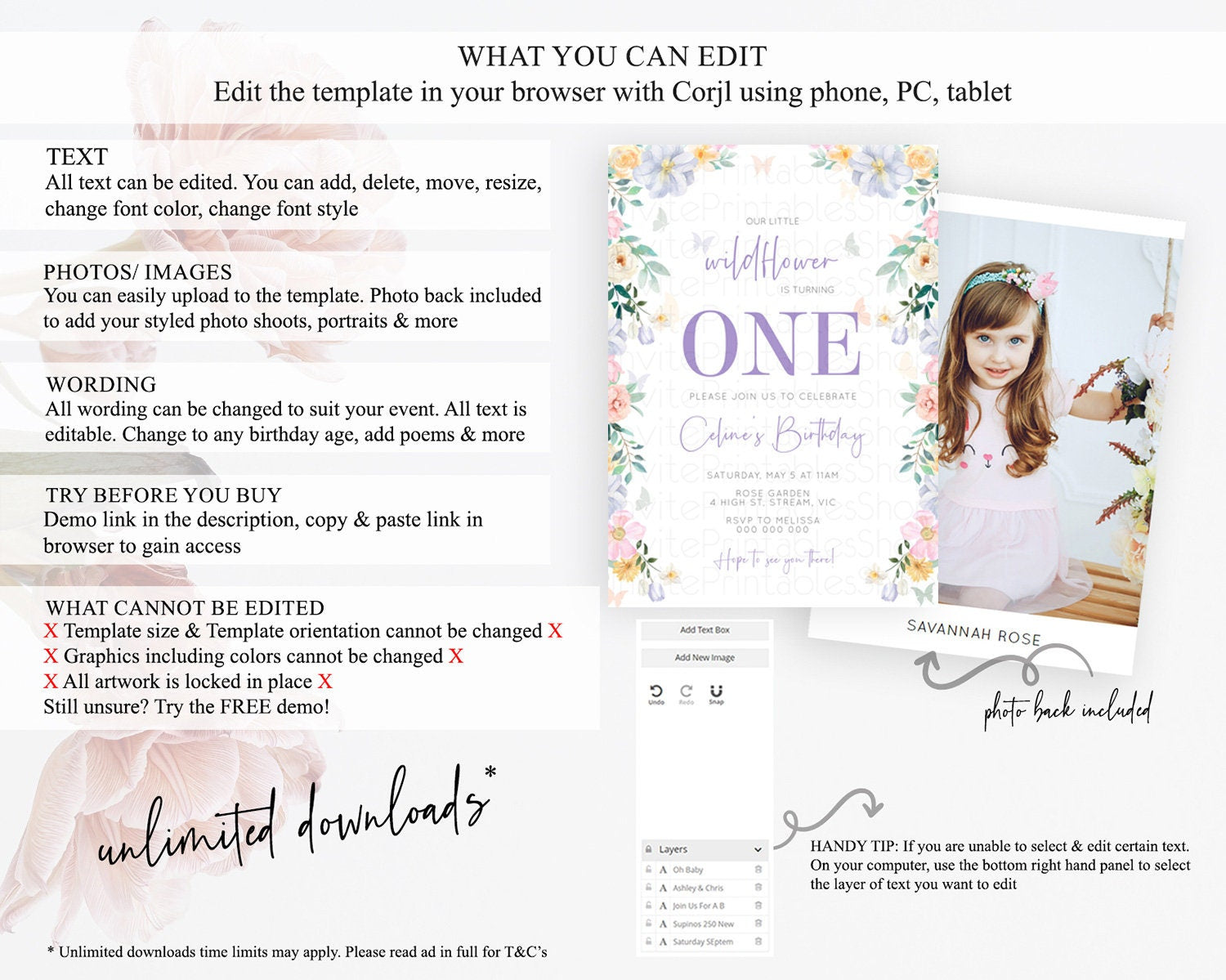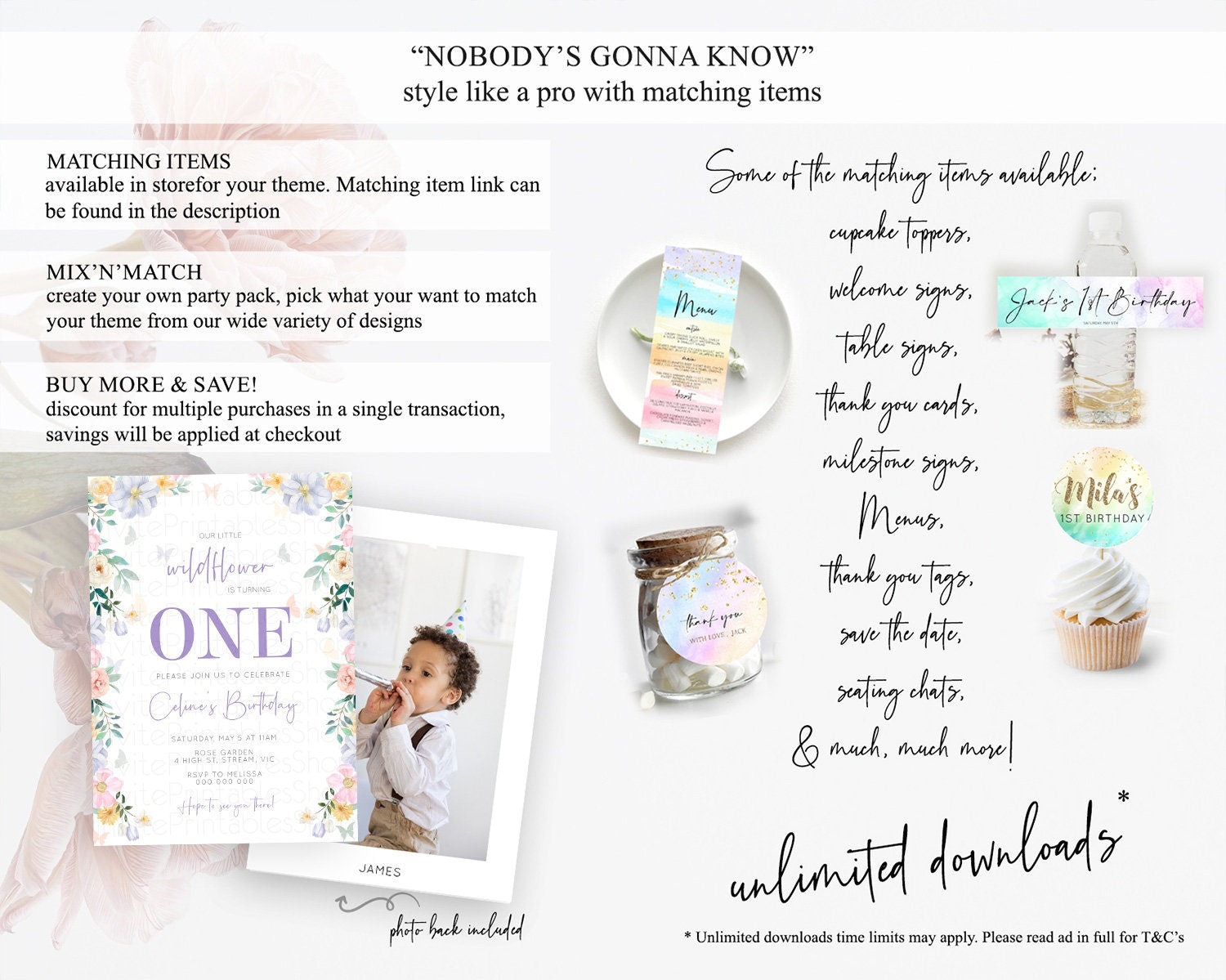 Secret Garden Invitation Wildflower Birthday Invitation Pastel Flowers Invite Enchanted Garden Boho Floral 3rd 2nd First Birthday D10472