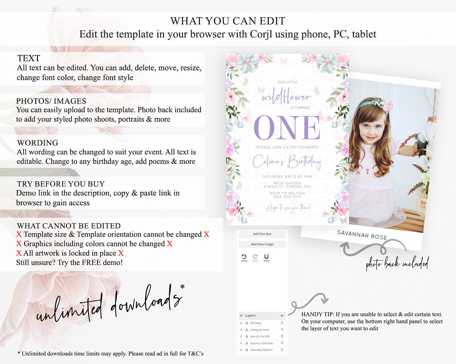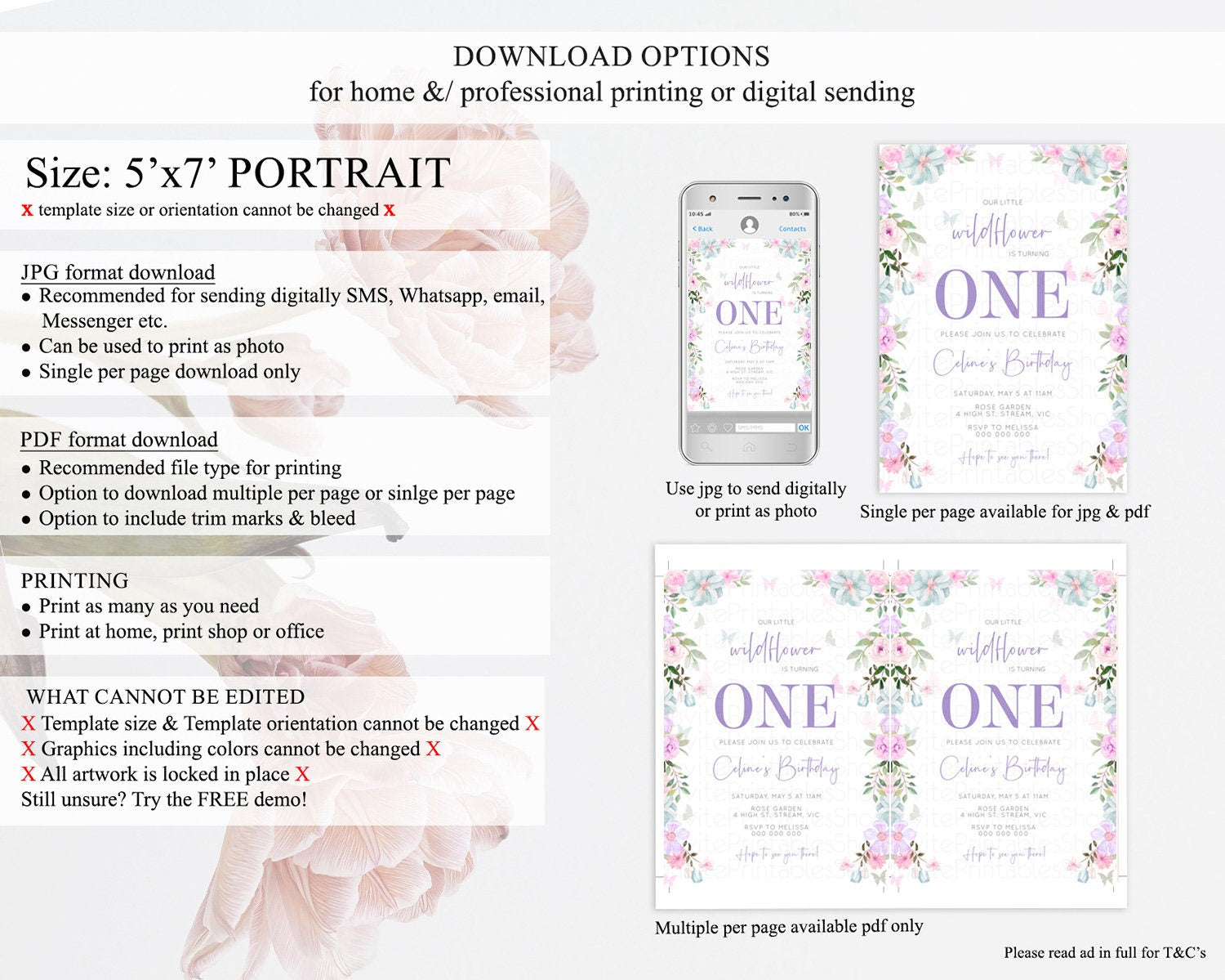 Secret Garden Invitation Wildflower Birthday Invitation Pastel Flowers Invite Enchanted Garden Boho Floral 3rd 2nd First Birthday D10494