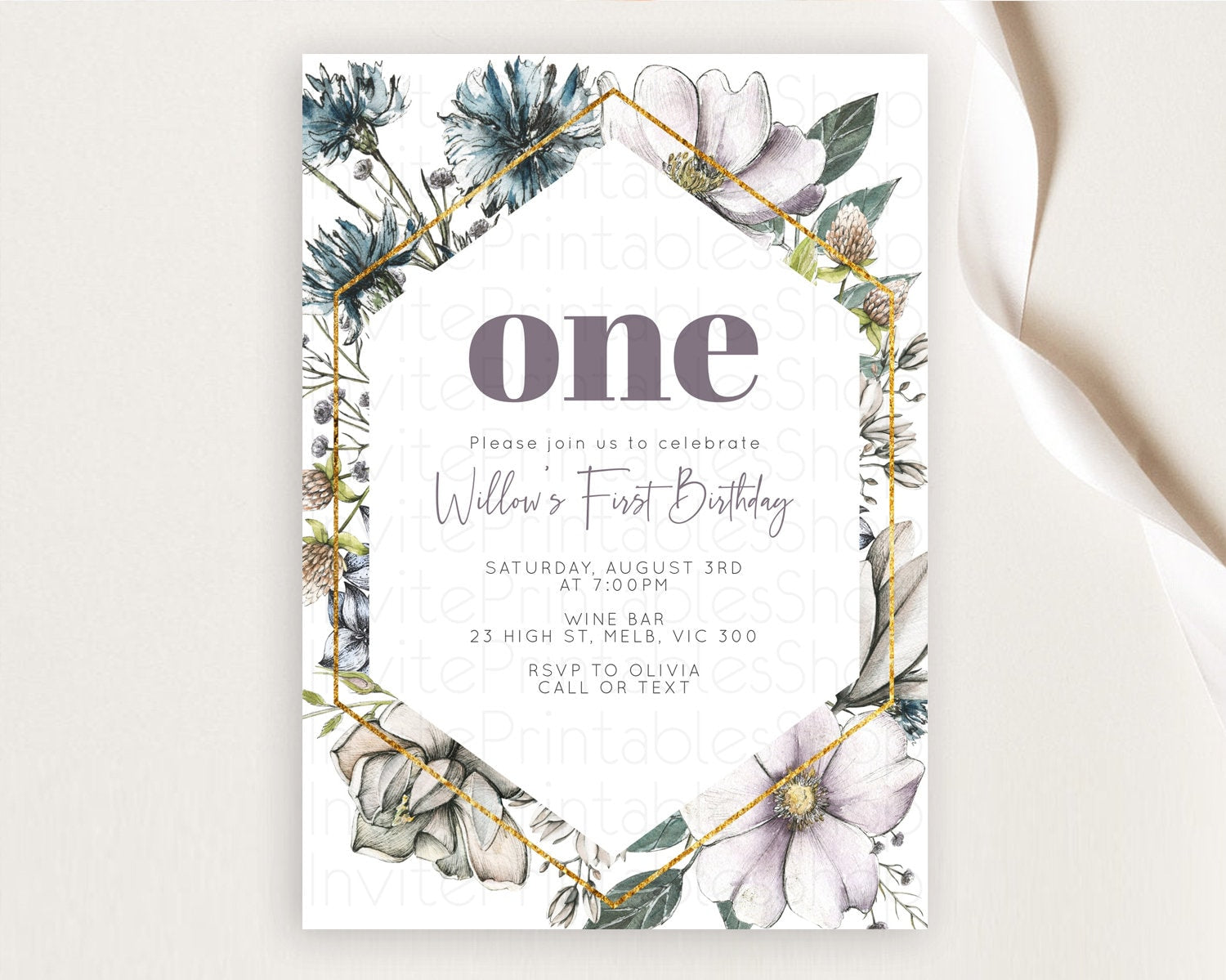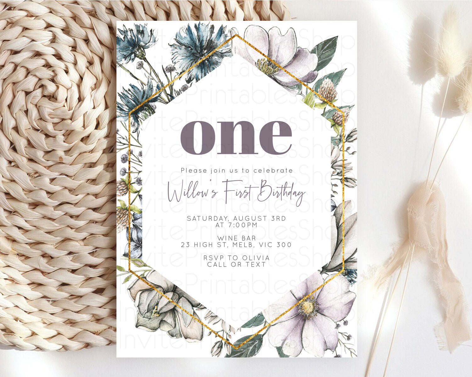 Secret Garden Invitation Wildflower Birthday Invitation Pastel Flowers Invite Enchanted Garden Boho Floral 3rd 2nd First Birthday D10501