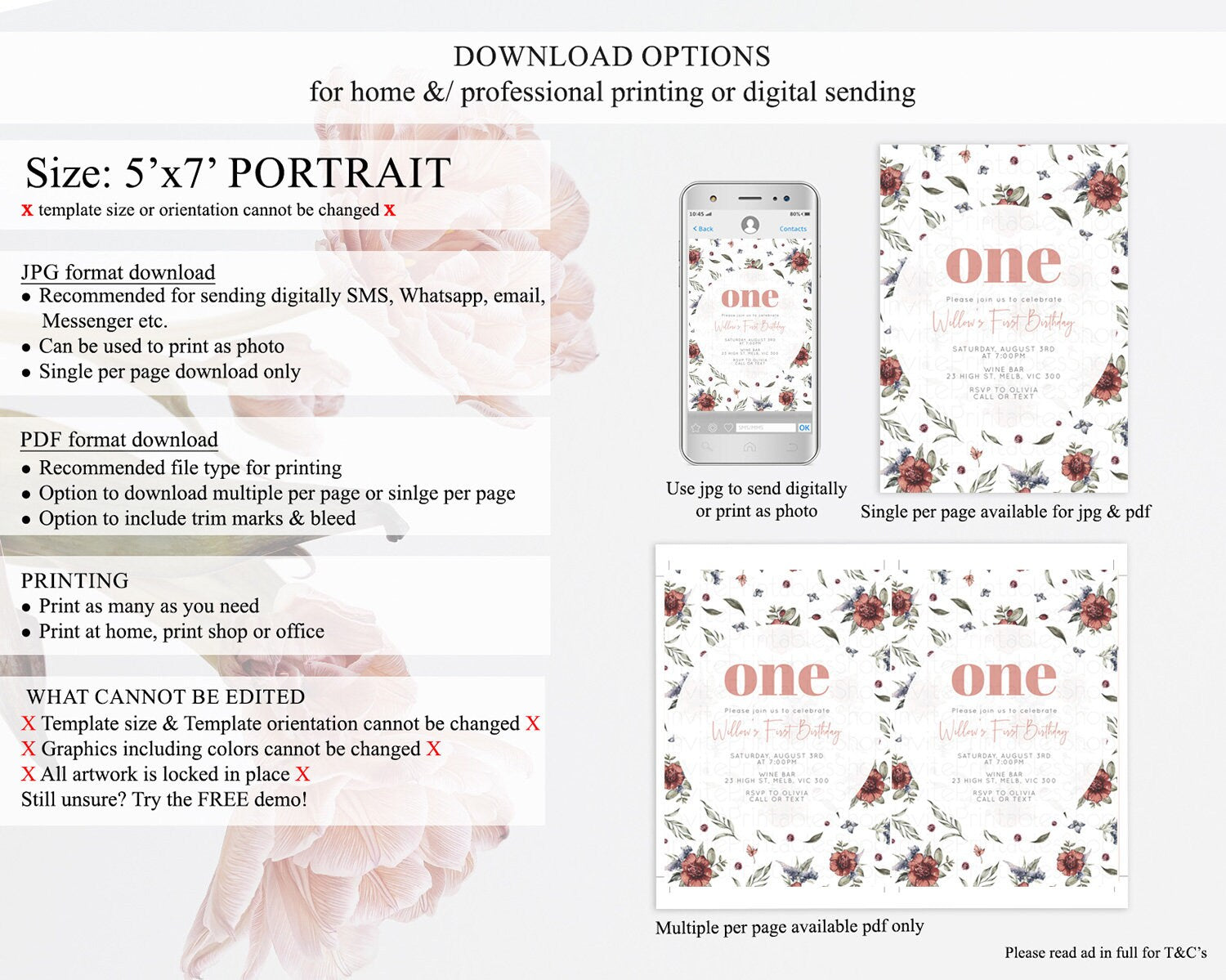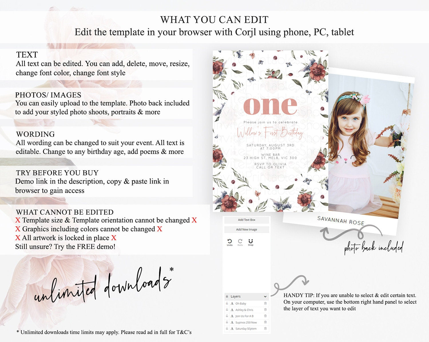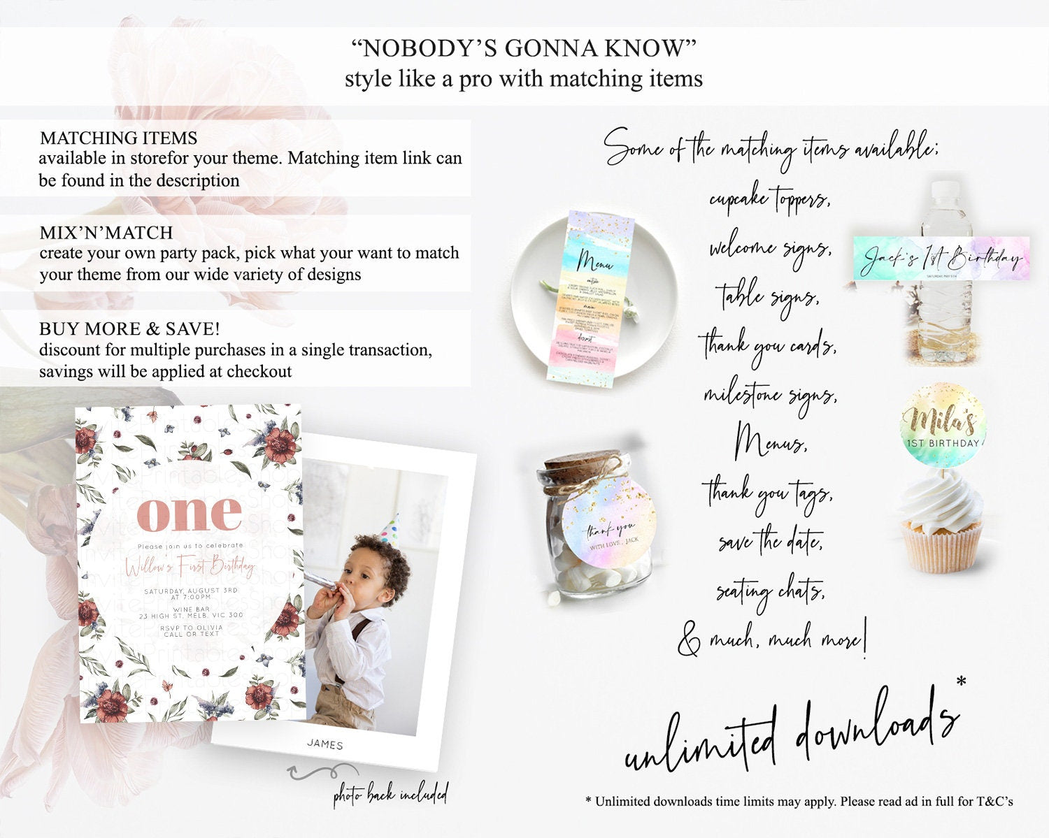 Secret Garden Invitation Wildflower Birthday Invitation Pastel Flowers Invite Enchanted Garden Boho Floral 3rd 2nd First Birthday D10503