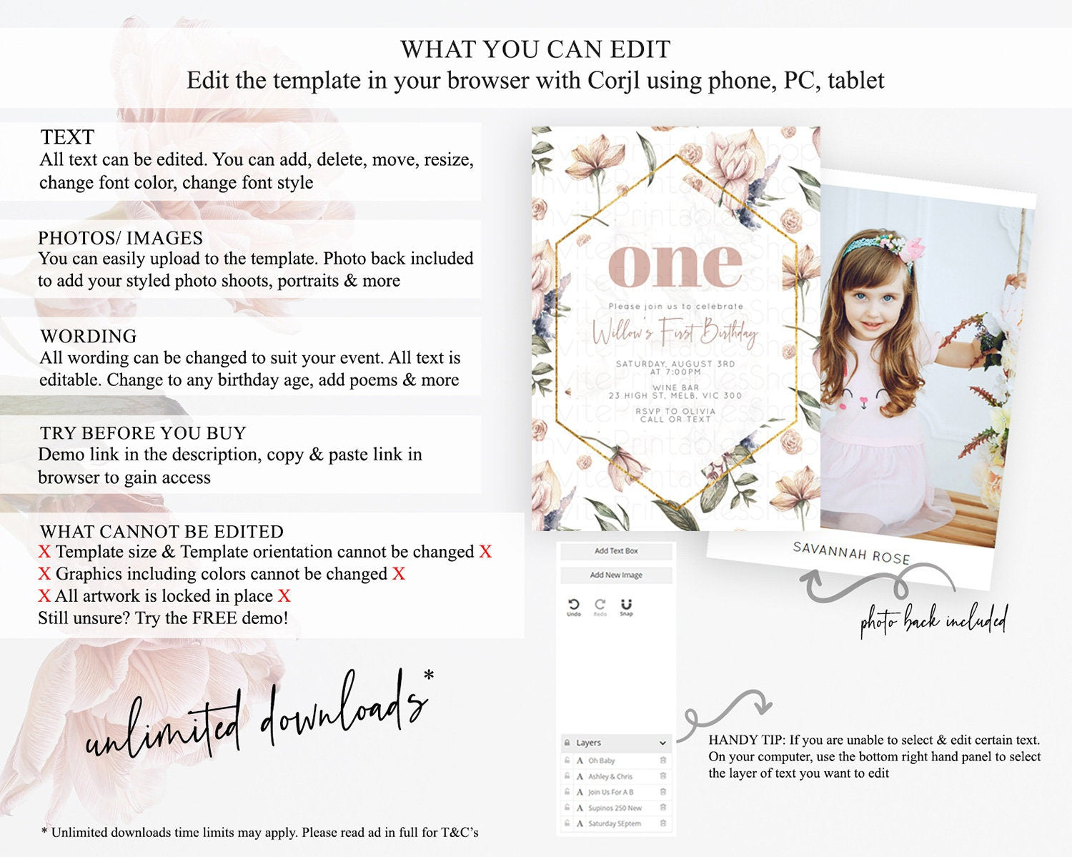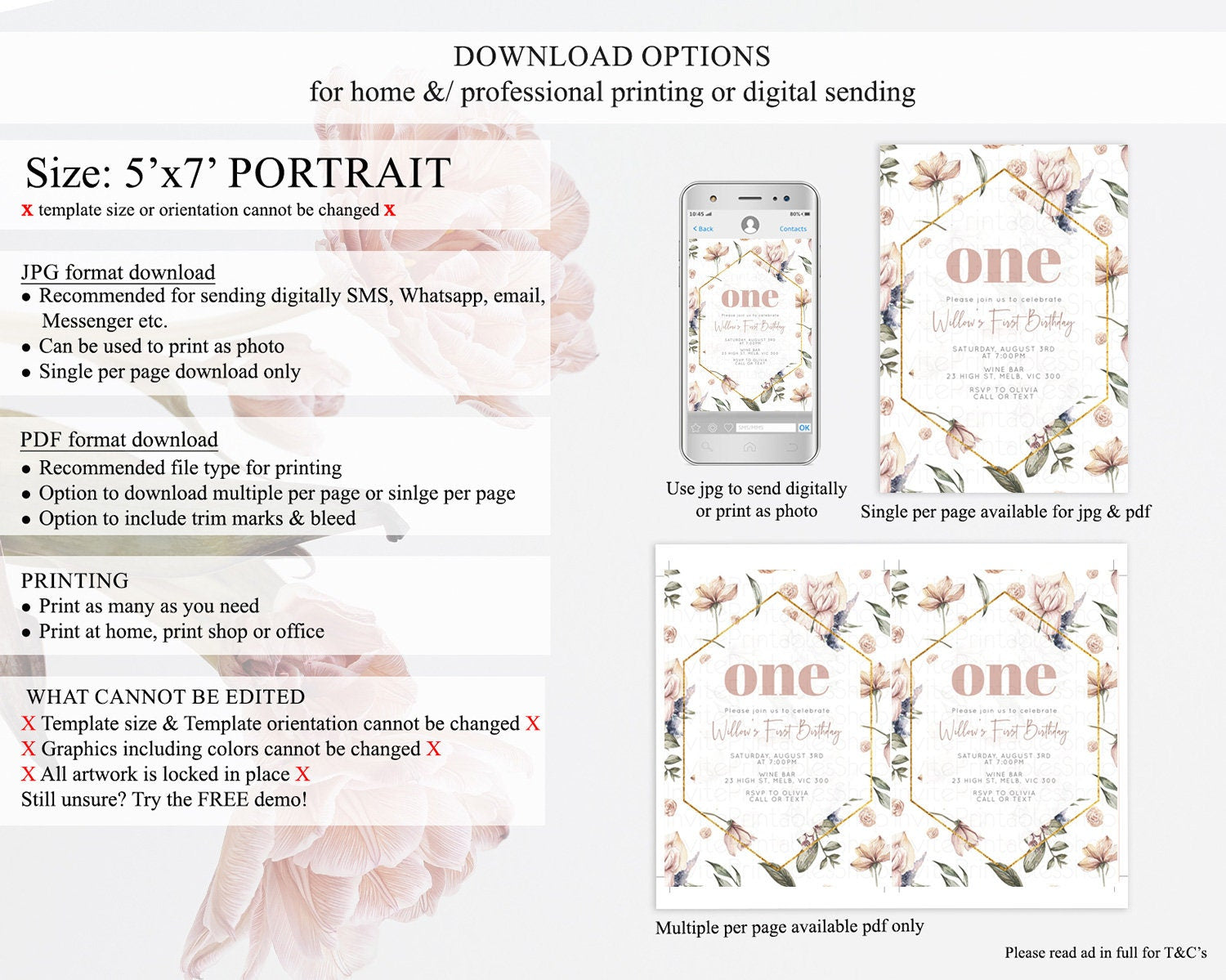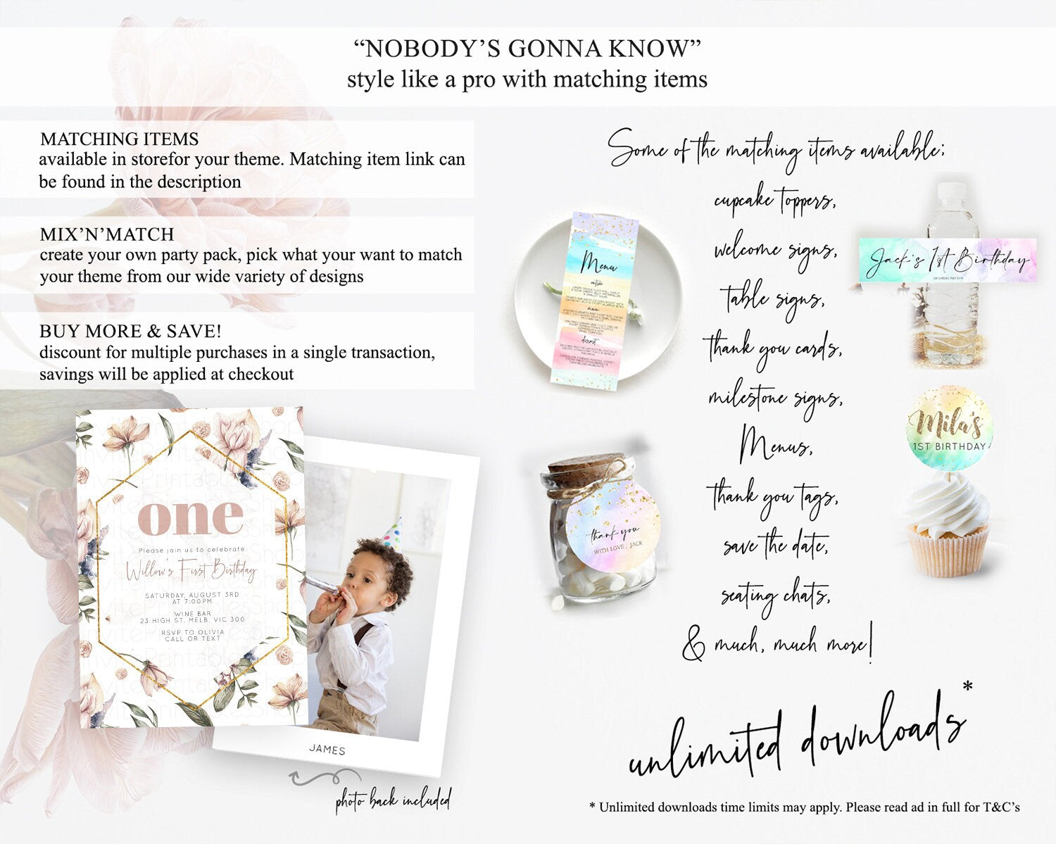 Secret Garden Invitation Wildflower Birthday Invitation Pastel Flowers Invite Enchanted Garden Boho Floral 3rd 2nd First Birthday D10504