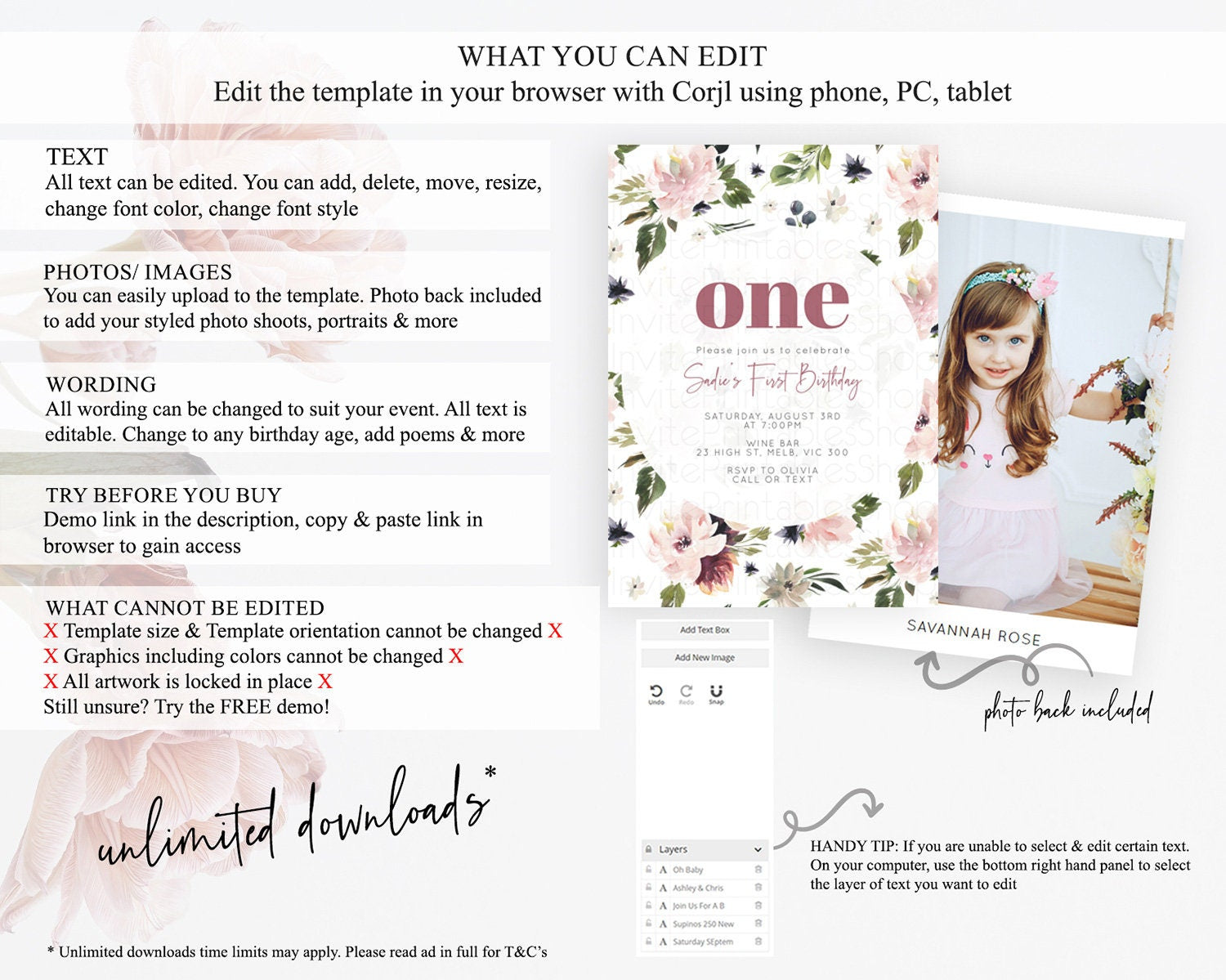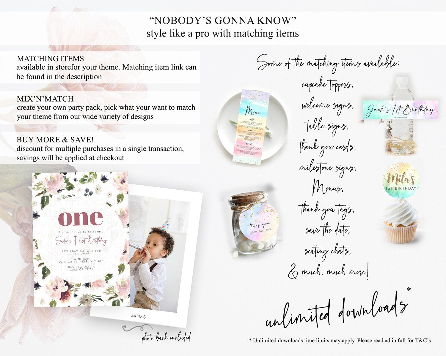 Secret Garden Invitation Wildflower Birthday Invitation Pastel Flowers Invite Enchanted Garden Boho Floral 3rd 2nd First Birthday D10538