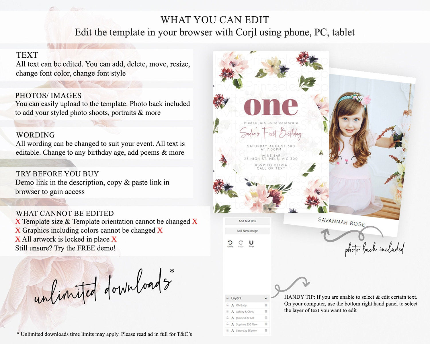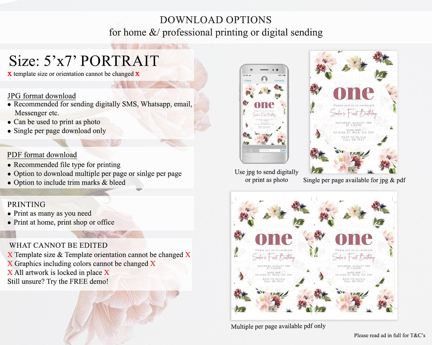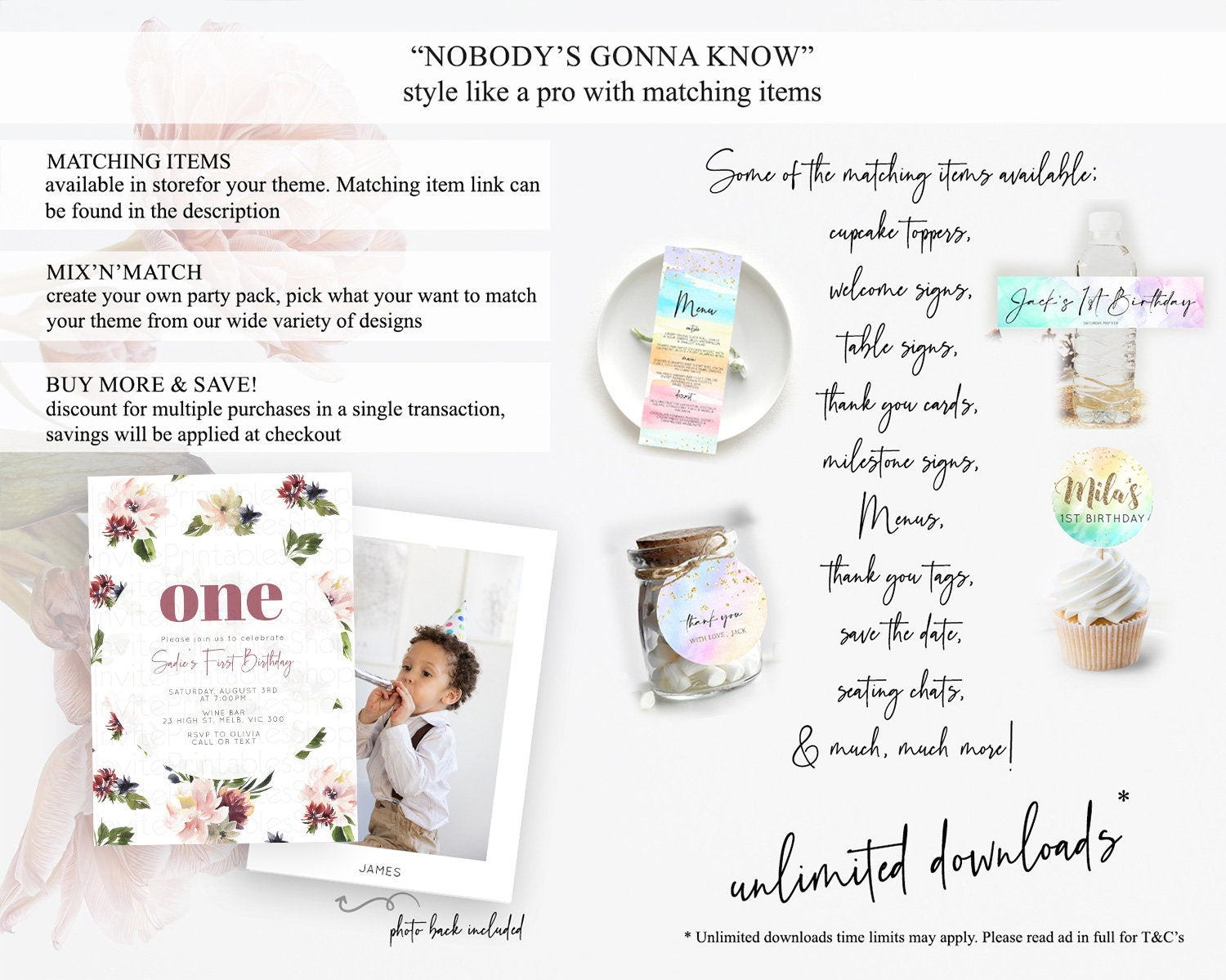 Secret Garden Invitation Wildflower Birthday Invitation Pastel Flowers Invite Enchanted Garden Boho Floral 3rd 2nd First Birthday D10538