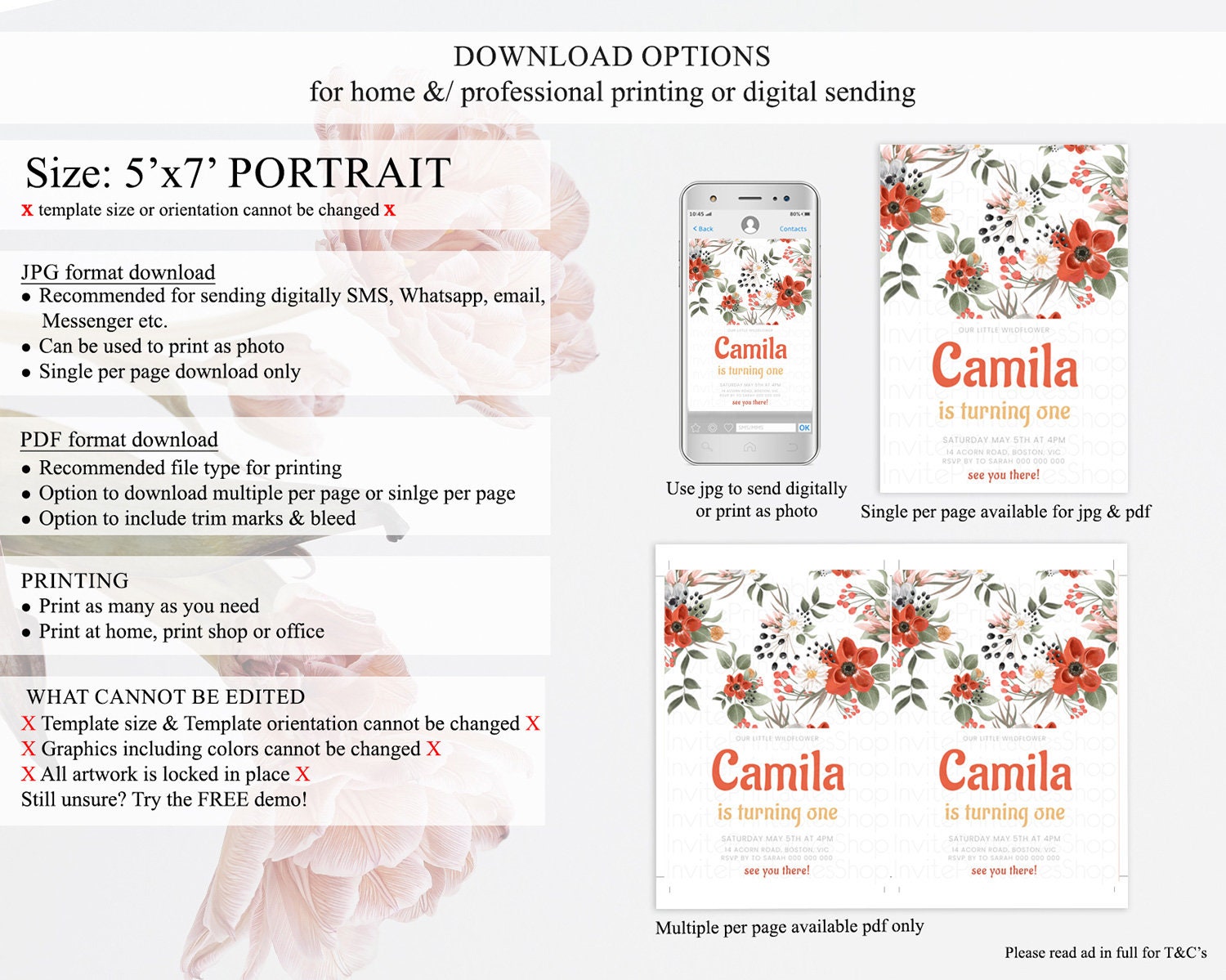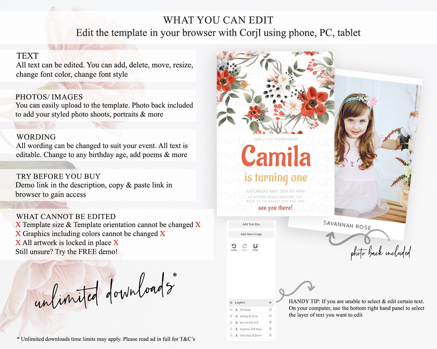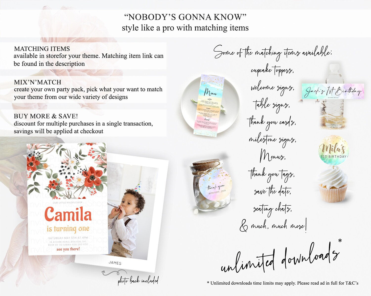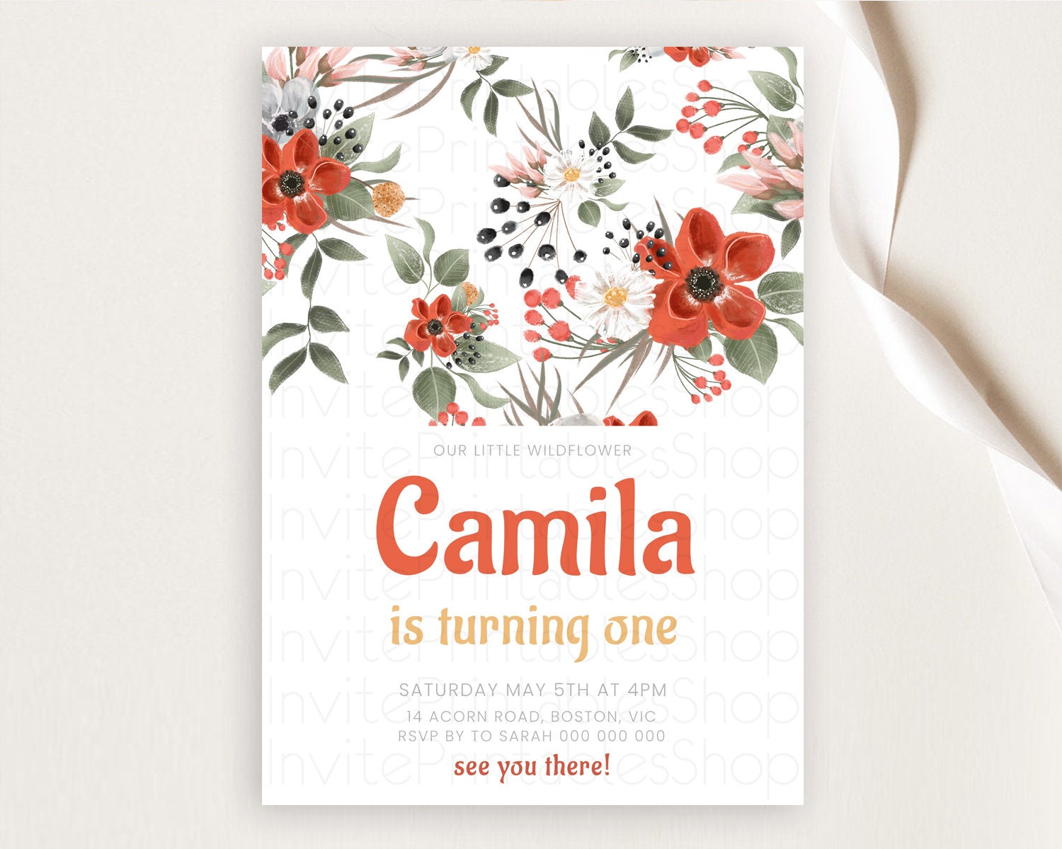 Secret Garden Invitation Wildflower Birthday Invitation Pastel Flowers Invite Enchanted Garden Boho Floral 3rd 2nd First Birthday D10705