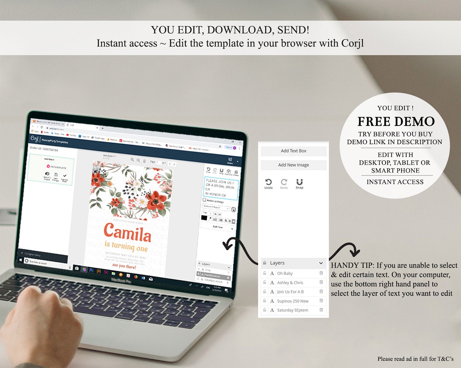 • After purchase, Corjl emails your editing link. Allow up to 15 minutes for delivery.