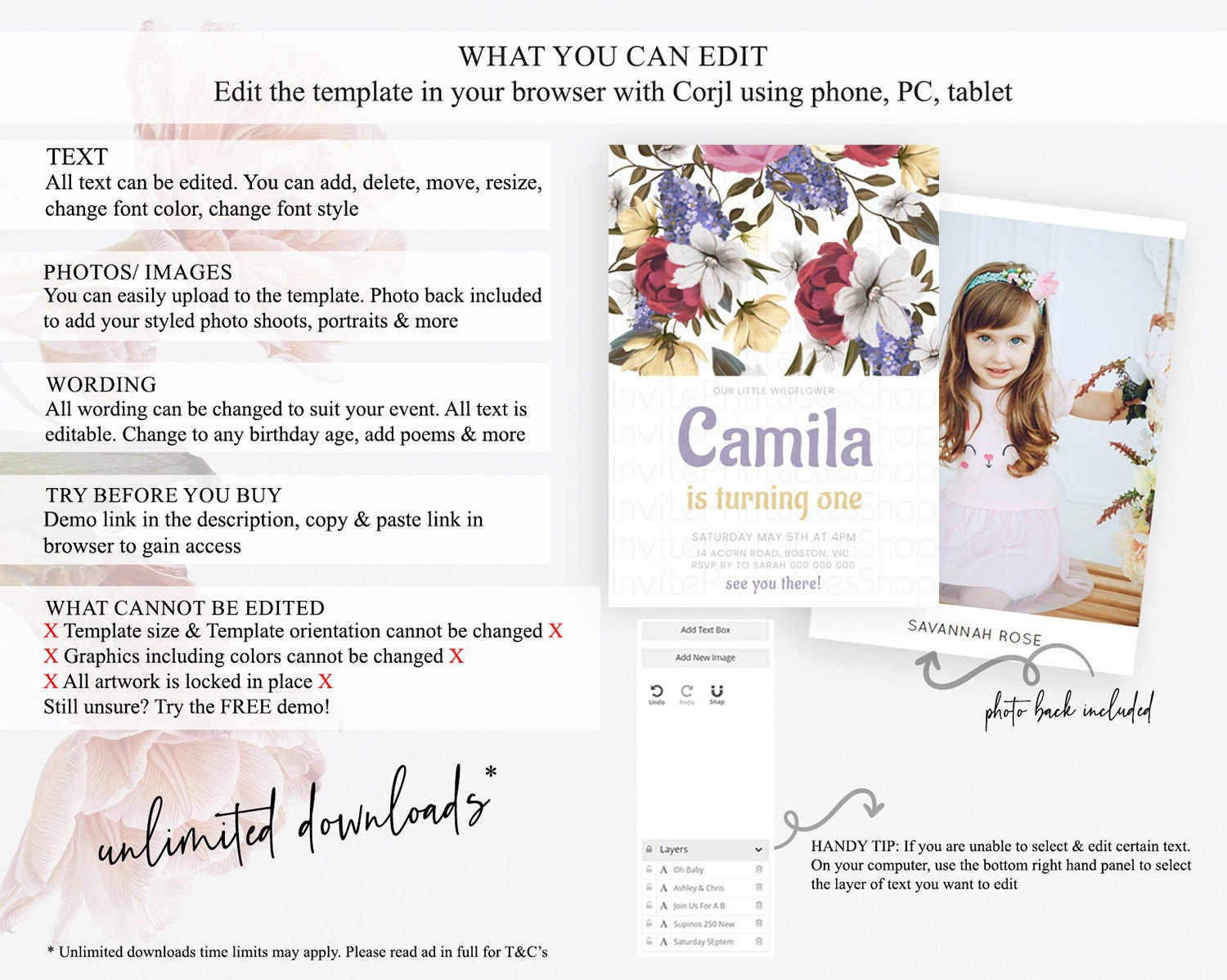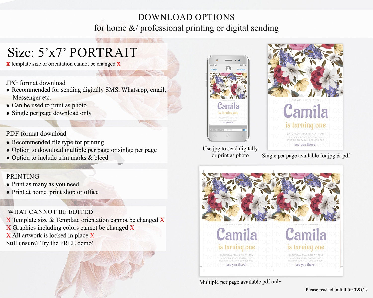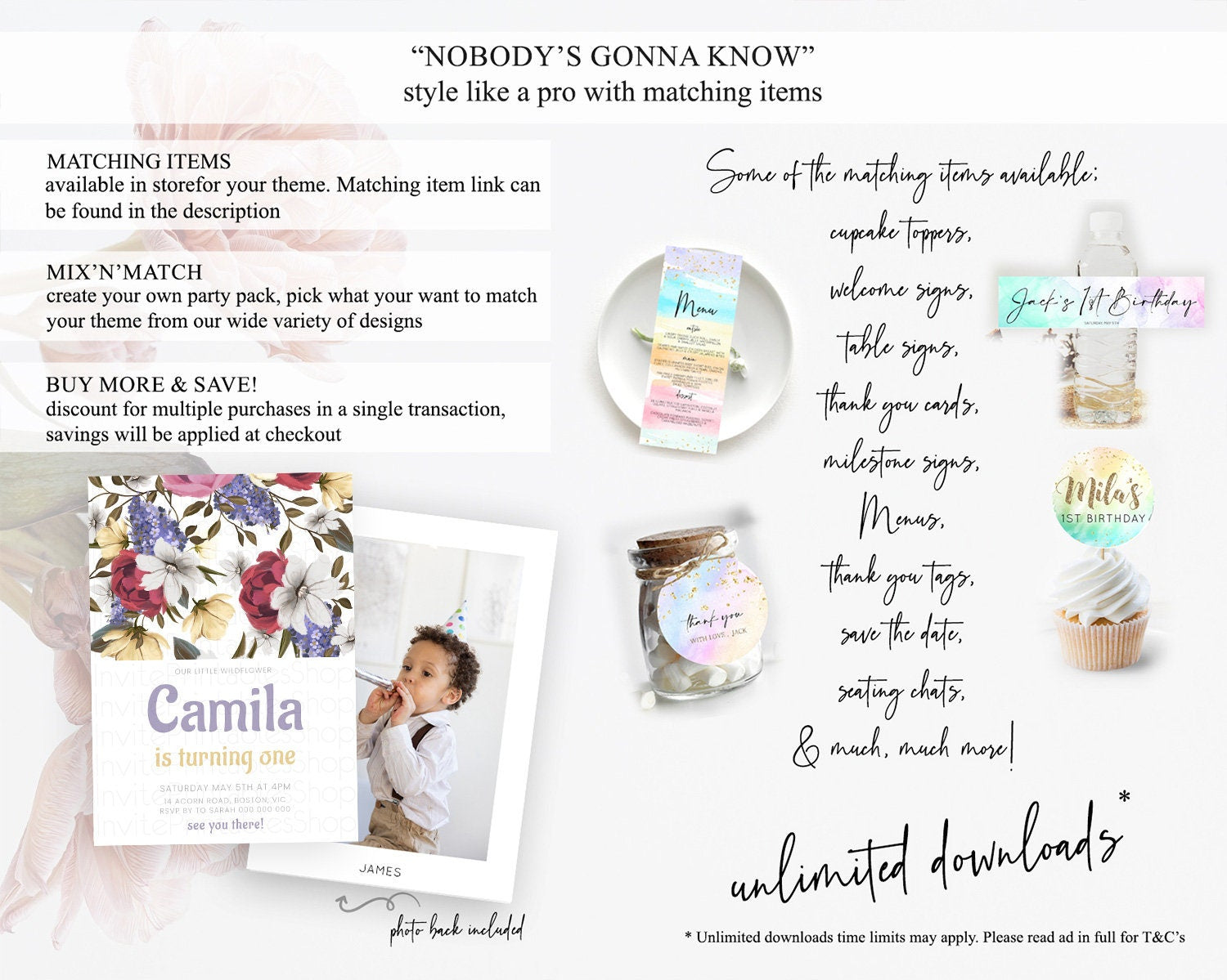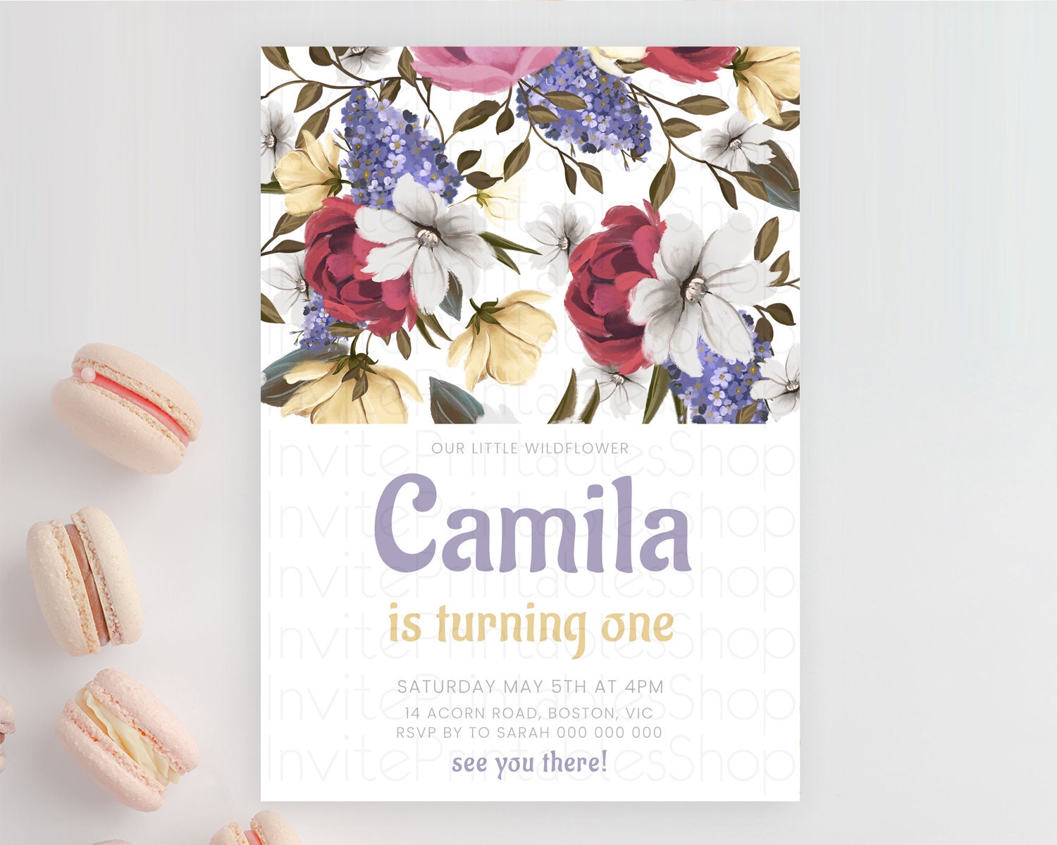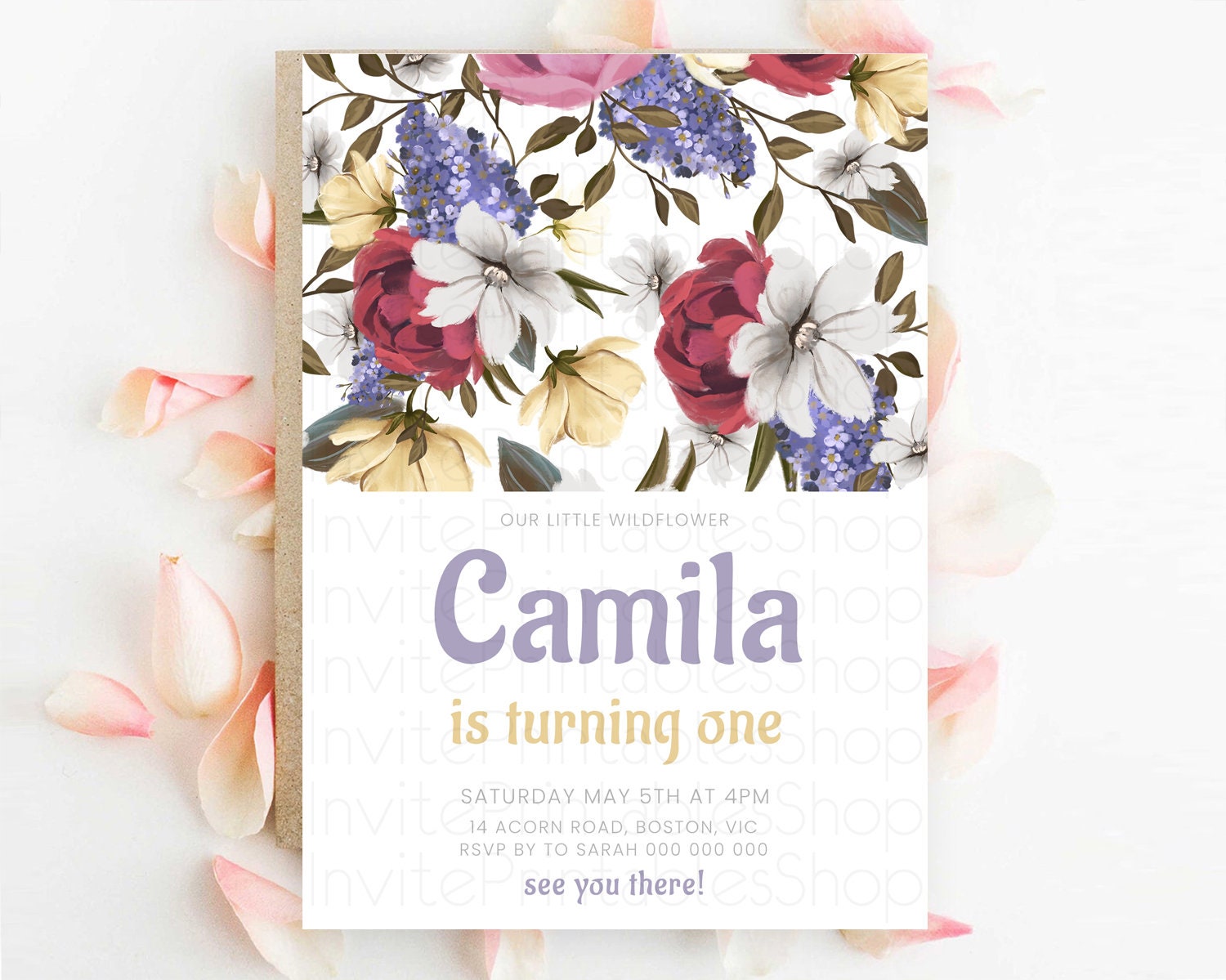 Secret Garden Invitation Wildflower Birthday Invitation Pastel Flowers Invite Enchanted Garden Boho Floral 3rd 2nd First Birthday D10708