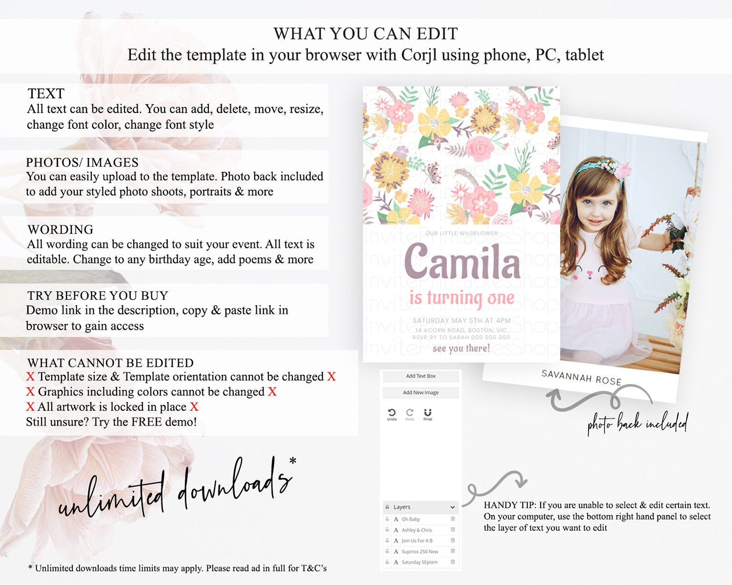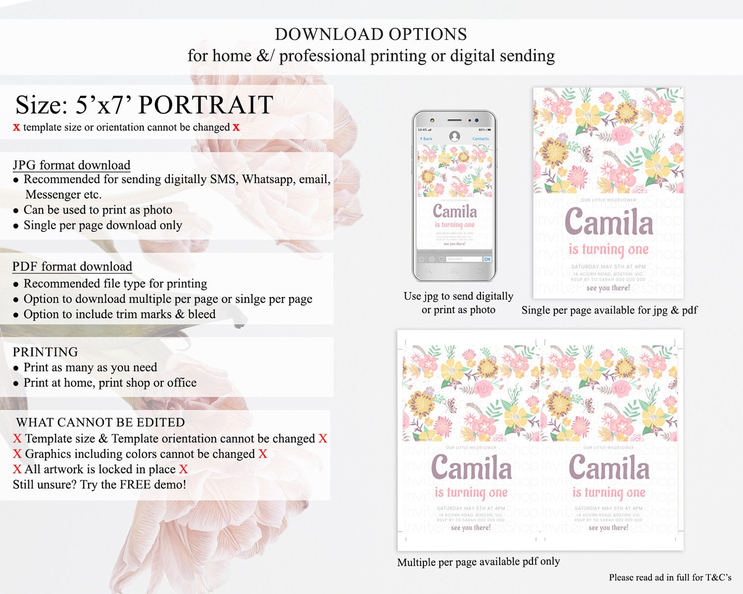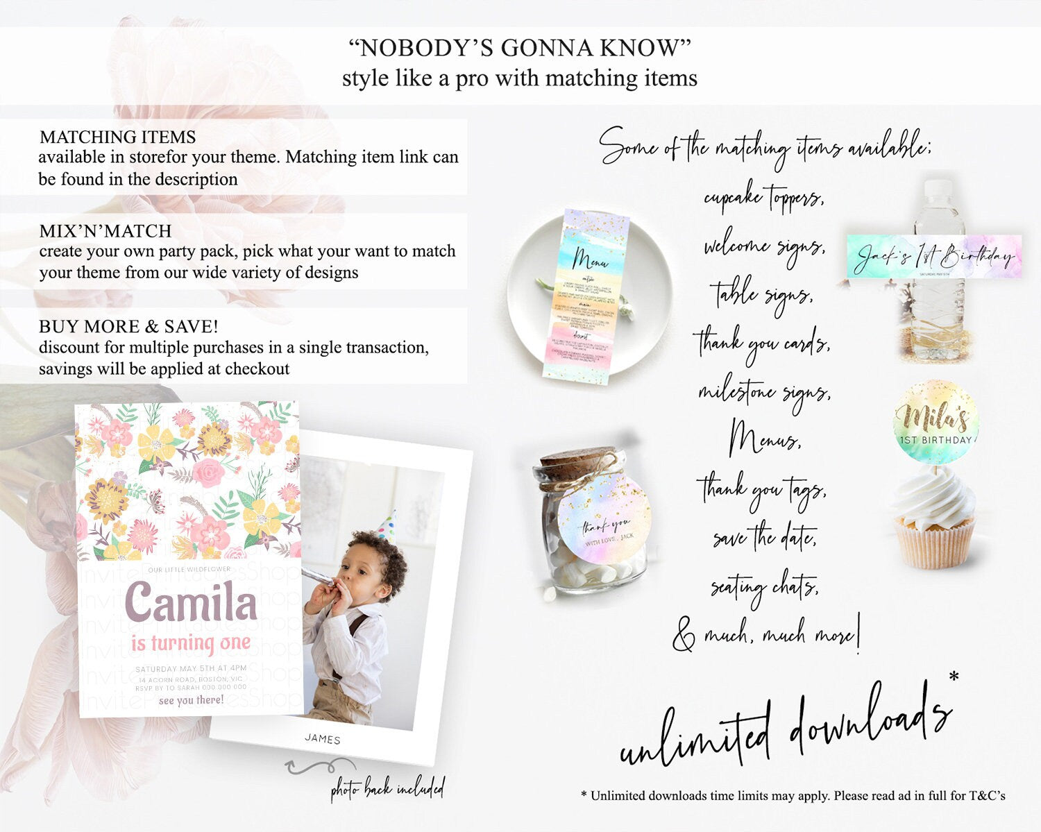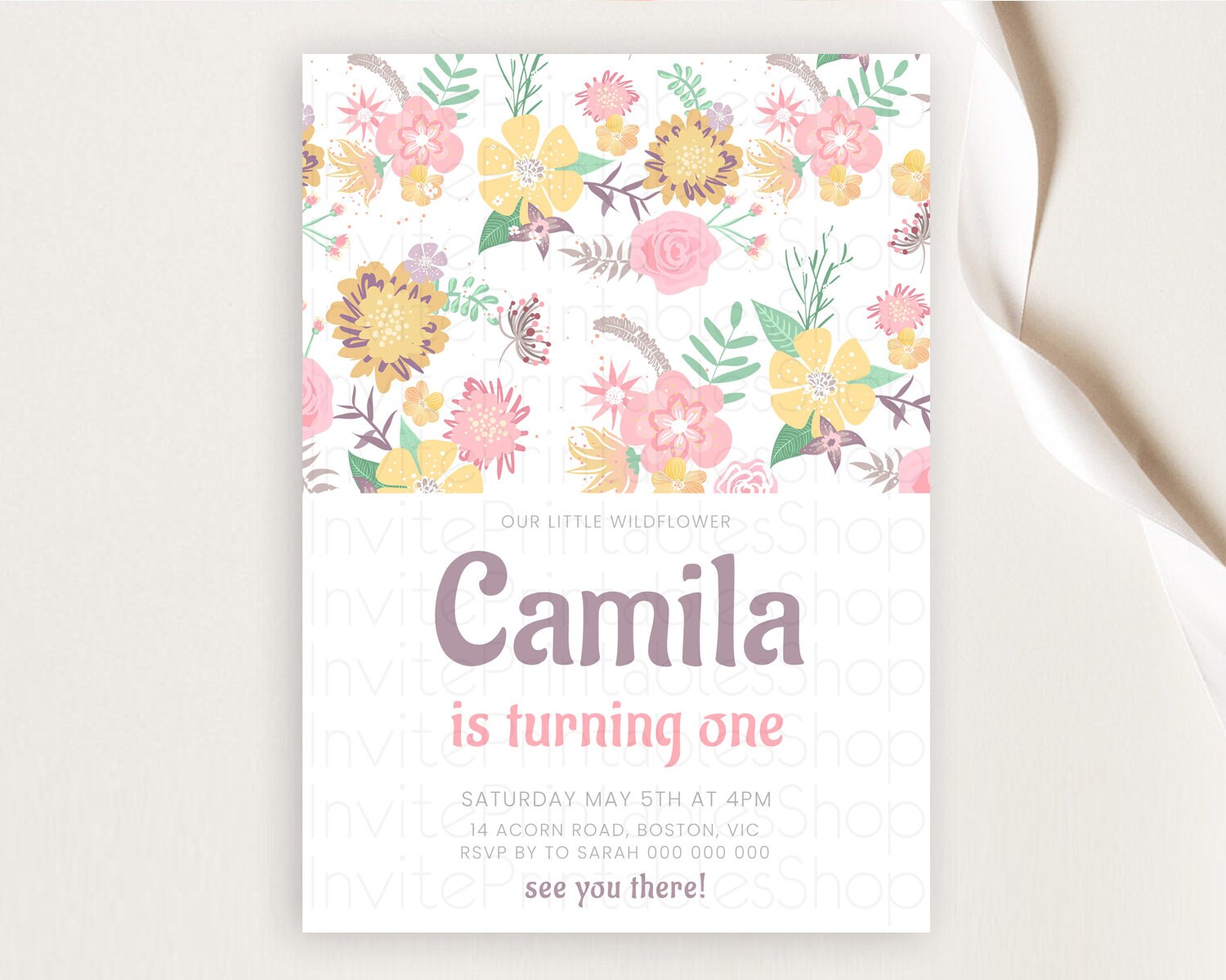 Secret Garden Invitation Wildflower Birthday Invitation Pastel Flowers Invite Enchanted Garden Boho Floral 3rd 2nd First Birthday D10712