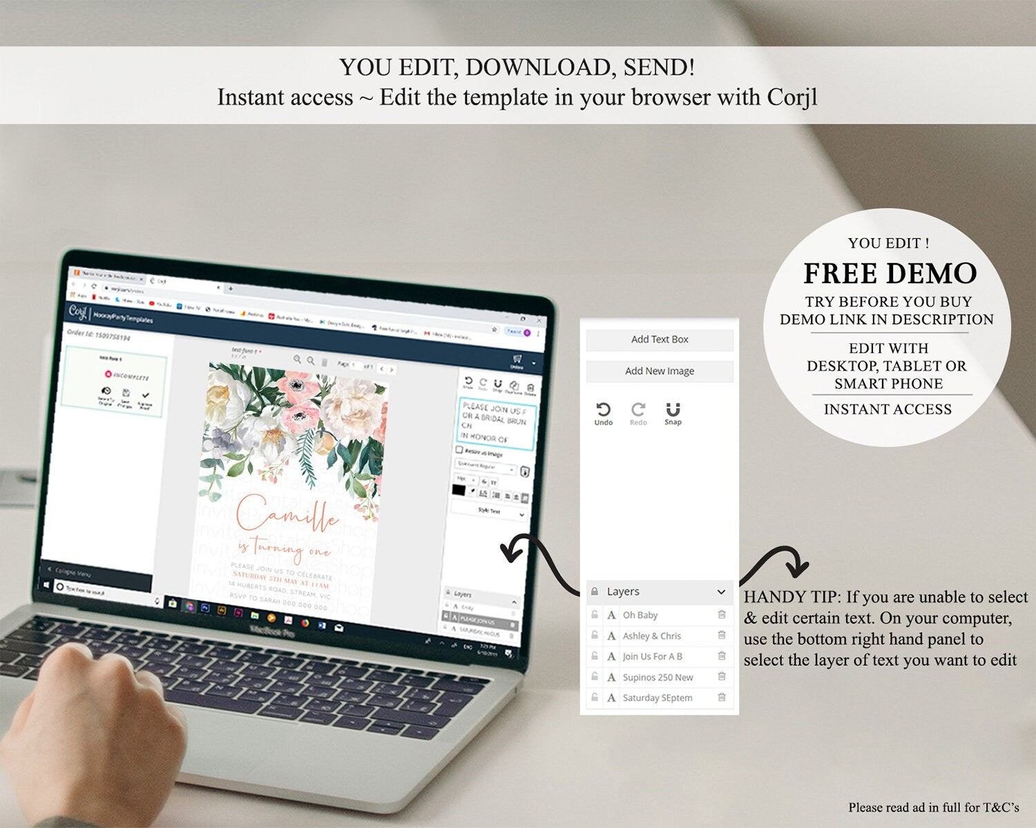 • After purchase, Corjl emails your editing link. Allow up to 15 minutes for delivery.