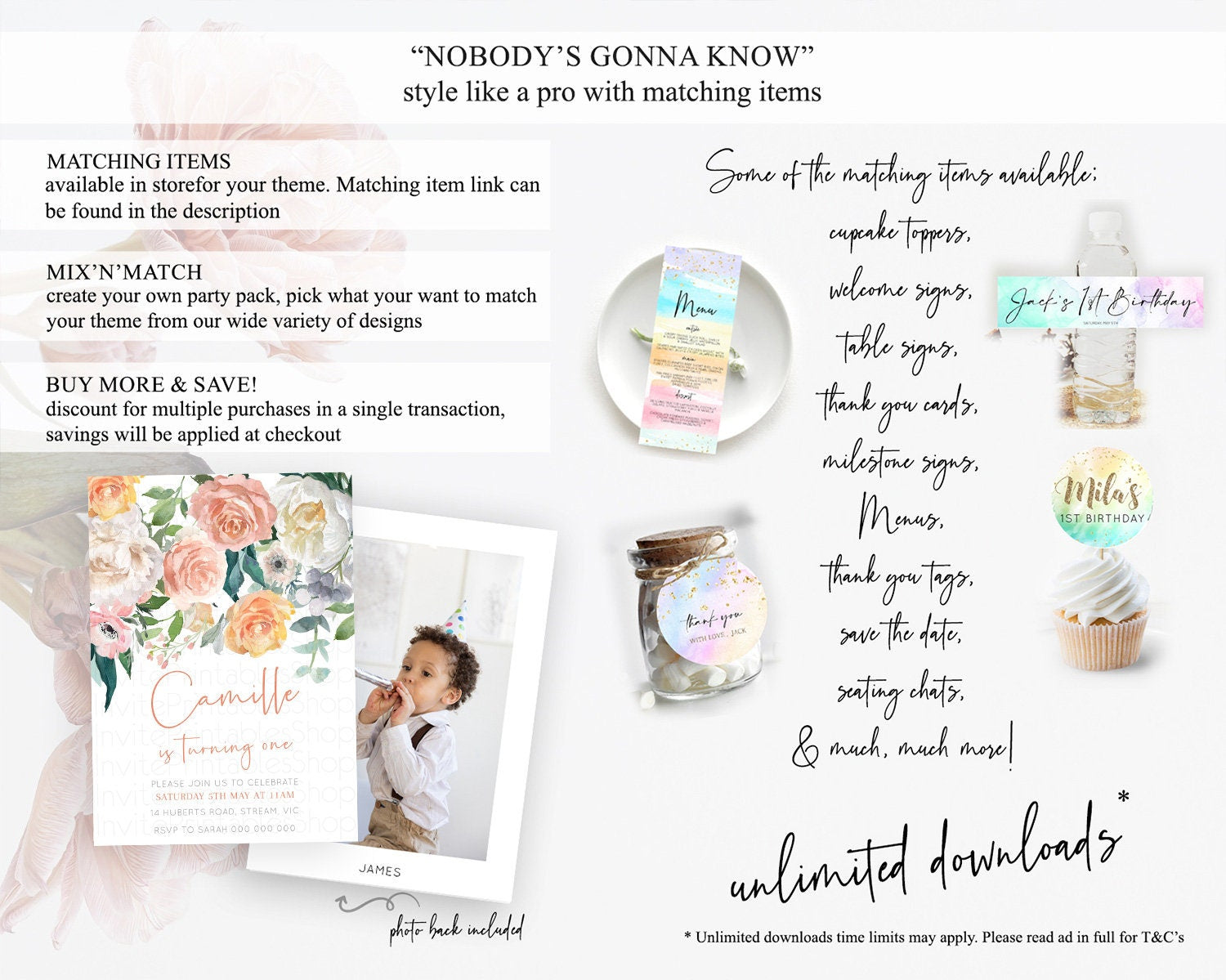 Secret Garden Invitation Wildflower Birthday Invitation Pastel Flowers Invite Enchanted Garden Boho Floral 3rd 2nd First Birthday D10717