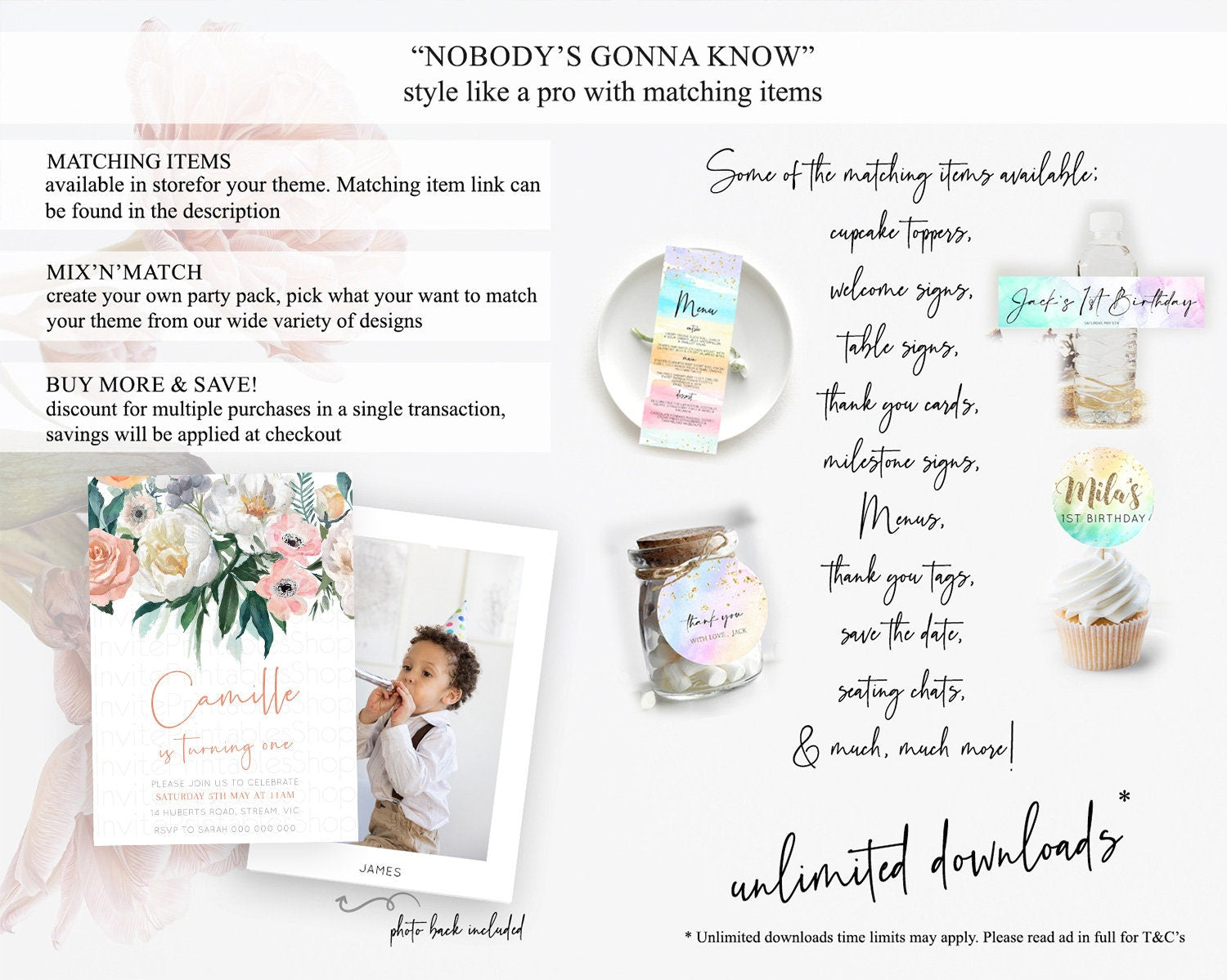 Secret Garden Invitation Wildflower Birthday Invitation Pastel Flowers Invite Enchanted Garden Boho Floral 3rd 2nd First Birthday D10717