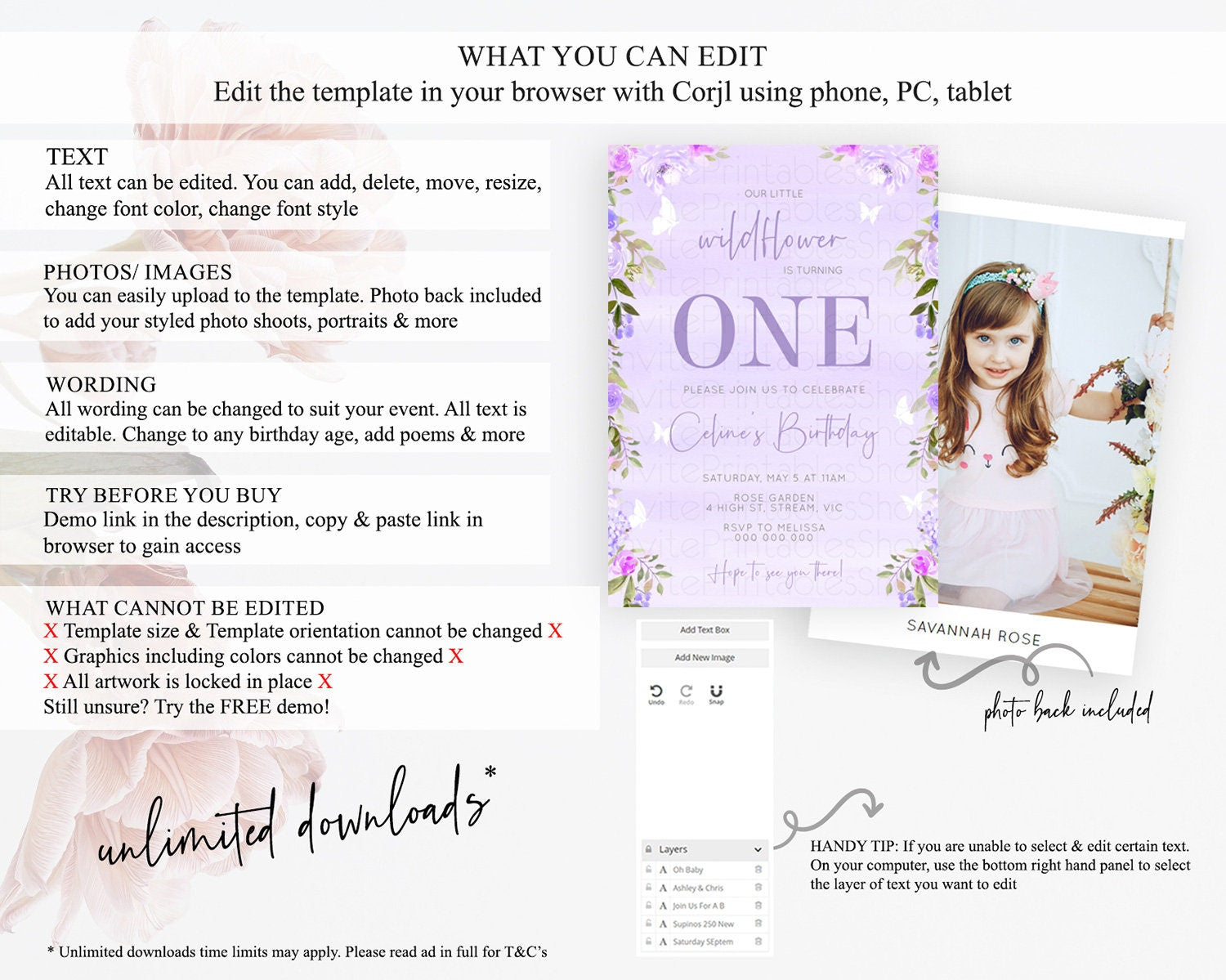 Secret Garden Invitation Wildflower Birthday Invitation Pastel Flowers Invite Enchanted Garden Boho Floral 3rd 2nd First Birthday D10719