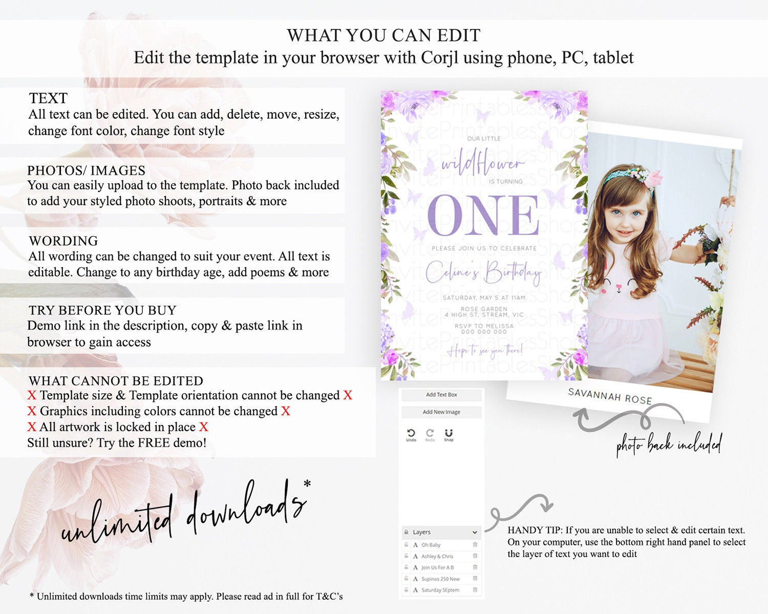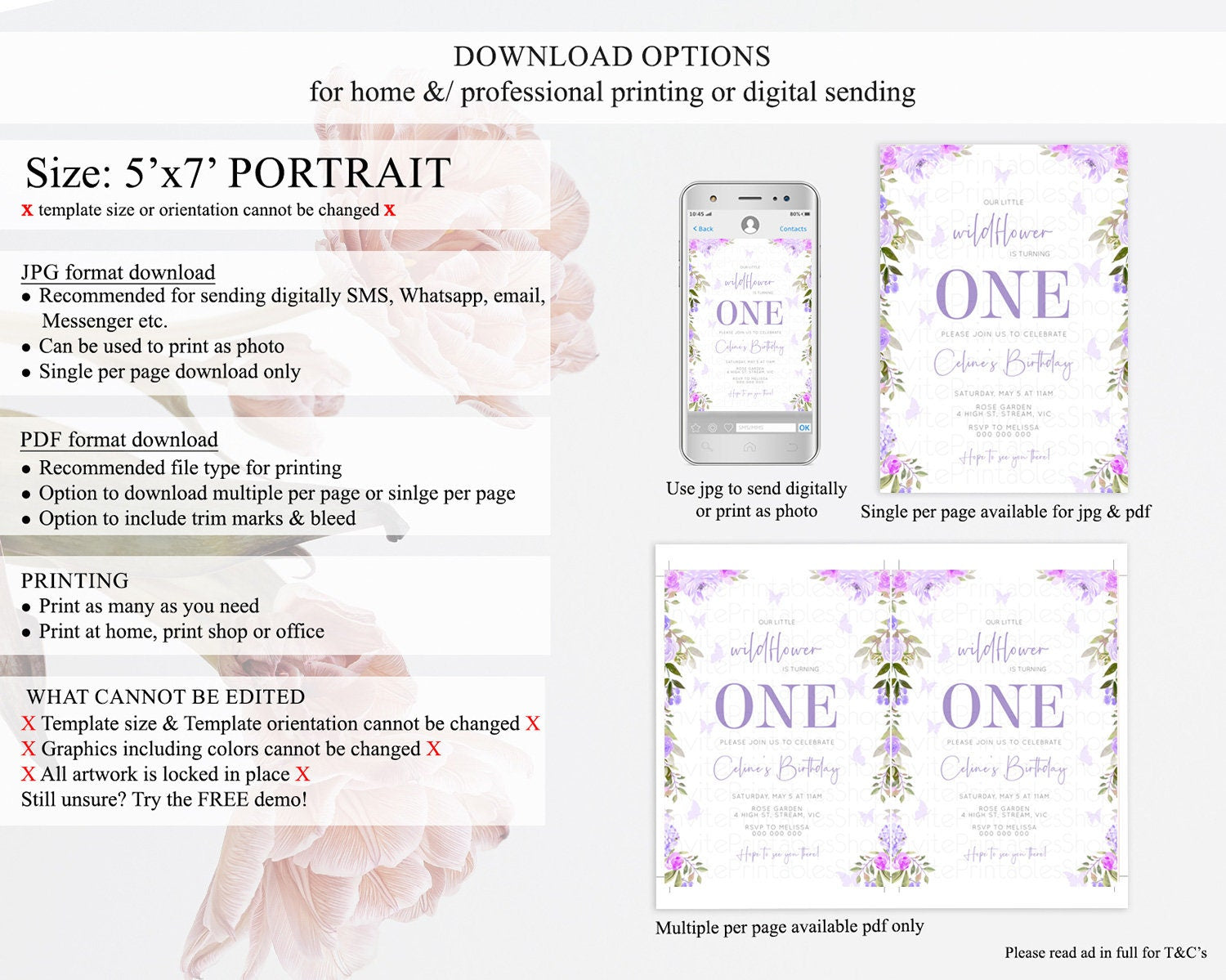 Secret Garden Invitation Wildflower Birthday Invitation Pastel Flowers Invite Enchanted Garden Boho Floral 3rd 2nd First Birthday D10719